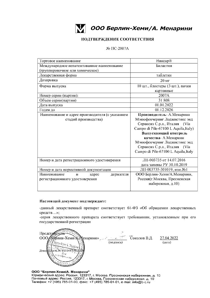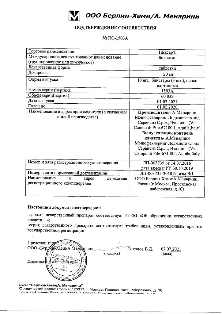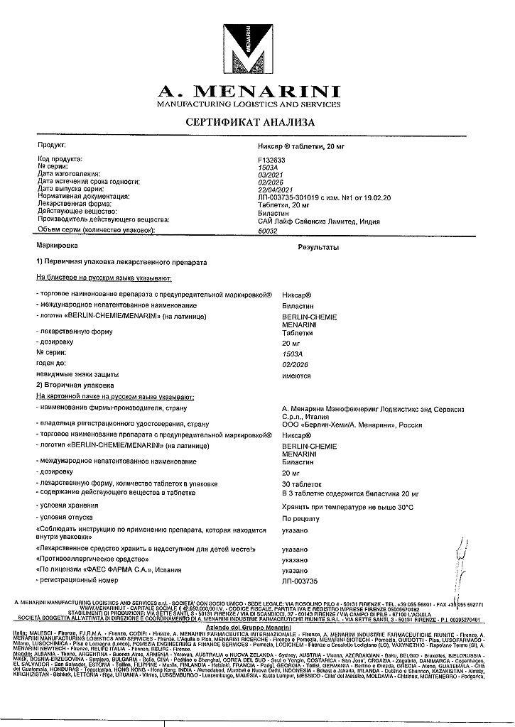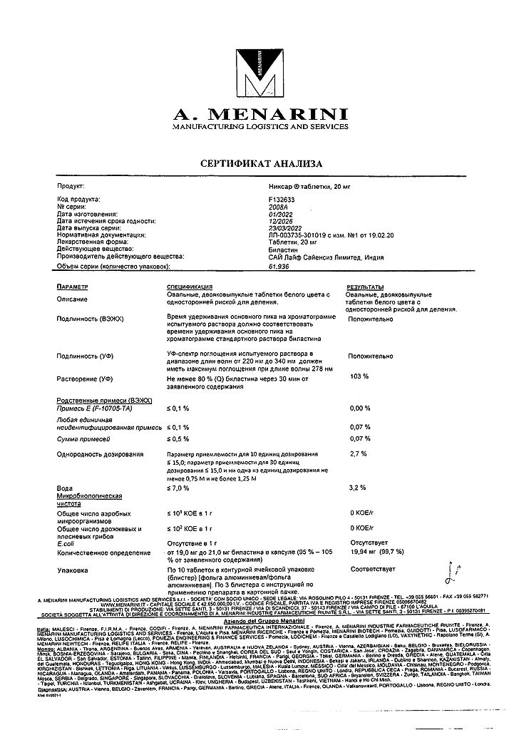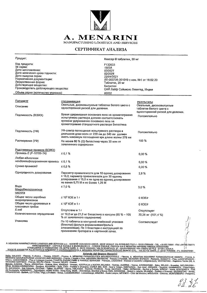 Действующее вещество: Биластин
