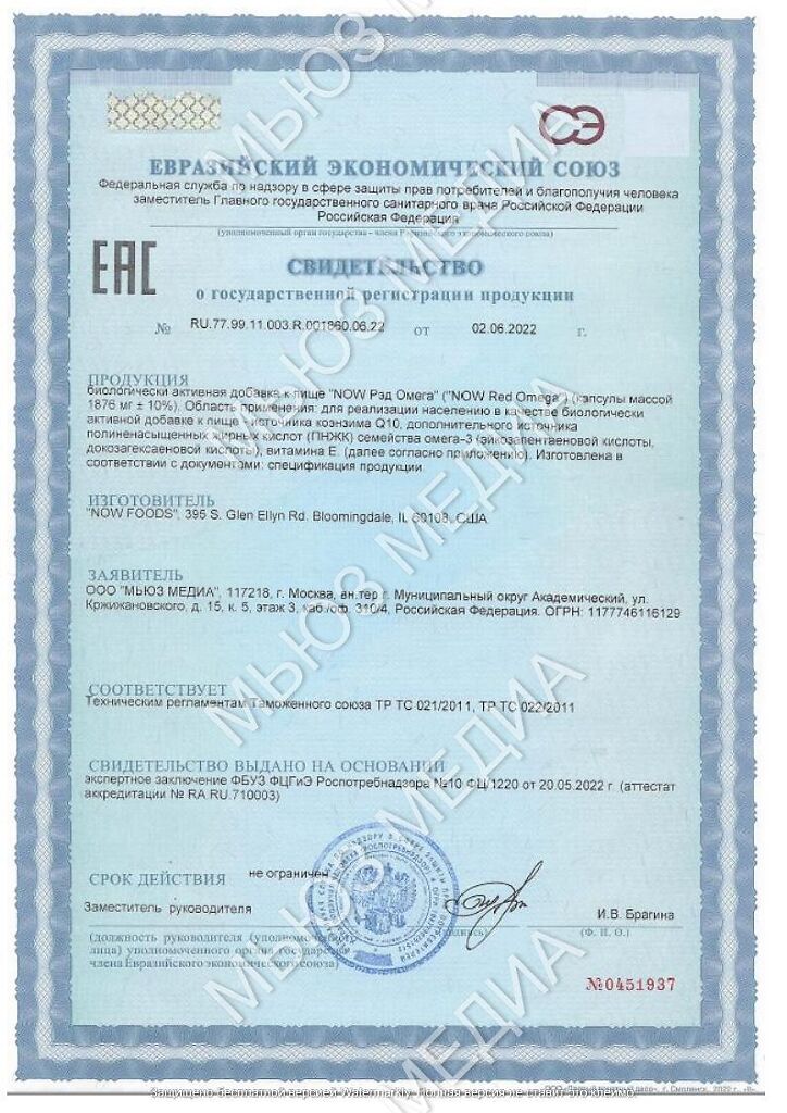 Документы Now Red Omega / Рэд Омега капсулы массой 1876 мг 90 шт