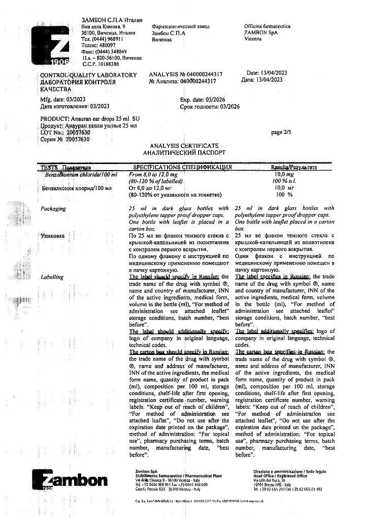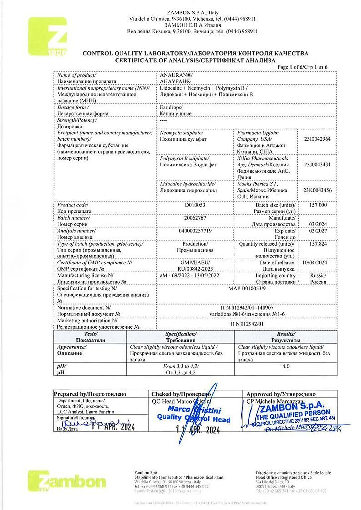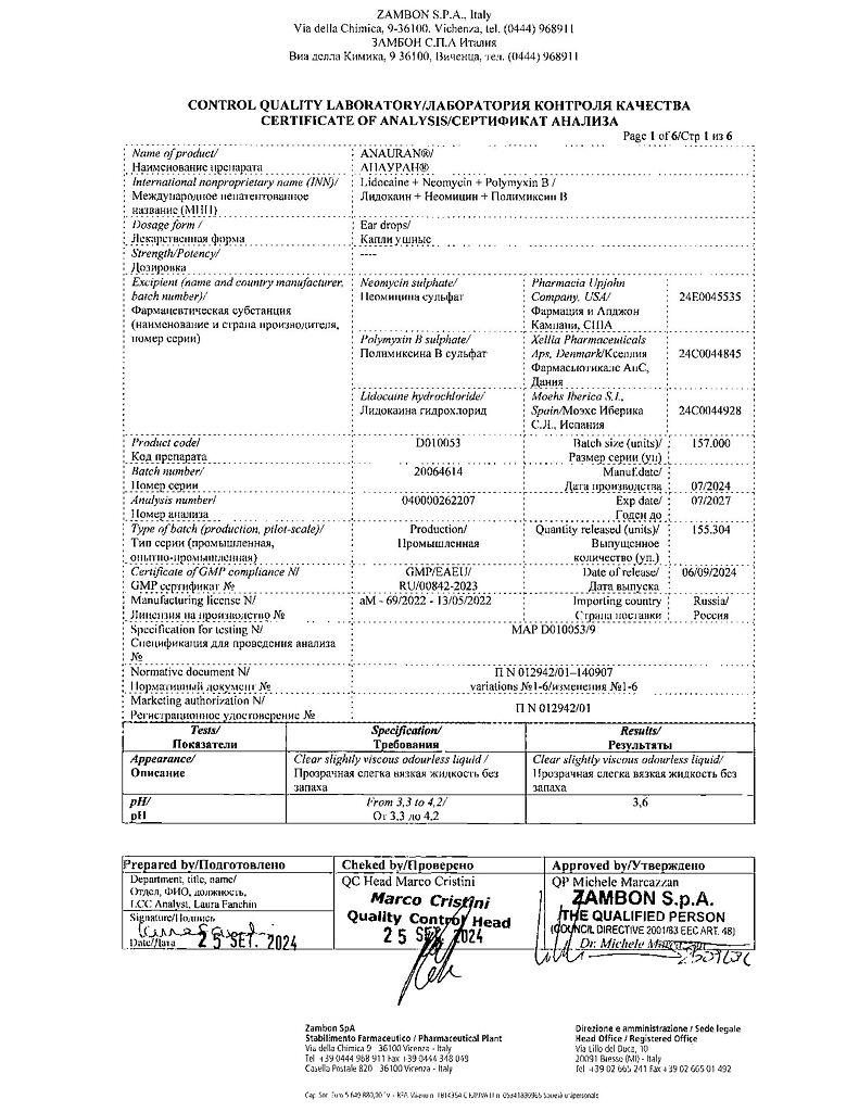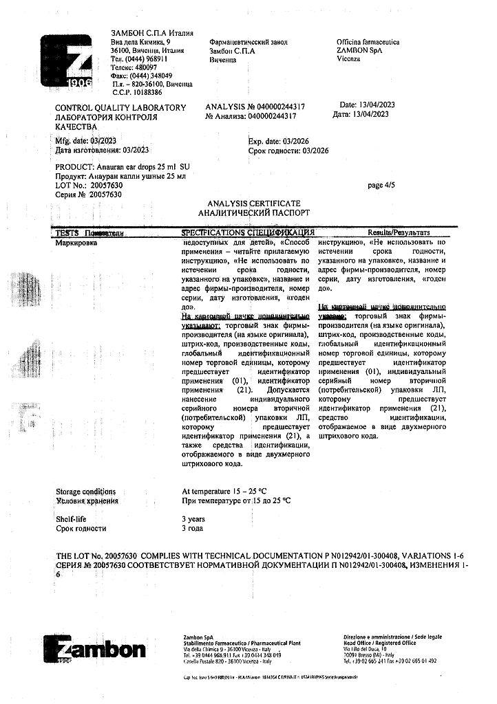 • 📒 Подробная инструкция по применению Анауран капли ушные 25 мл 1 шт