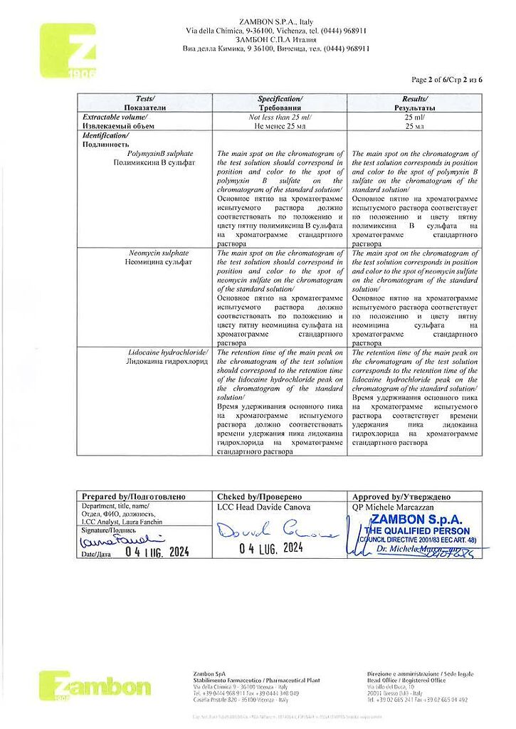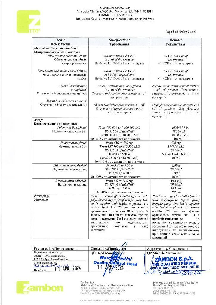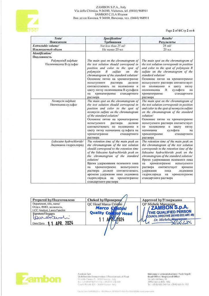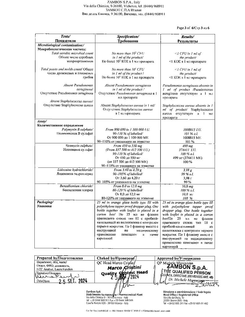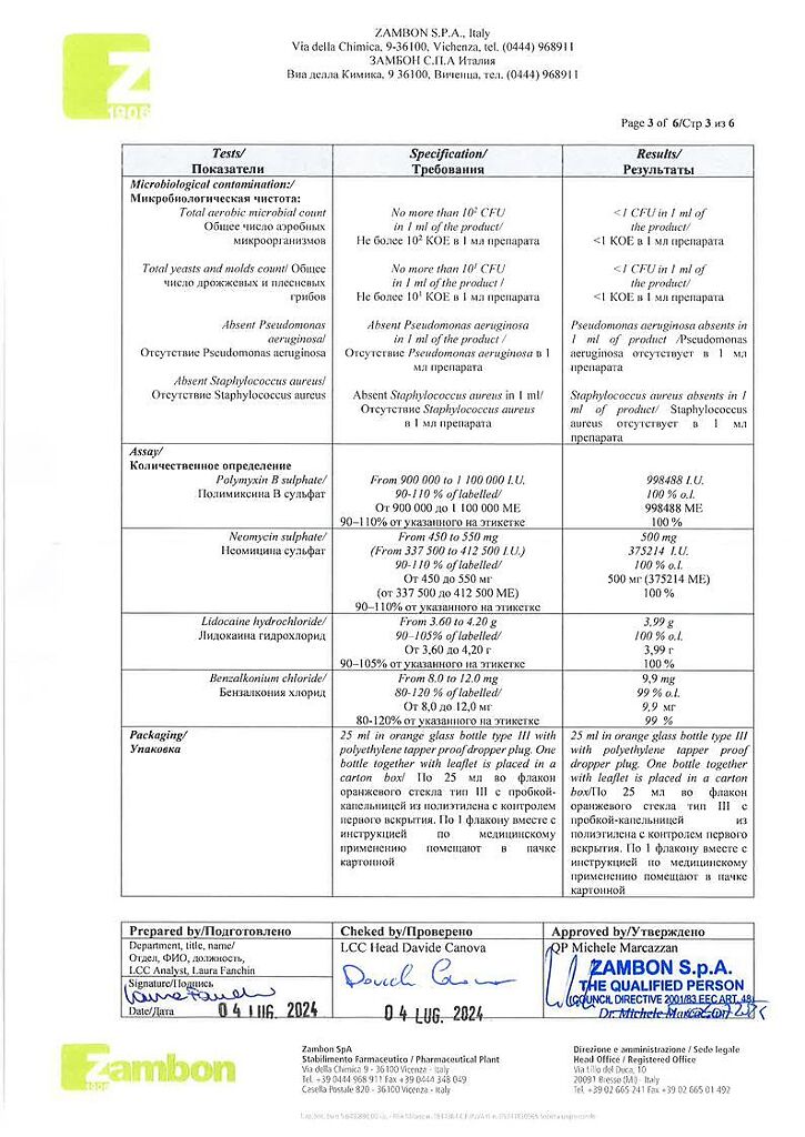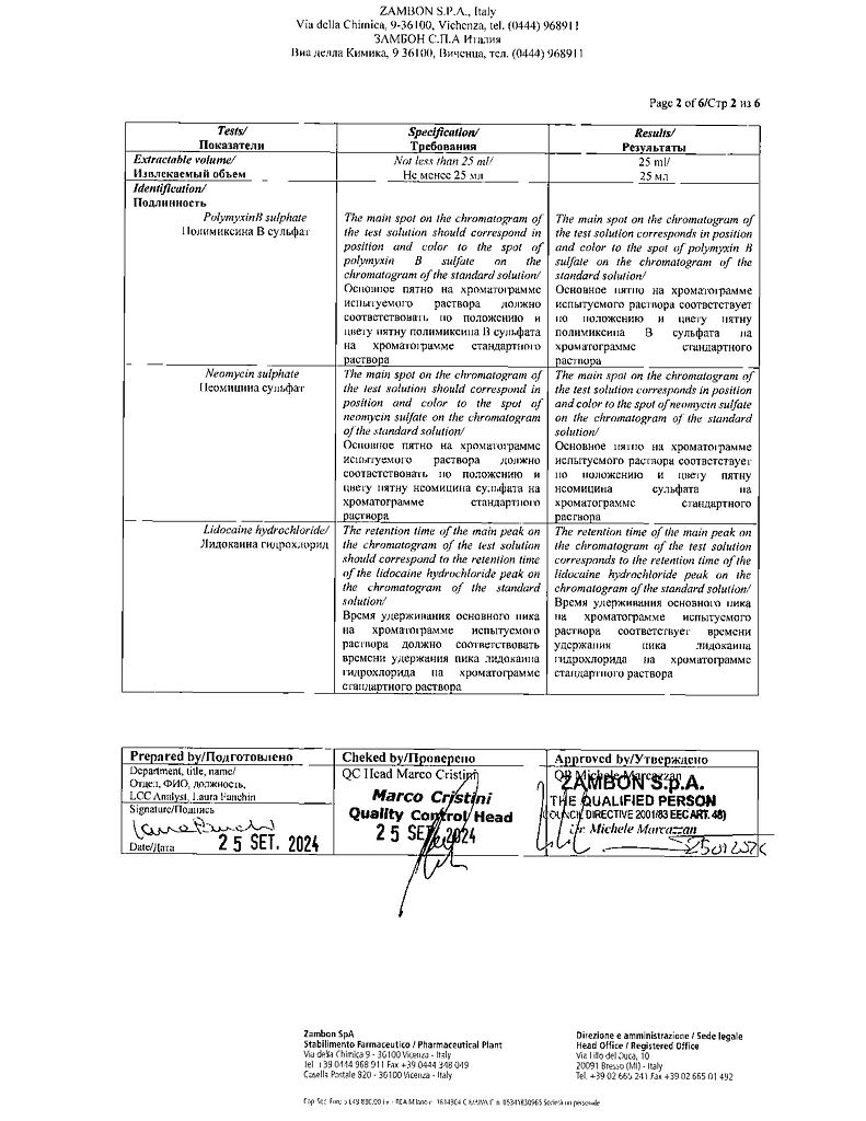 Действующее вещество: Лидокаин, Неомицин, Полимиксин В