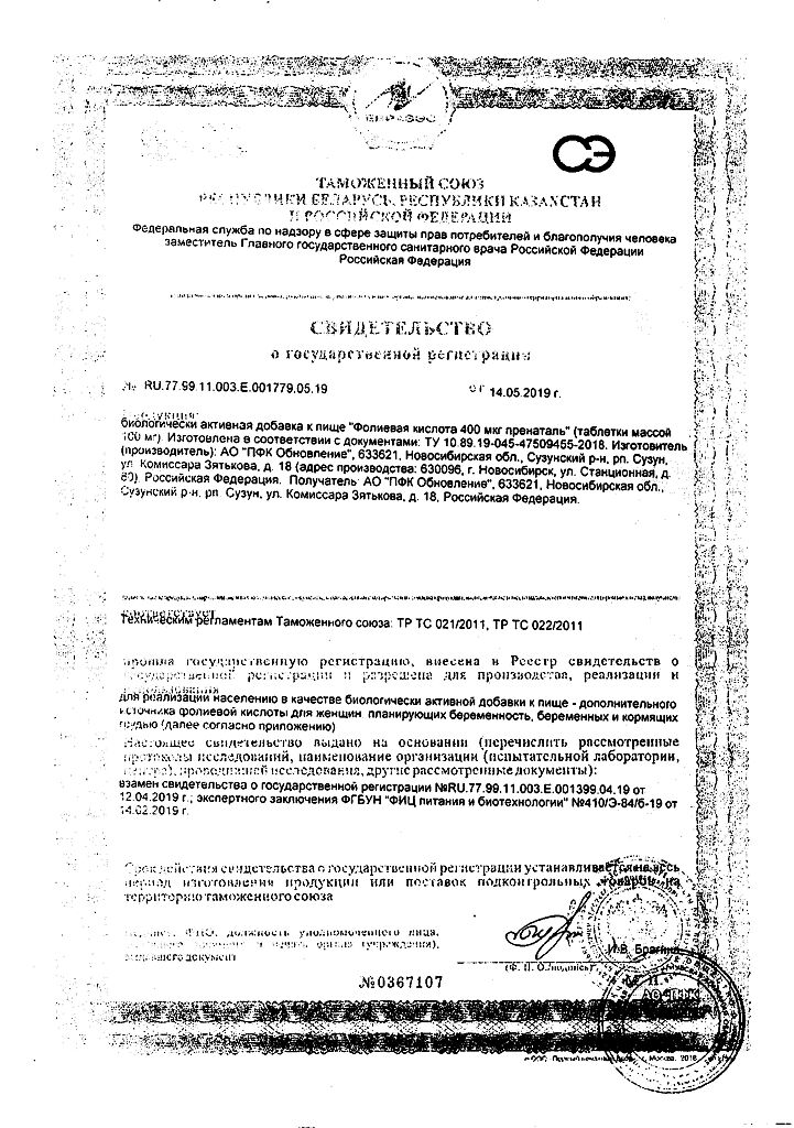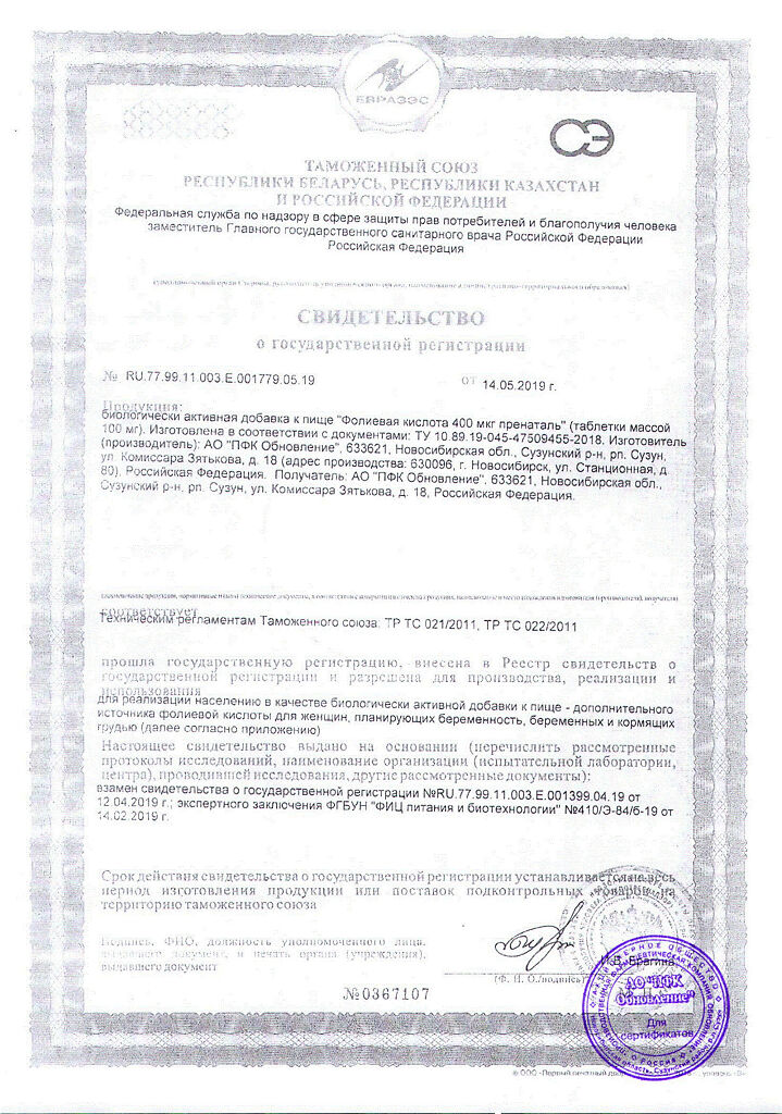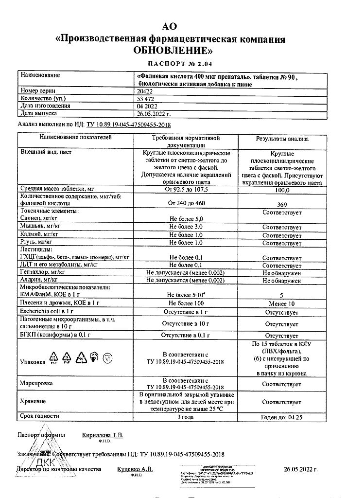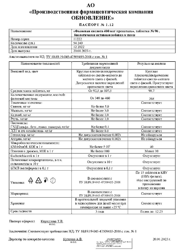 Действующее вещество: Фолиевая кислота
