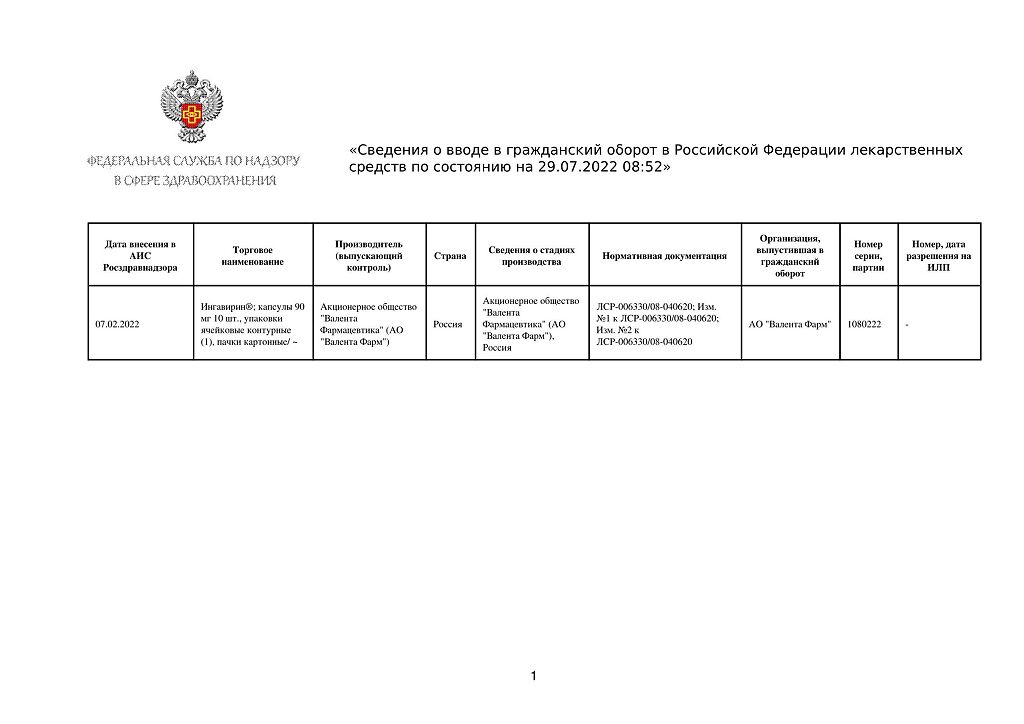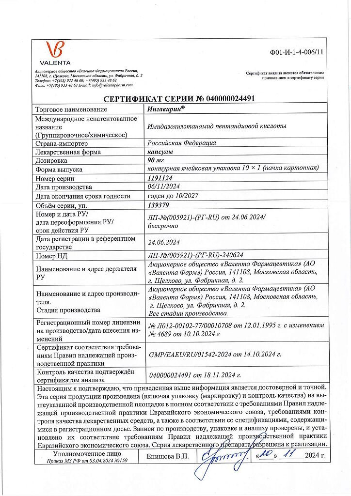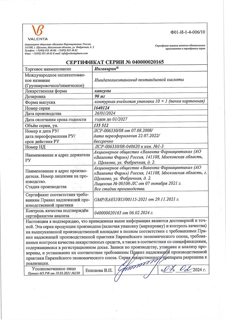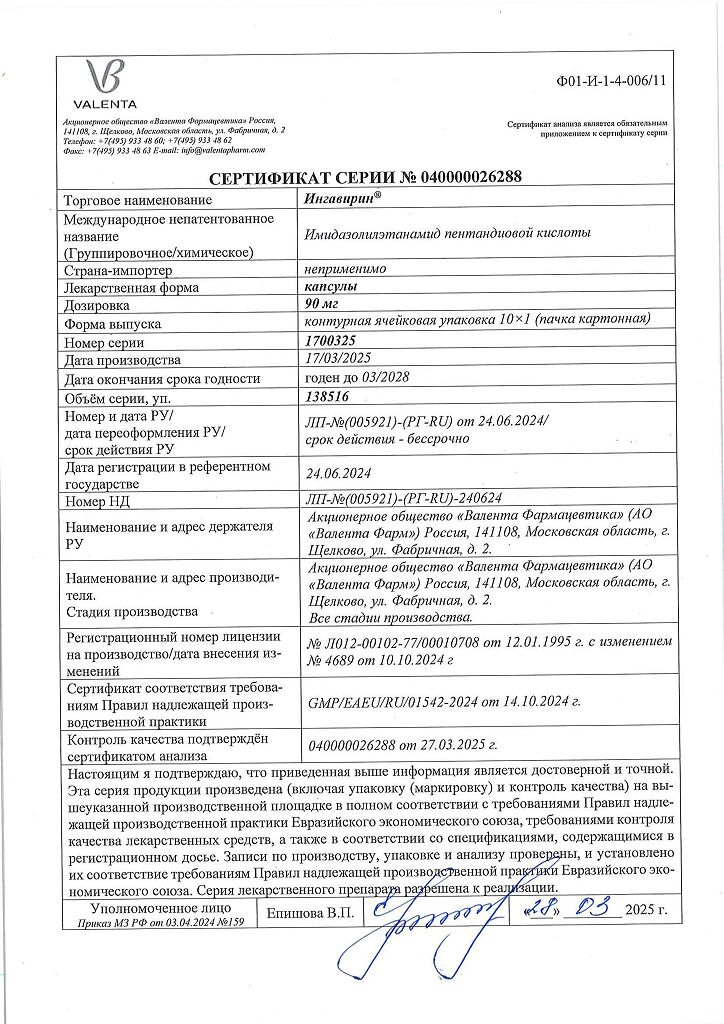 Производитель: Валента Фарм АО, Россия