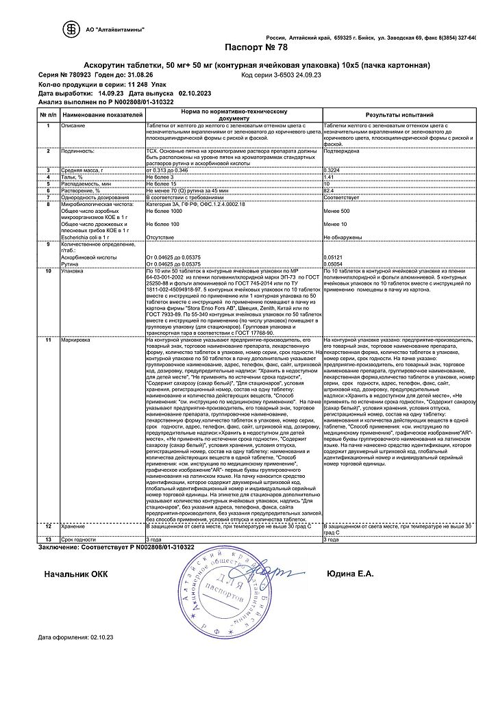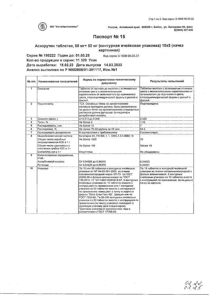 Действующее вещество: Аскорбиновая кислота, Рутозид