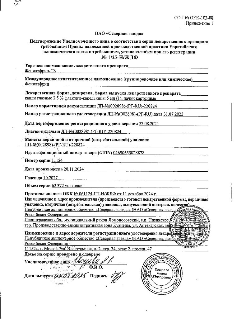 Действующее вещество: Фенилэфрин