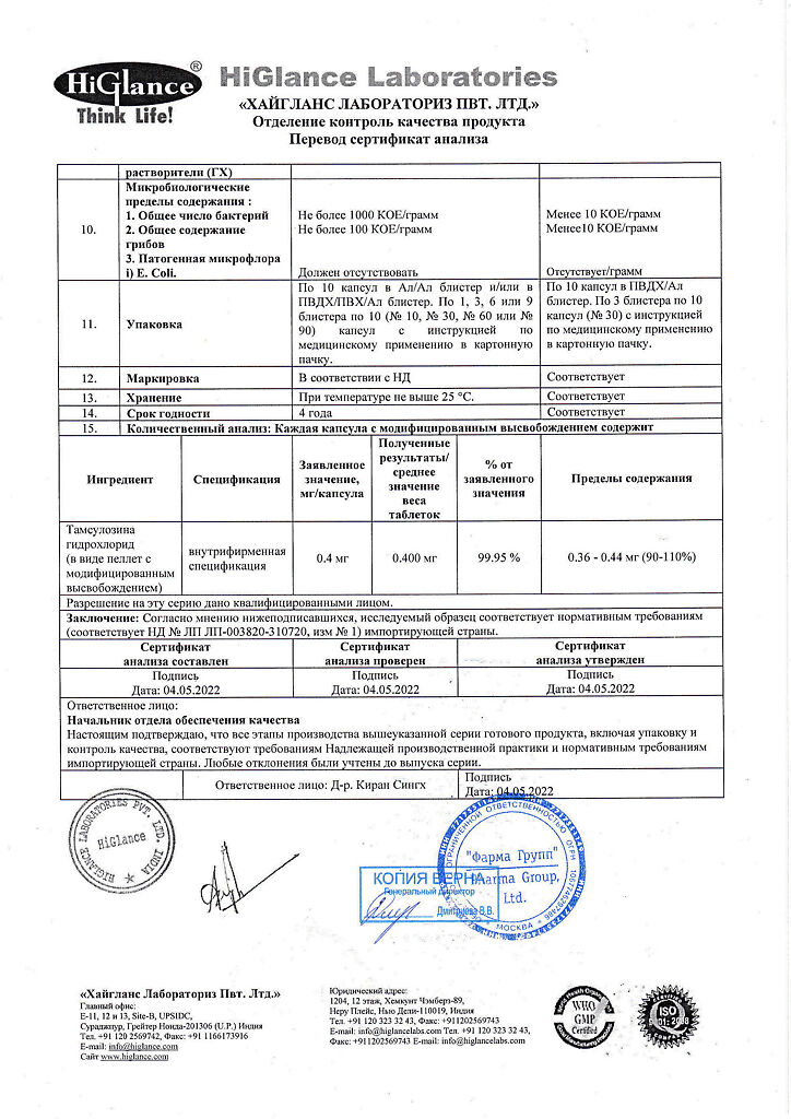 Производитель: Хайгланс Лабораториз Пвт. Лтд, Индия
