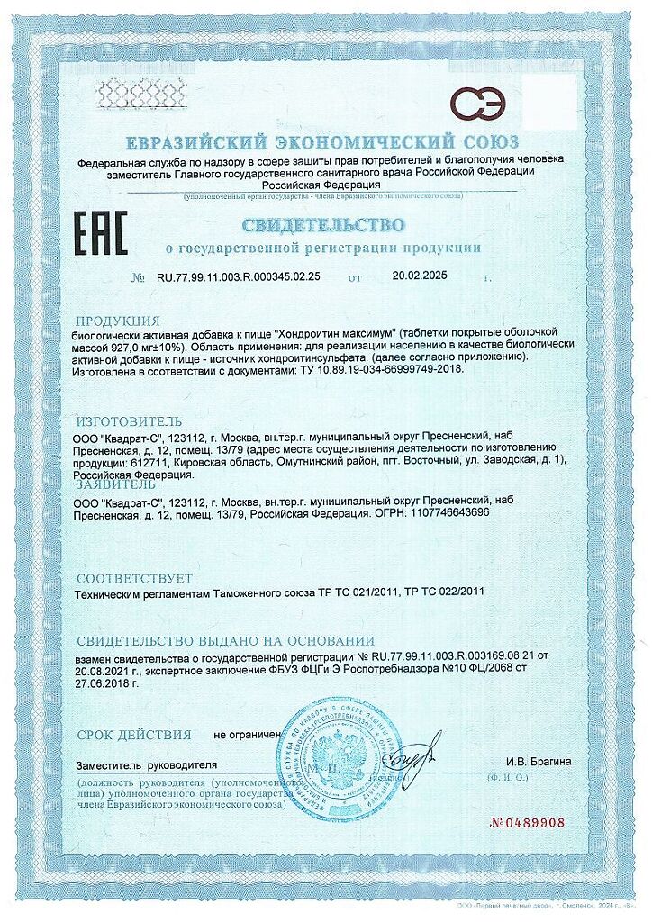 Документы Хондроитин Максимум Витамир таблетки покрыт.об. массой 927 мг 30 шт