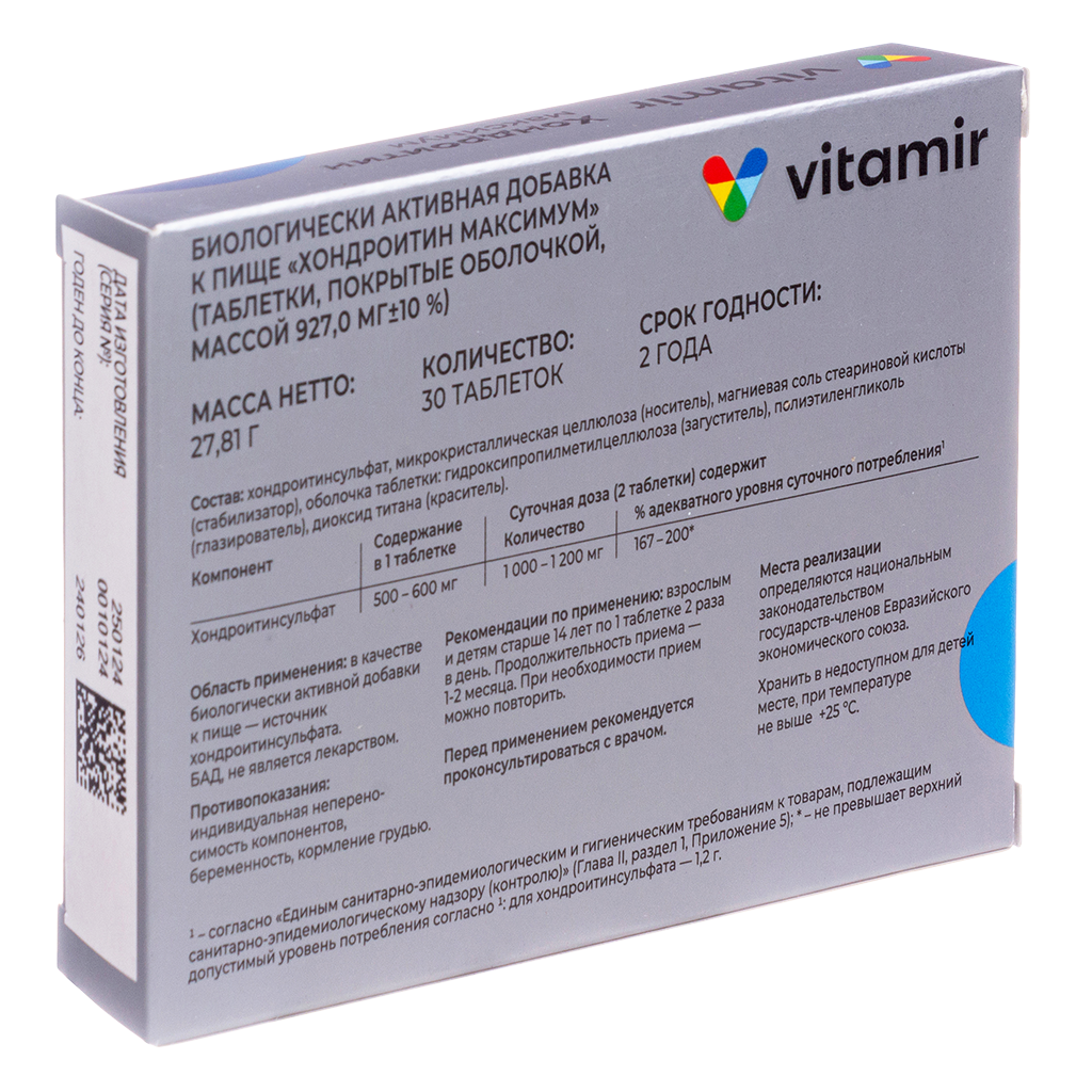 • 🏪 Купить Хондроитин Максимум Витамир таблетки покрыт.об. массой 927 мг 30 шт можно на сайте и в наших аптеках в Осинниках