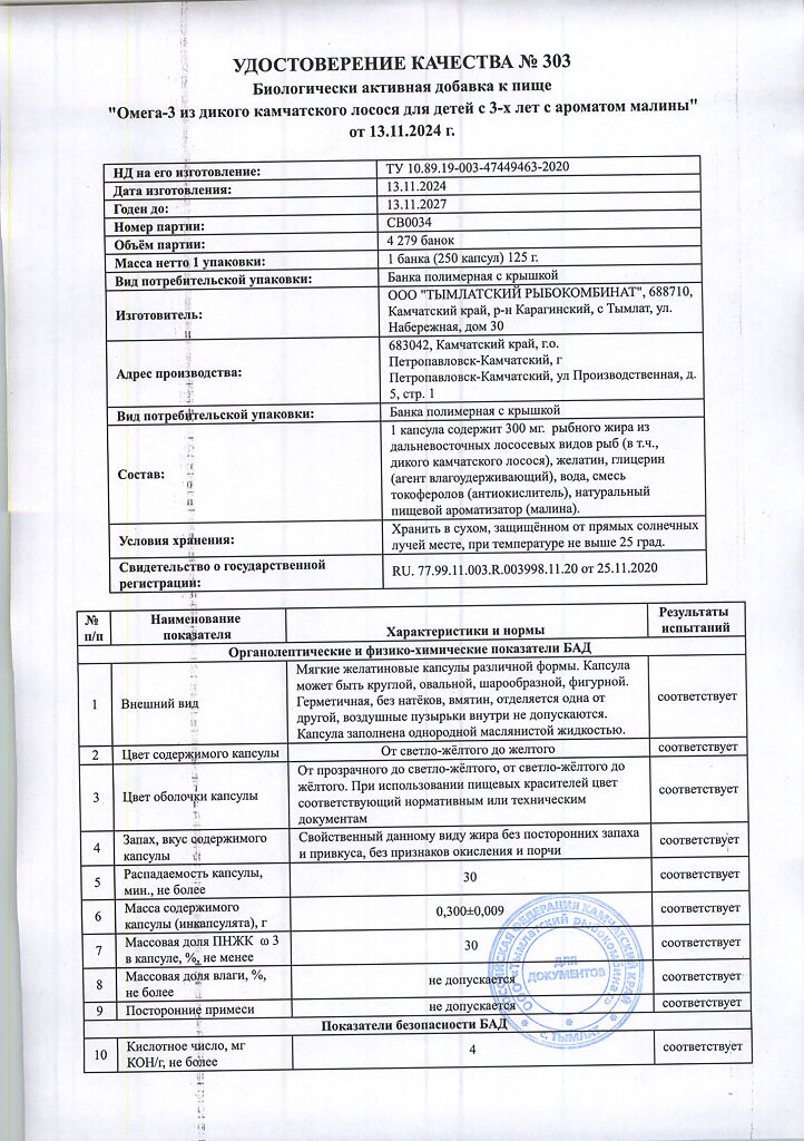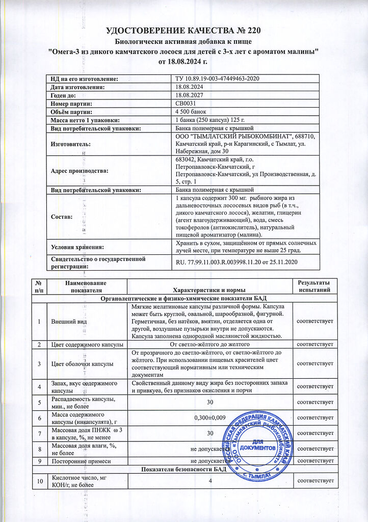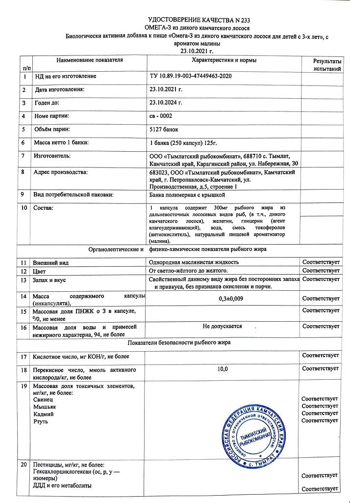 Документы Омега-3 из дикого камчатского лосося для детей с 3-х лет Salmonica с ароматом малины мягкие желатиновые капсулы по 300 мг 250 шт
