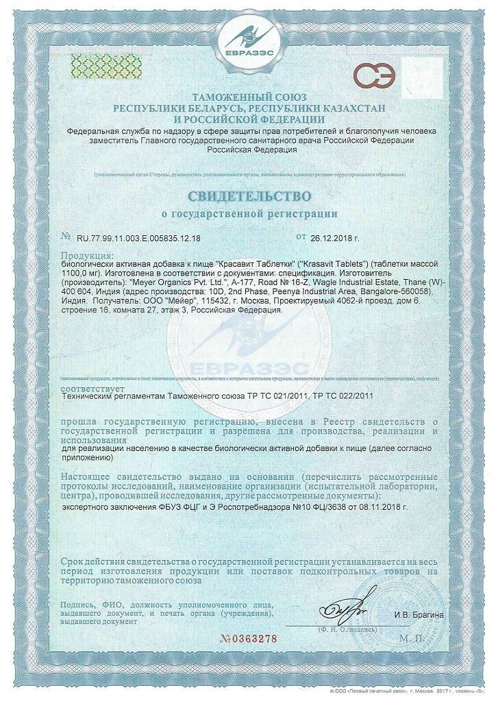 Документы Красавит Таблетки / Krasavit Tablets таблетки массой 1100 мг 30