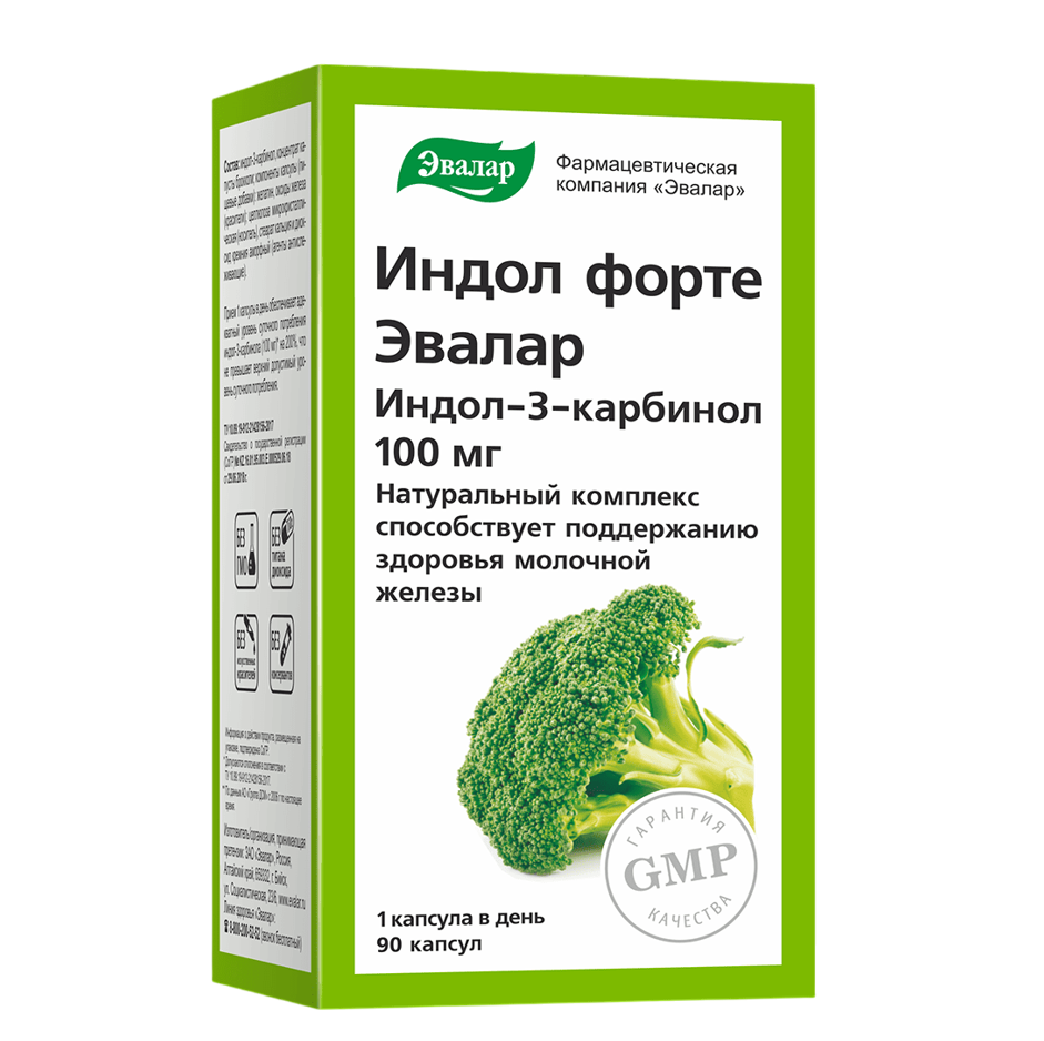 Индол-3-карбинол (брокколи экстракт), целлюлоза микрокристаллическая (носитель), компоненты капсулы (пищевые добавки): гидроксипропилметилцеллюлоза (загуститель); стеарат кальция и диоксид кремния аморфный (агенты антислеживающие).