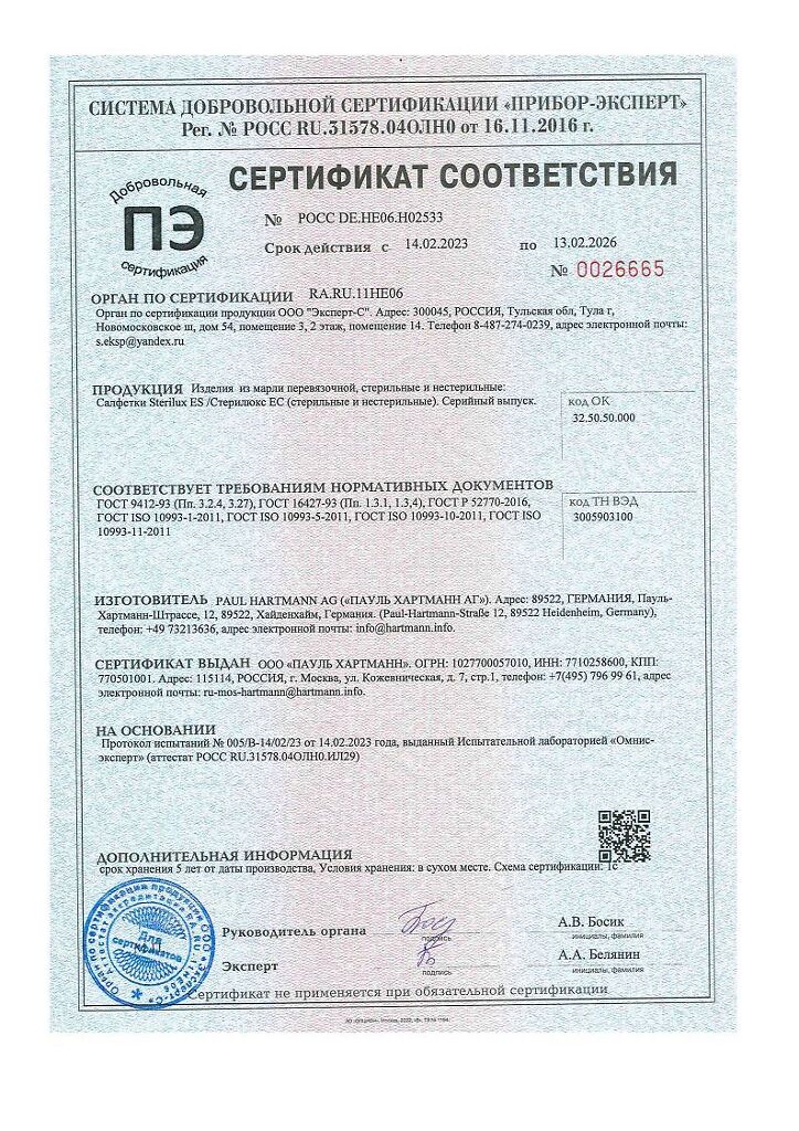 Производитель: Paul Hartmann AG, Китайская Народная Республика