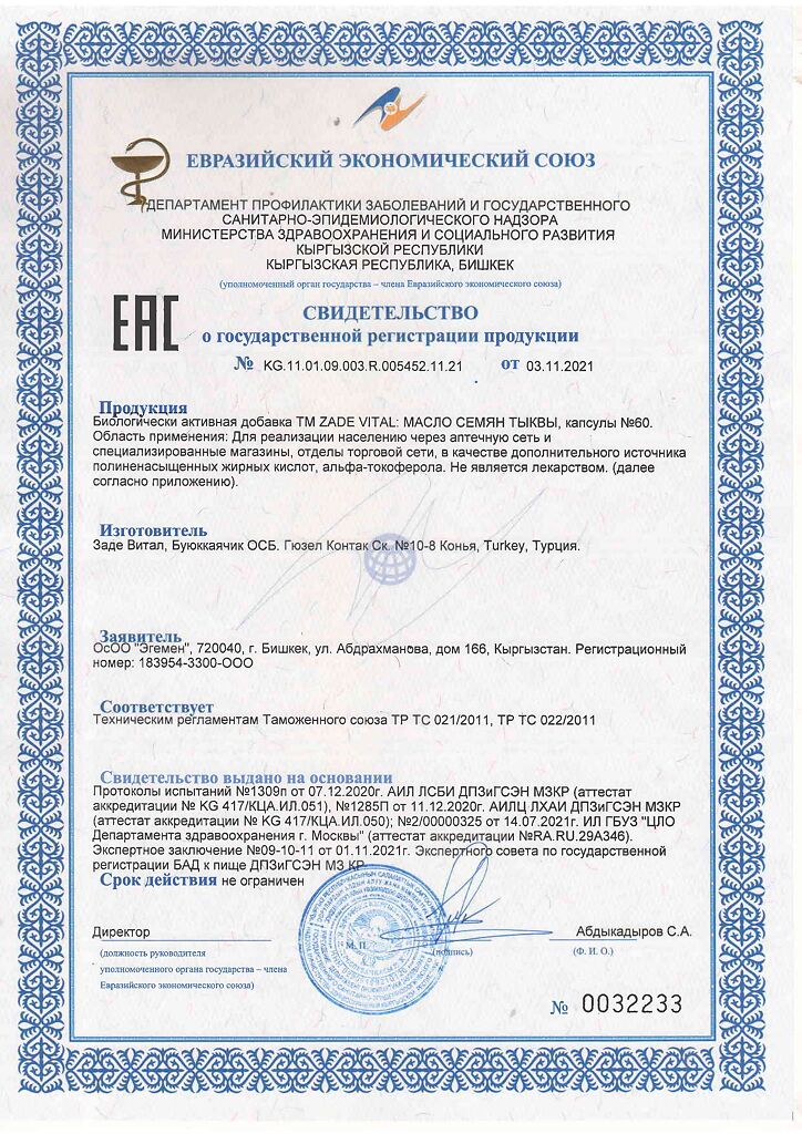 Все варианты Заде Витал/Zade Vital Масло семян тыквы капсулы