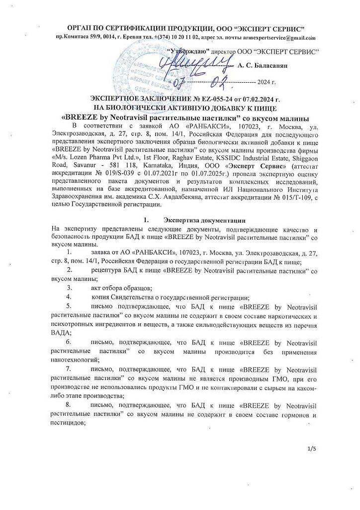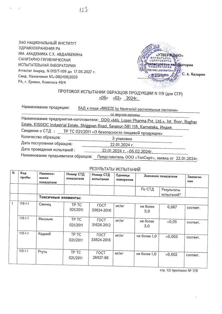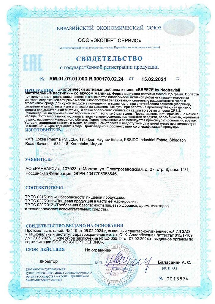 Документы Breeze by Neotravisil растительные пастилки со вкусом малины пастилки массой 2,5 г 12 шт