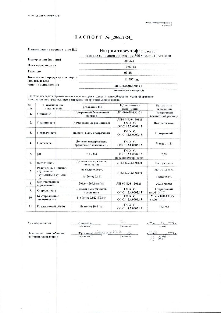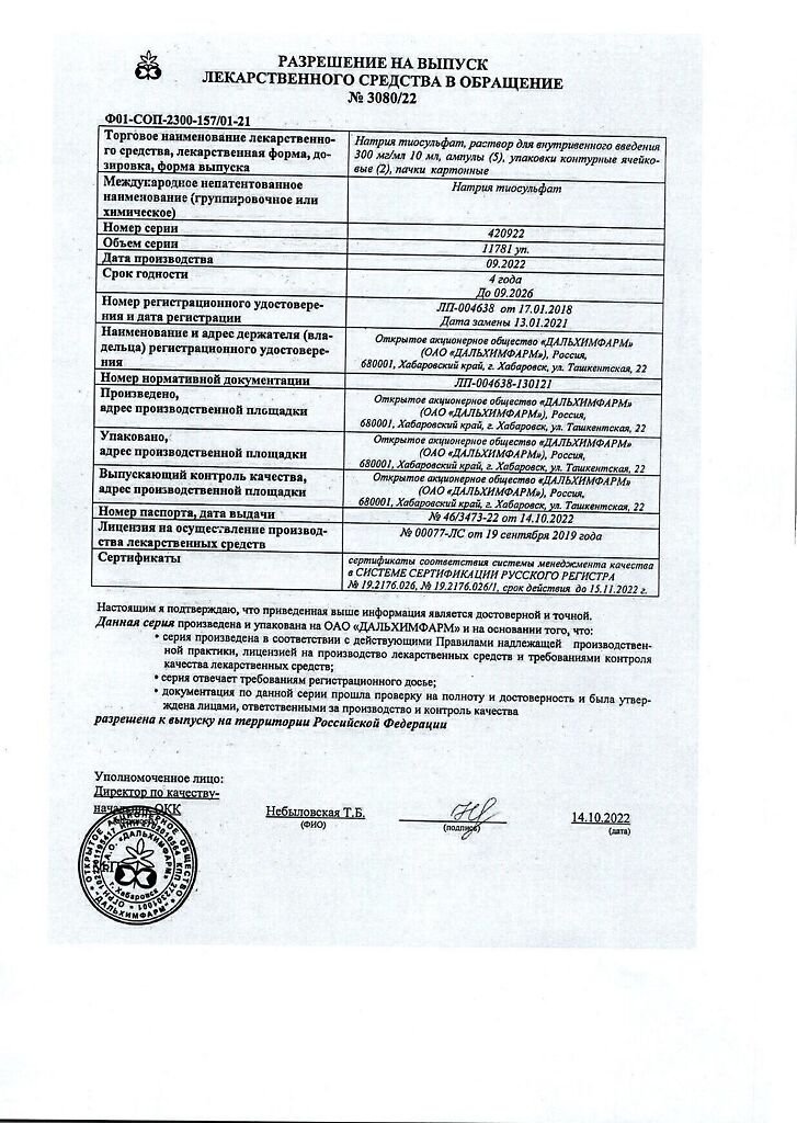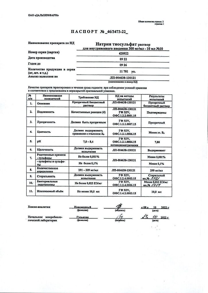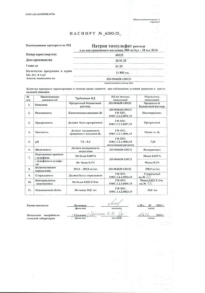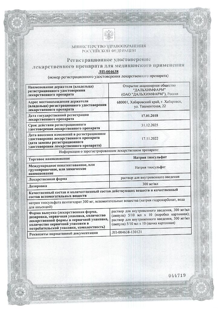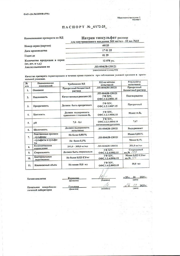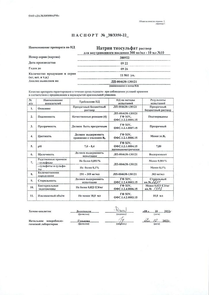 Действующее вещество: Натрия тиосульфат