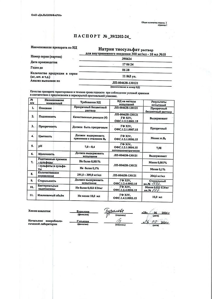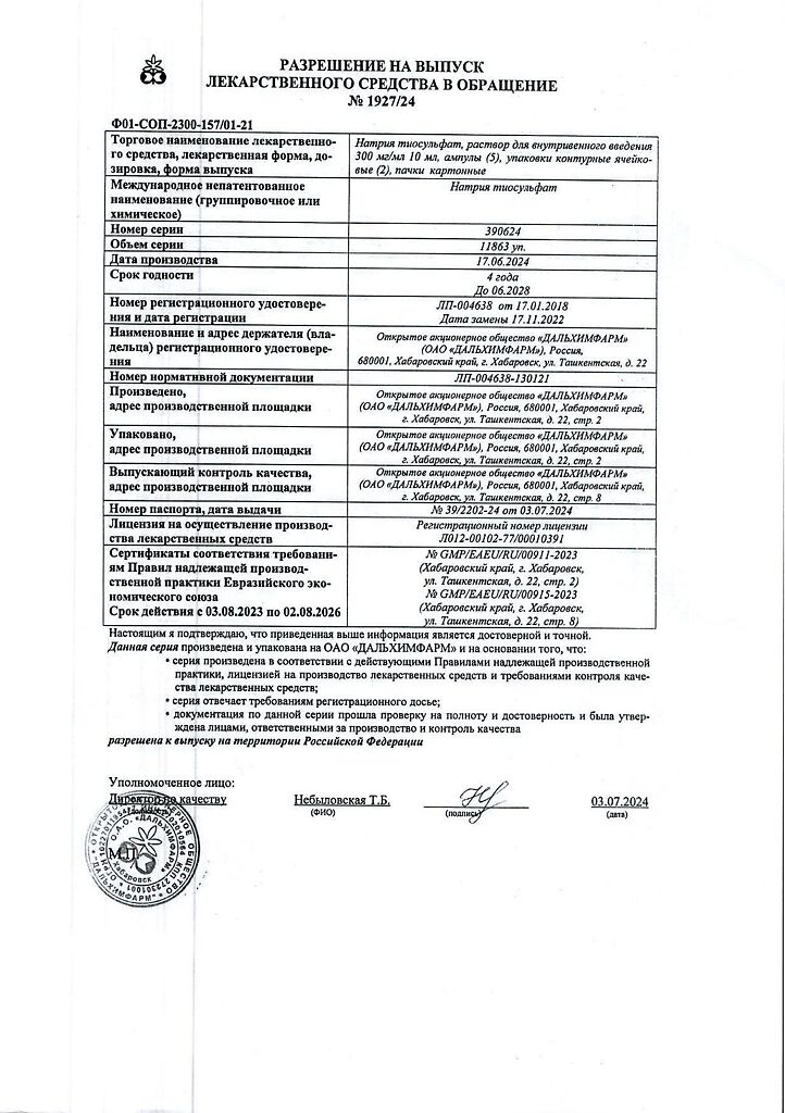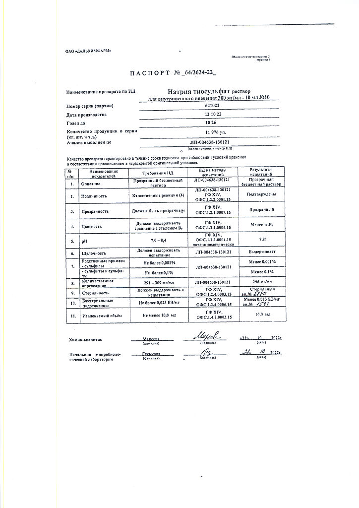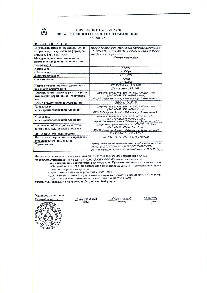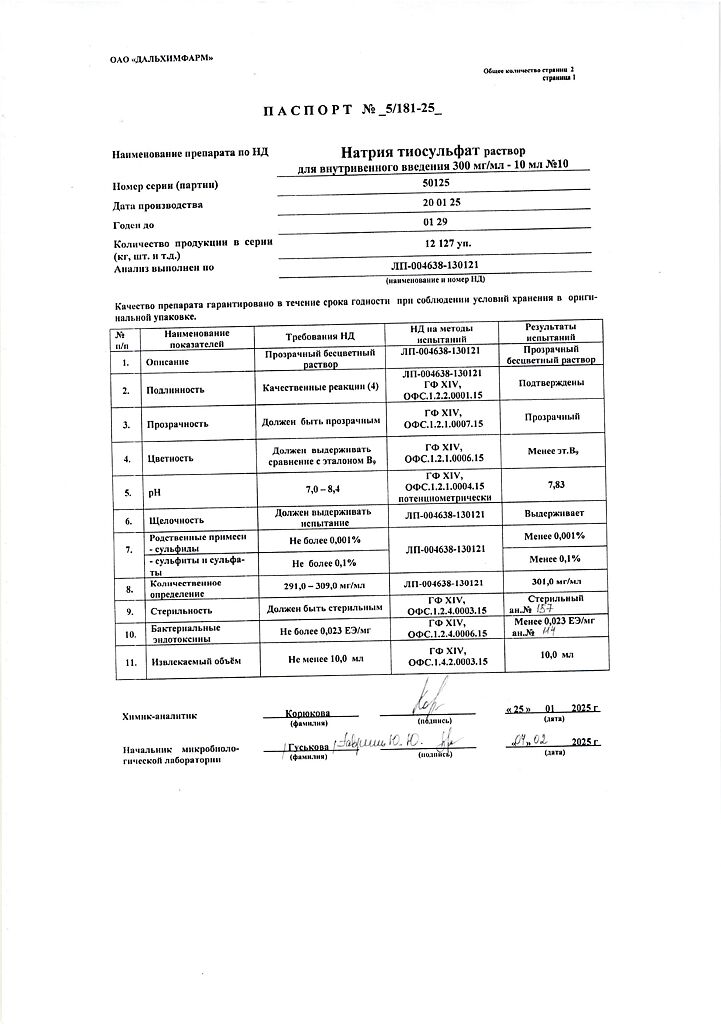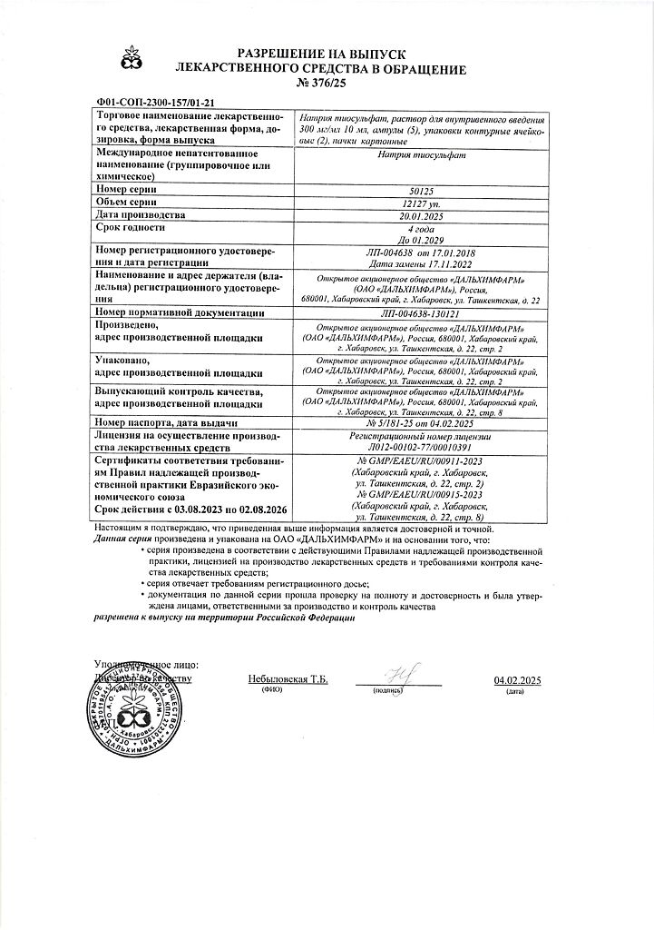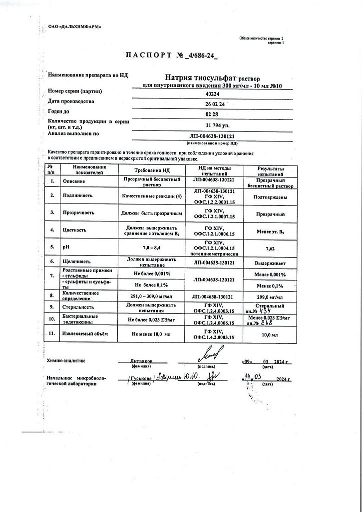 Действующее вещество: Натрия тиосульфат