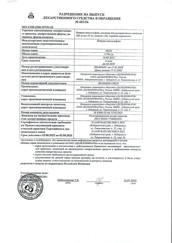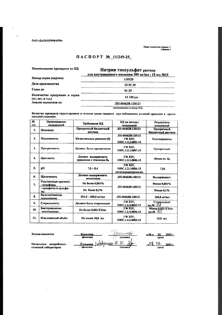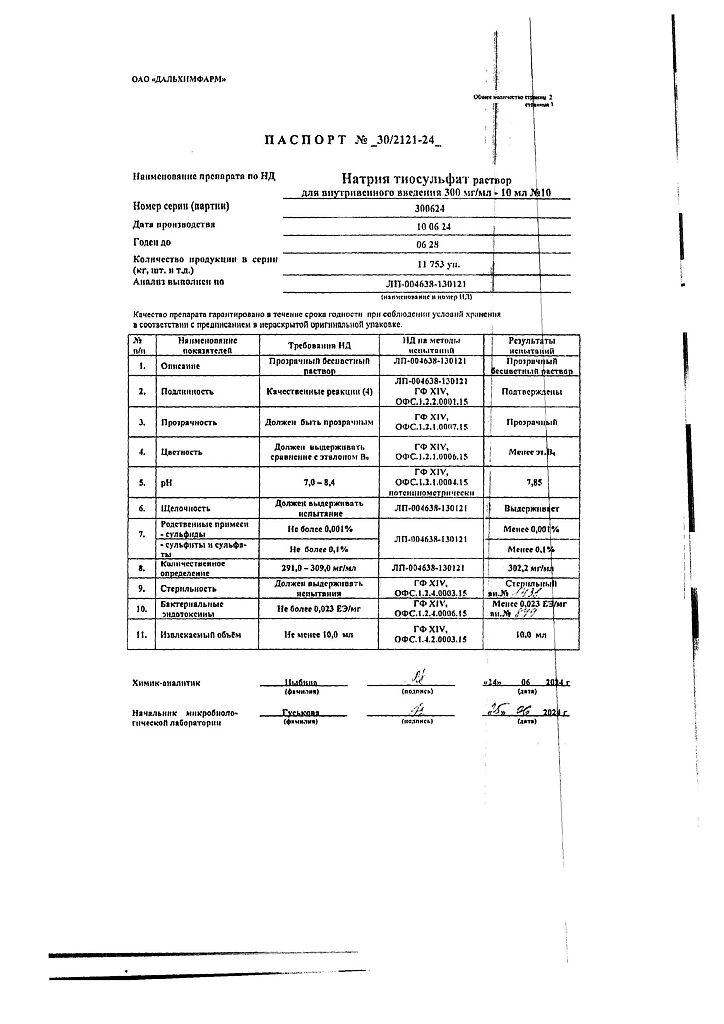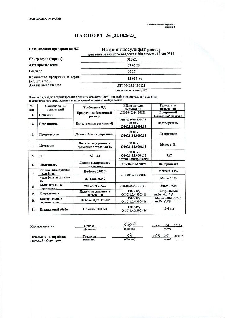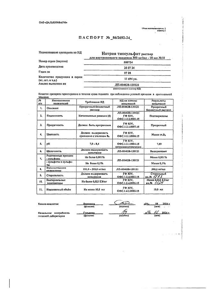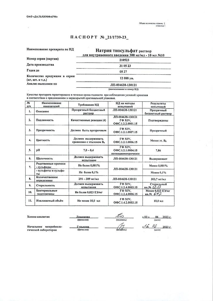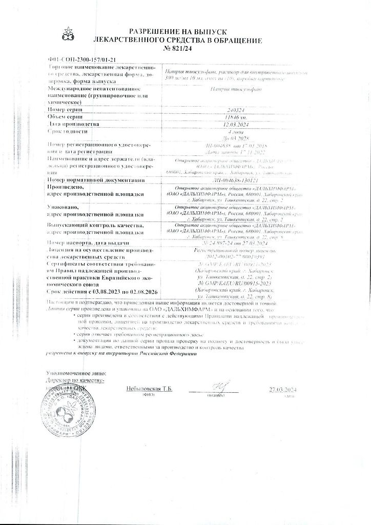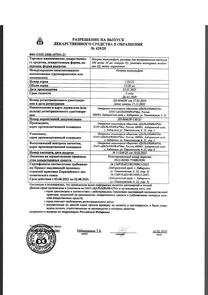Действующее вещество: Натрия тиосульфат