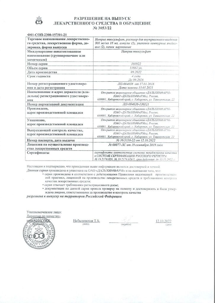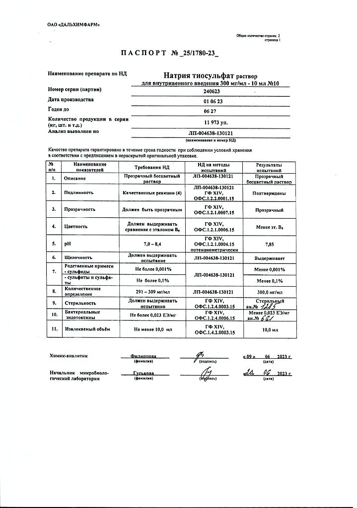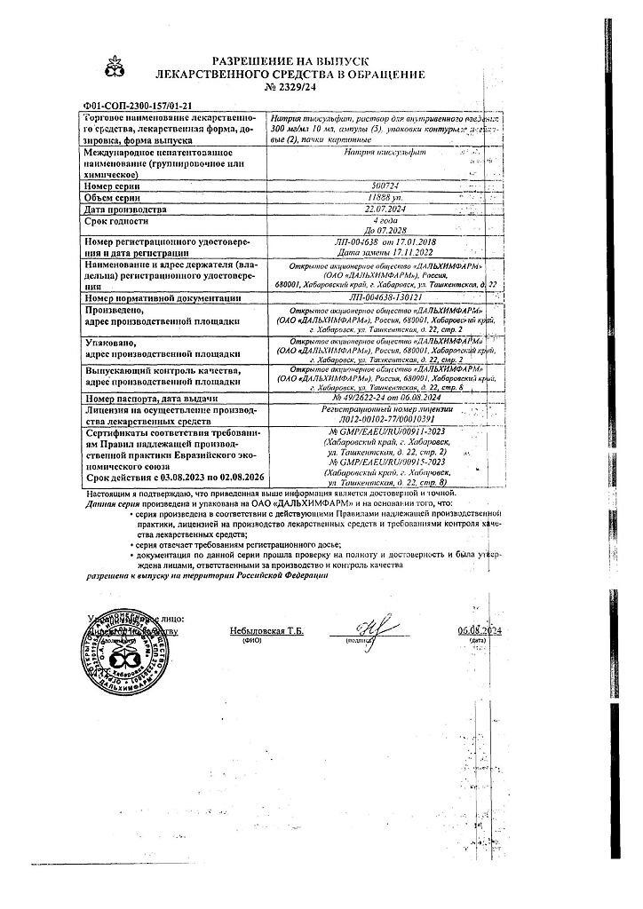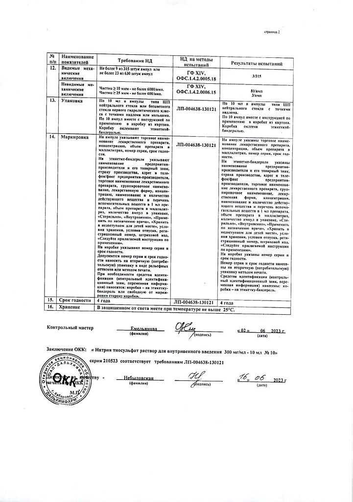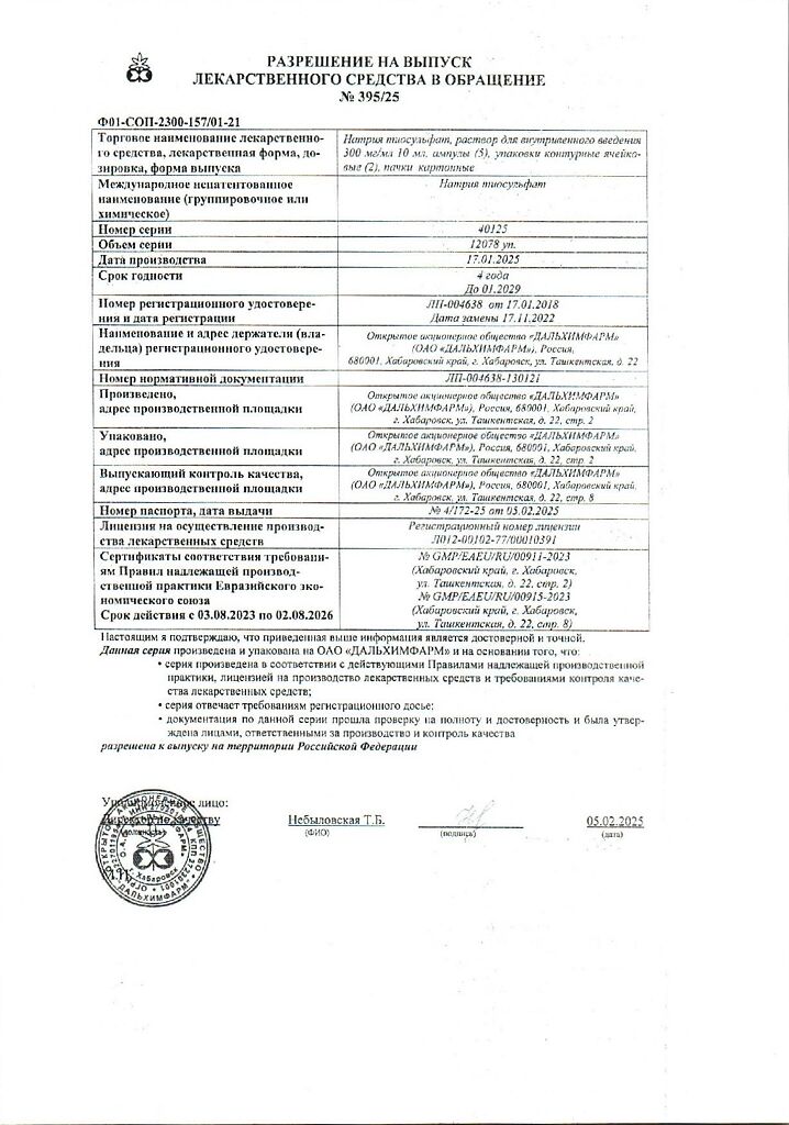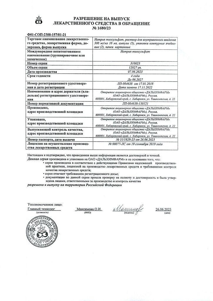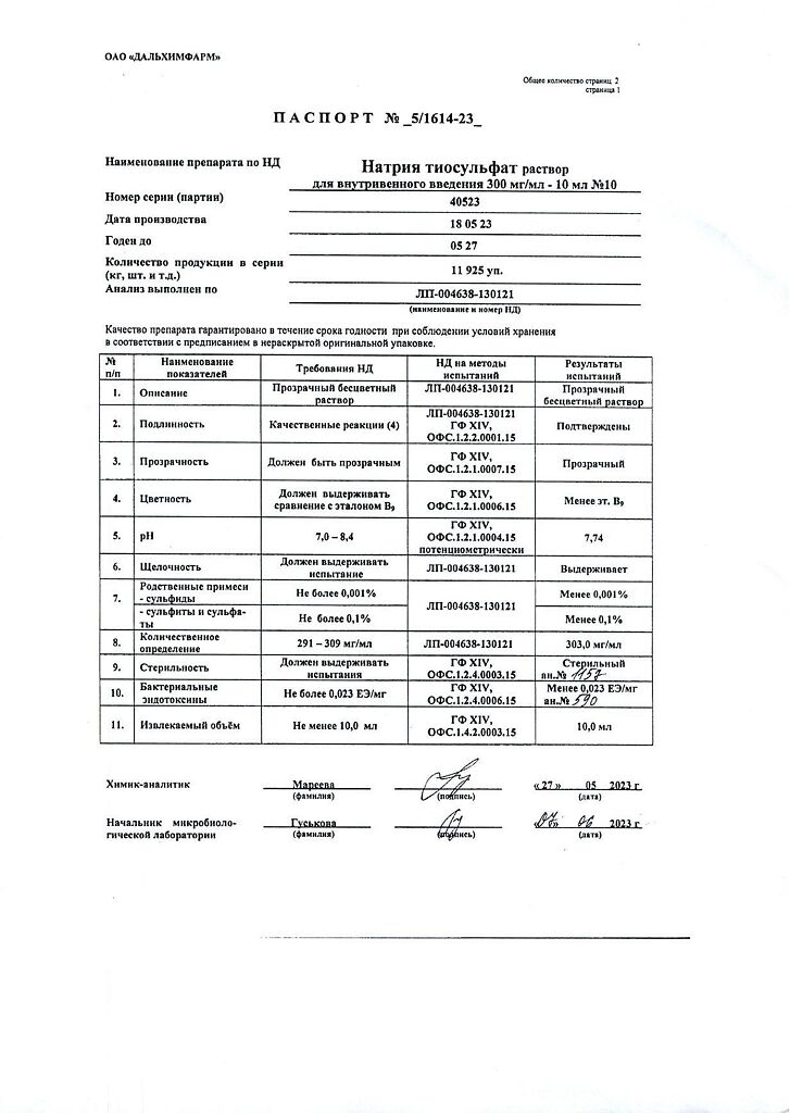 Действующее вещество: Натрия тиосульфат