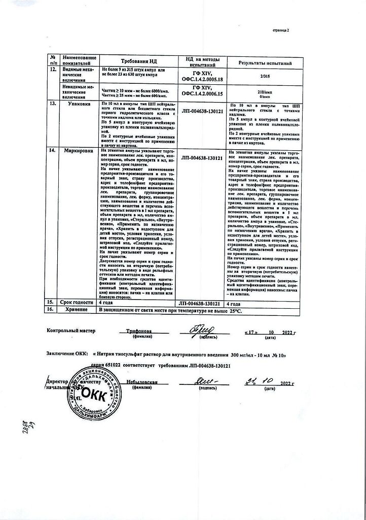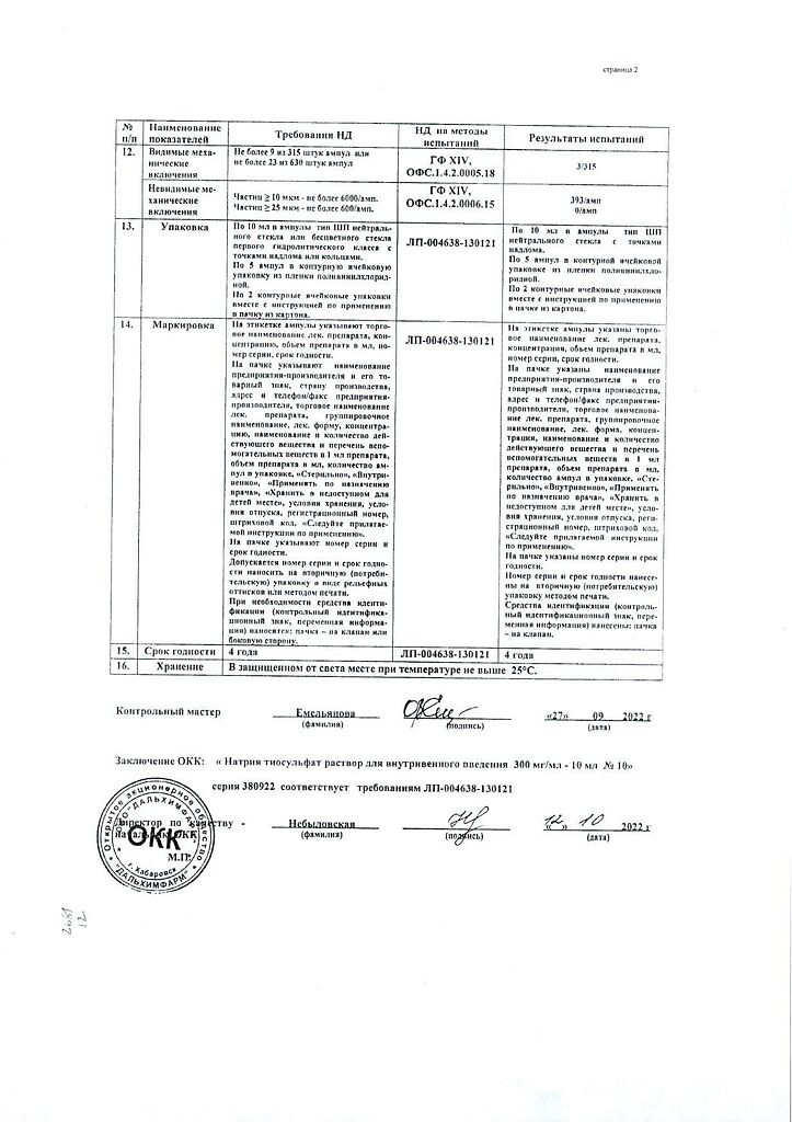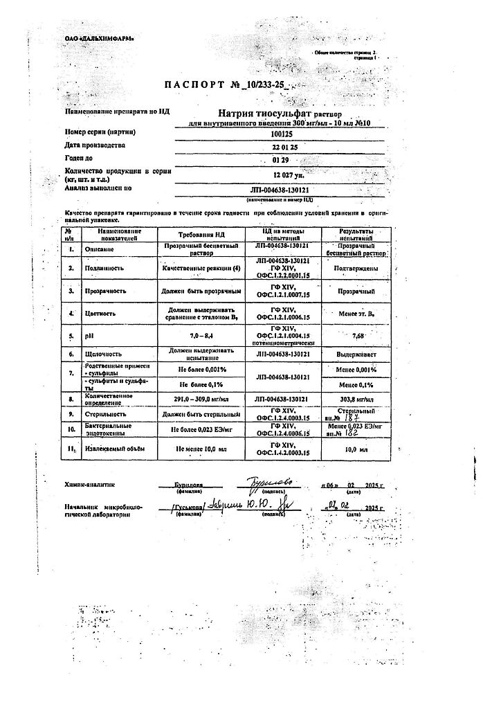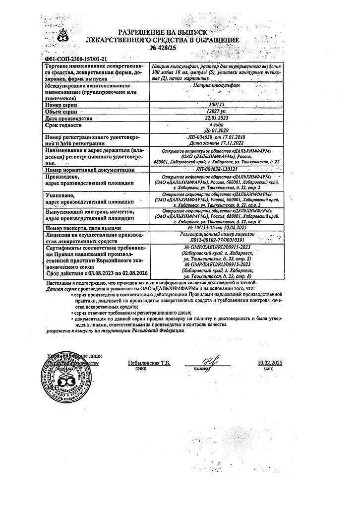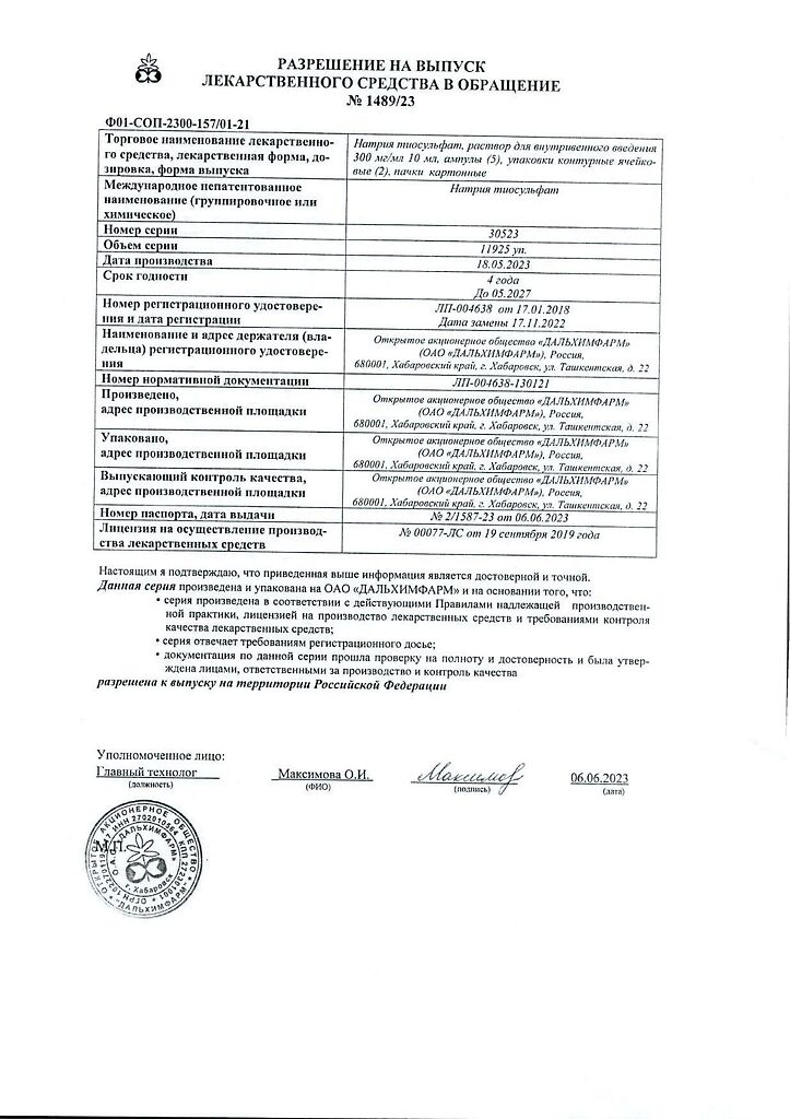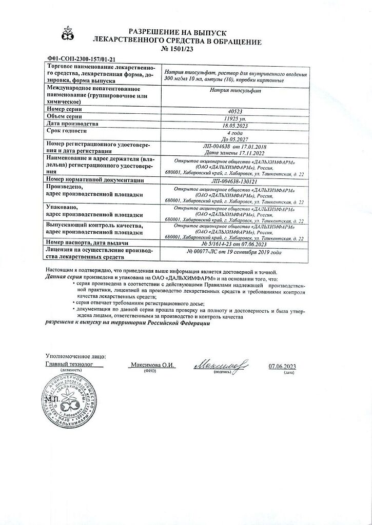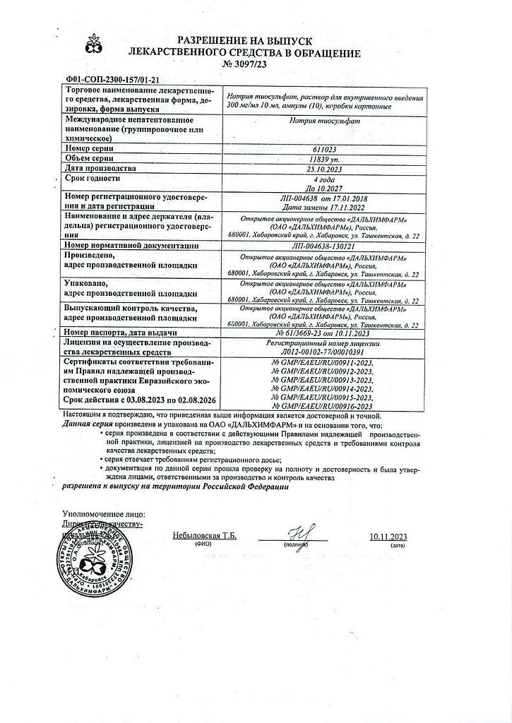 Действующее вещество: Натрия тиосульфат