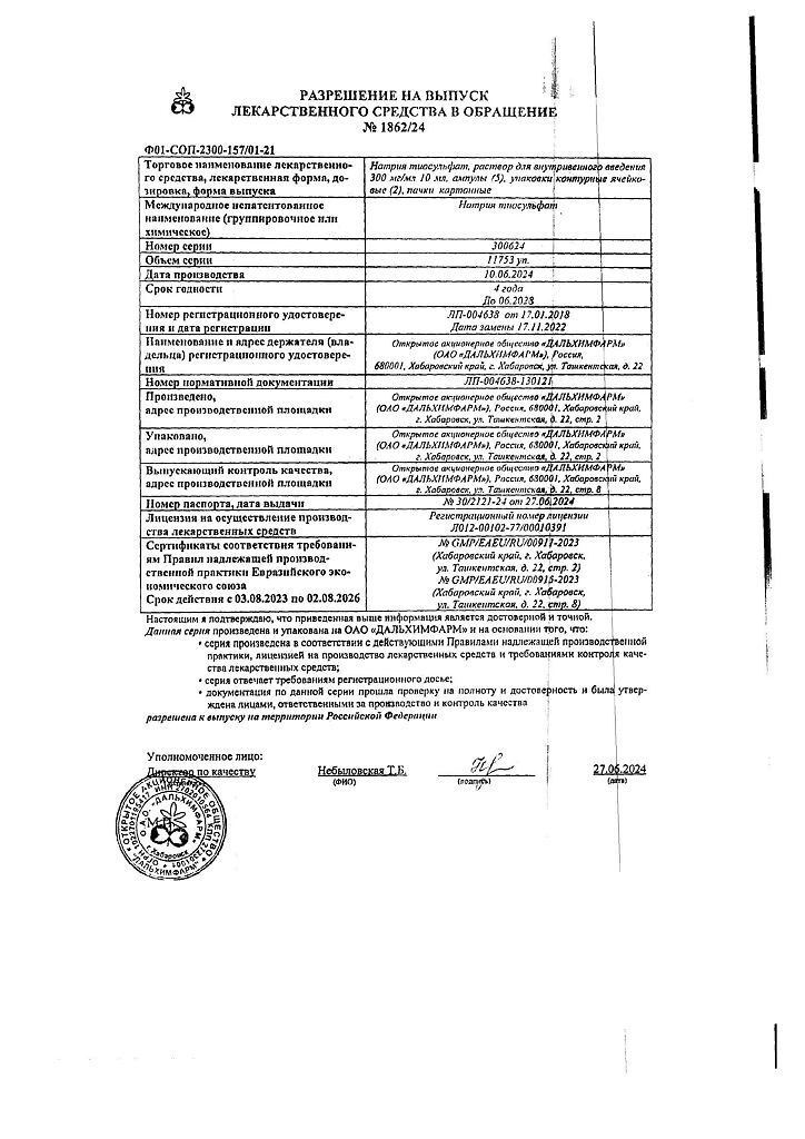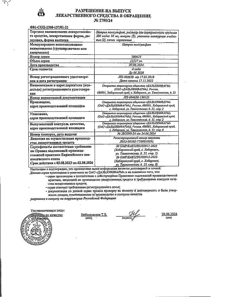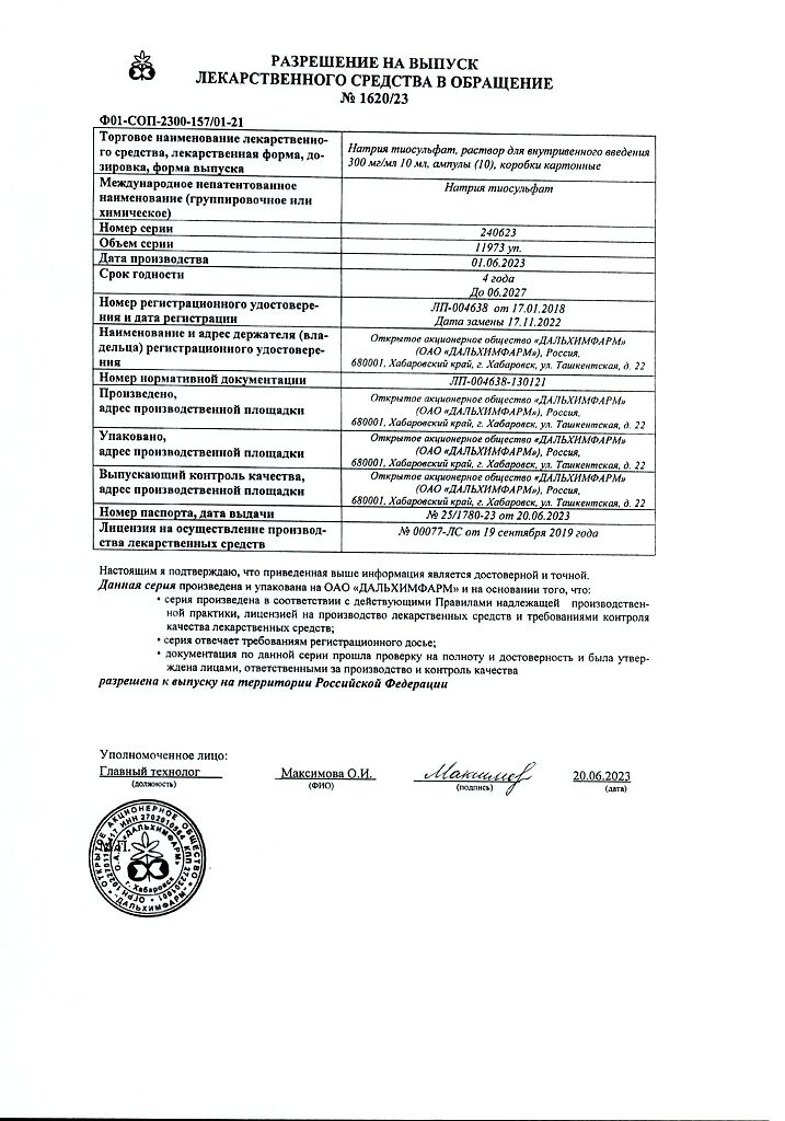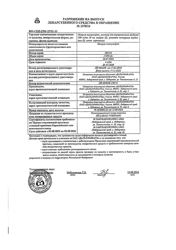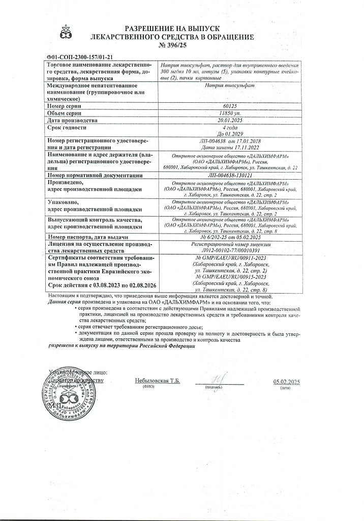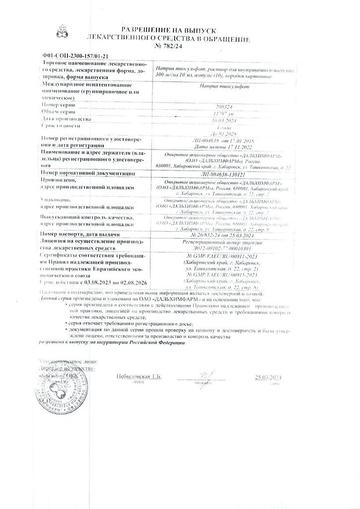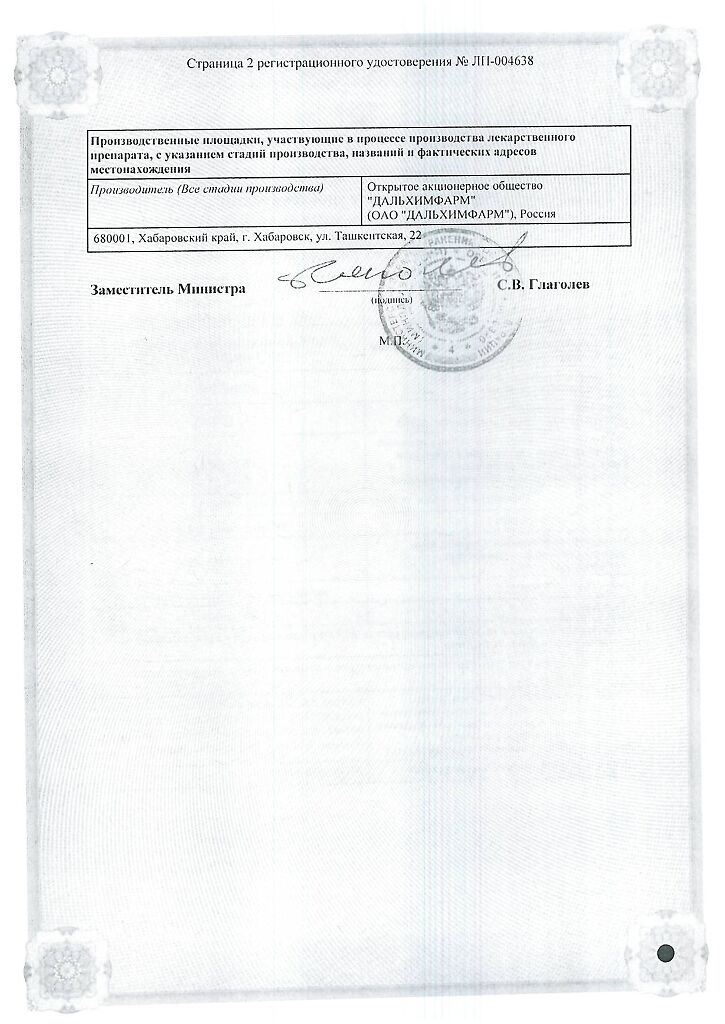 Производитель: Дальхимфарм ОАО, Россия