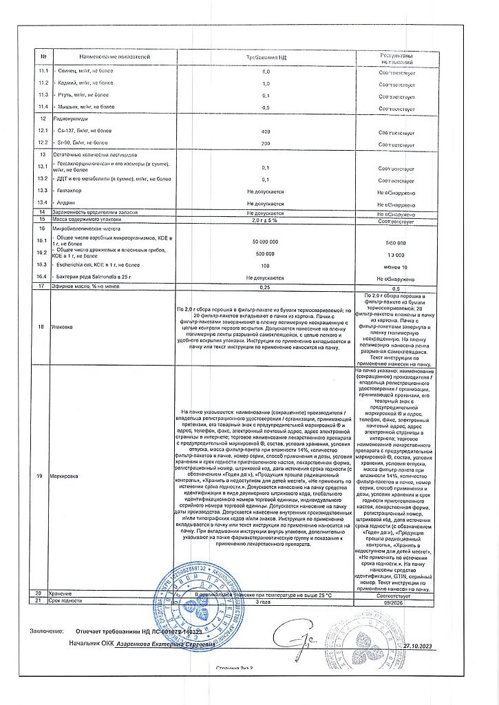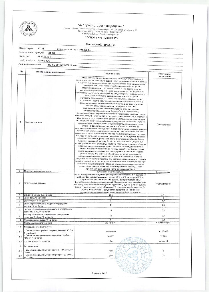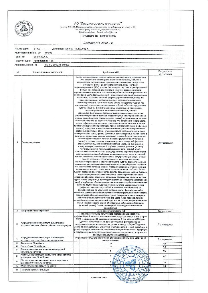 Смесь неоднородных частиц цветков, листьев, стеблей и корней серо-зеленого или зеленовато-серого цвета с оранжево-желтыми, белыми и коричневыми вкраплениями.