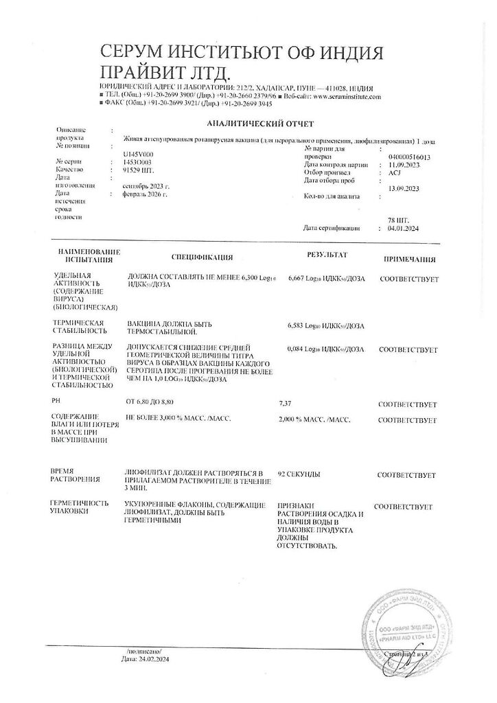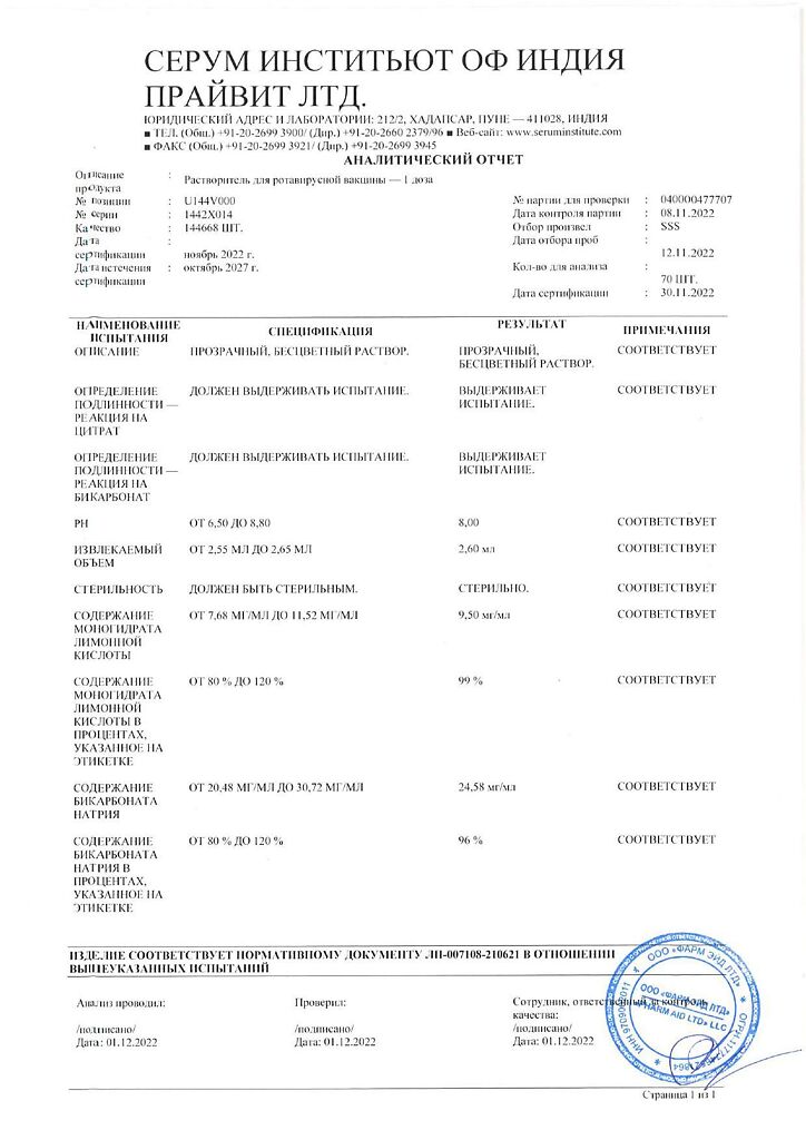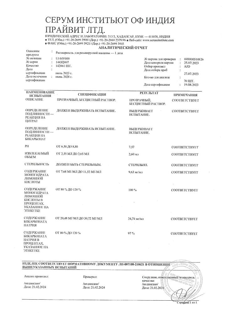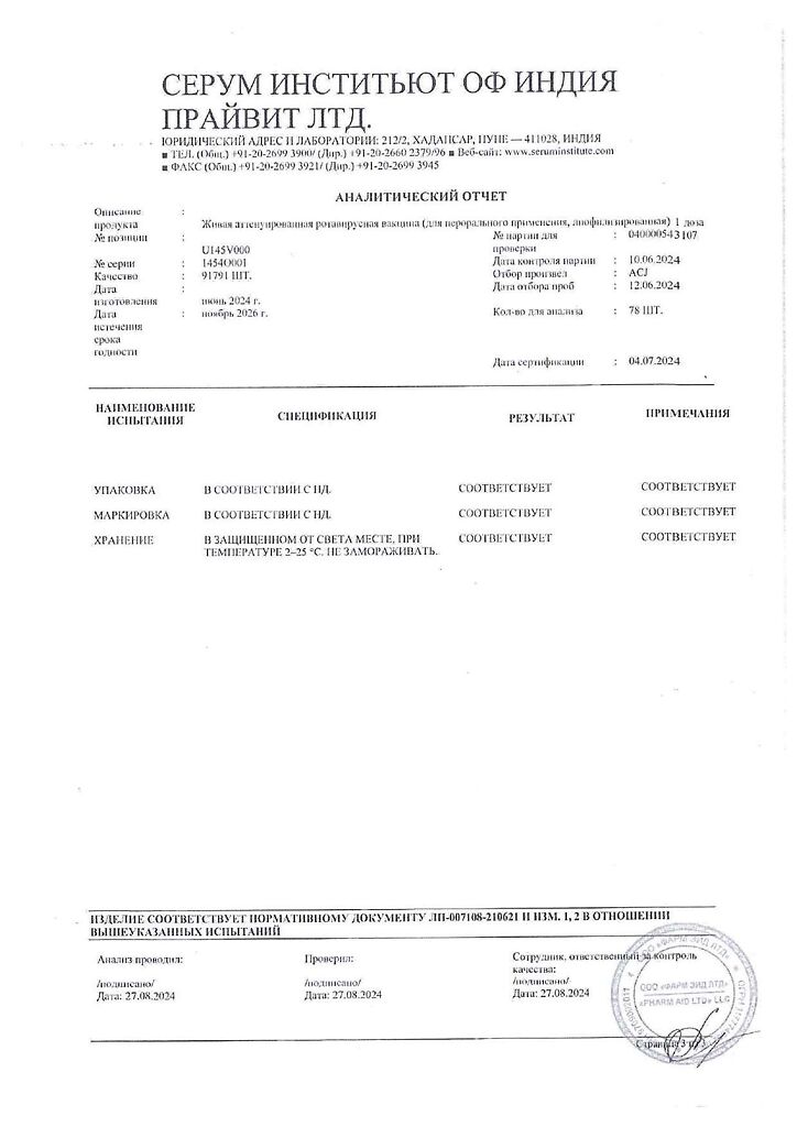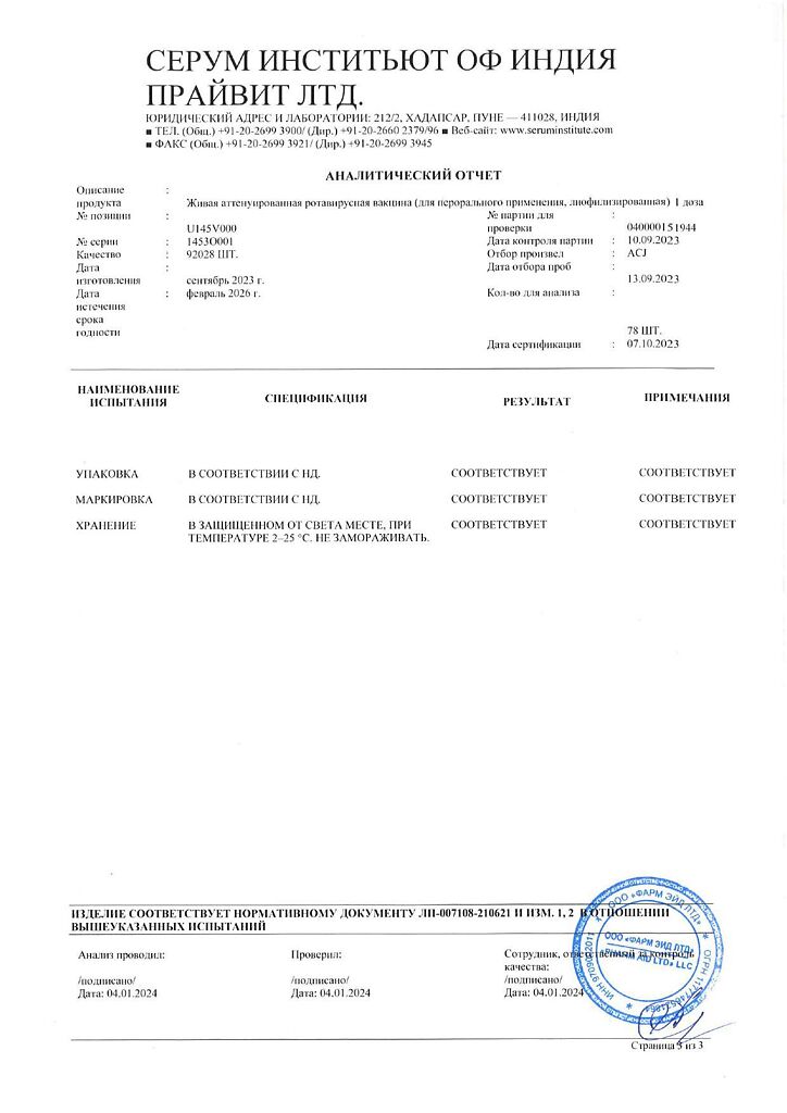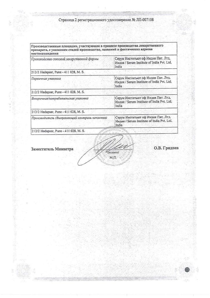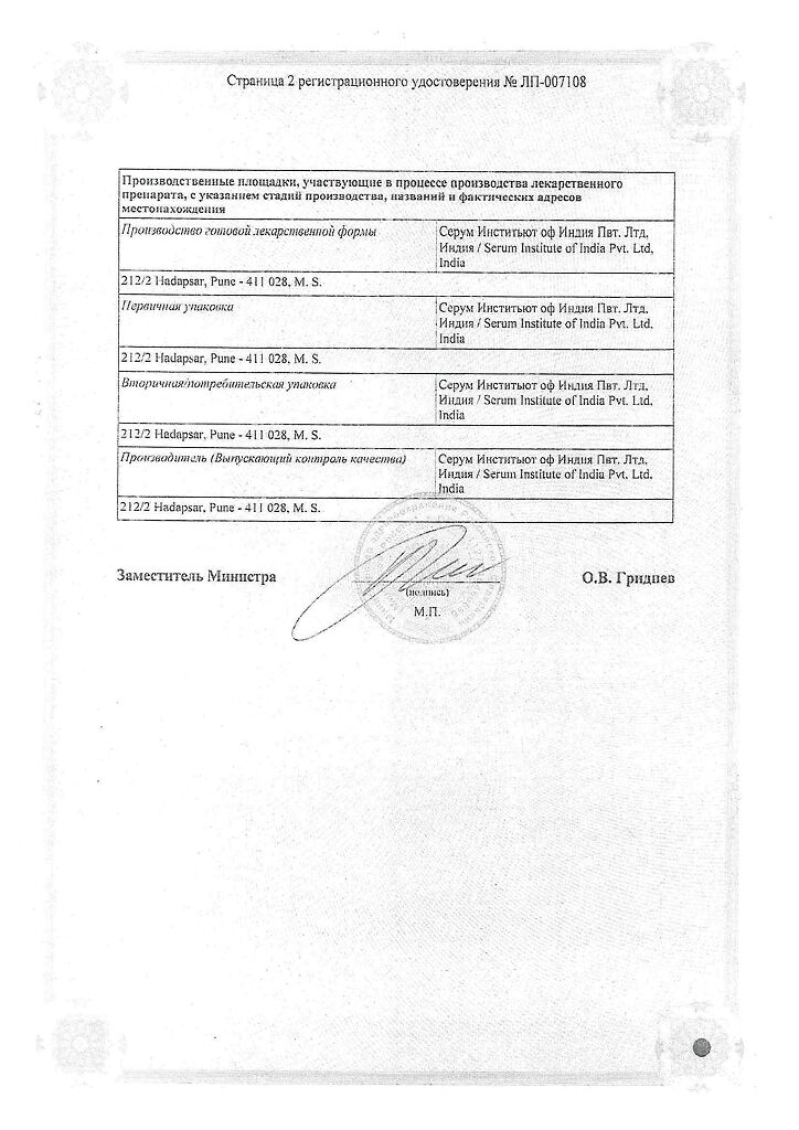 Производитель: Серум Инститьют оф Индия Пвт. Лтд, Индия