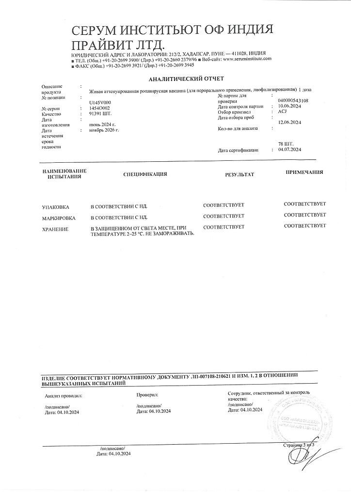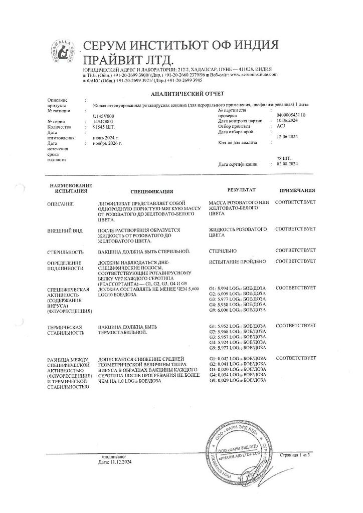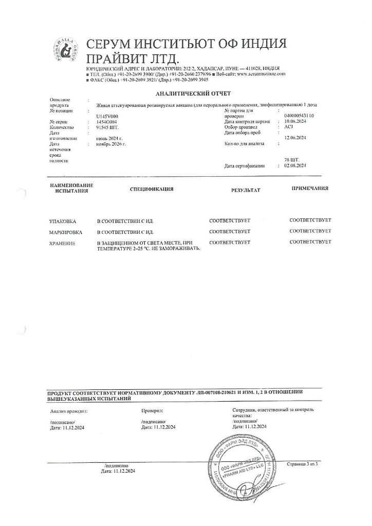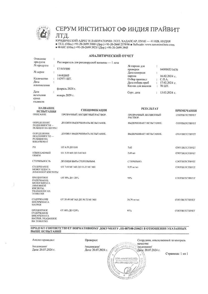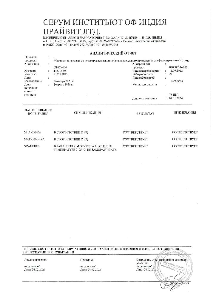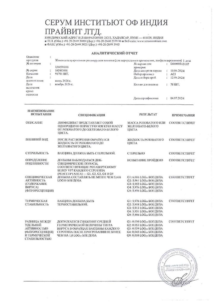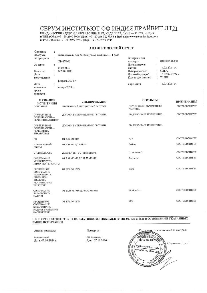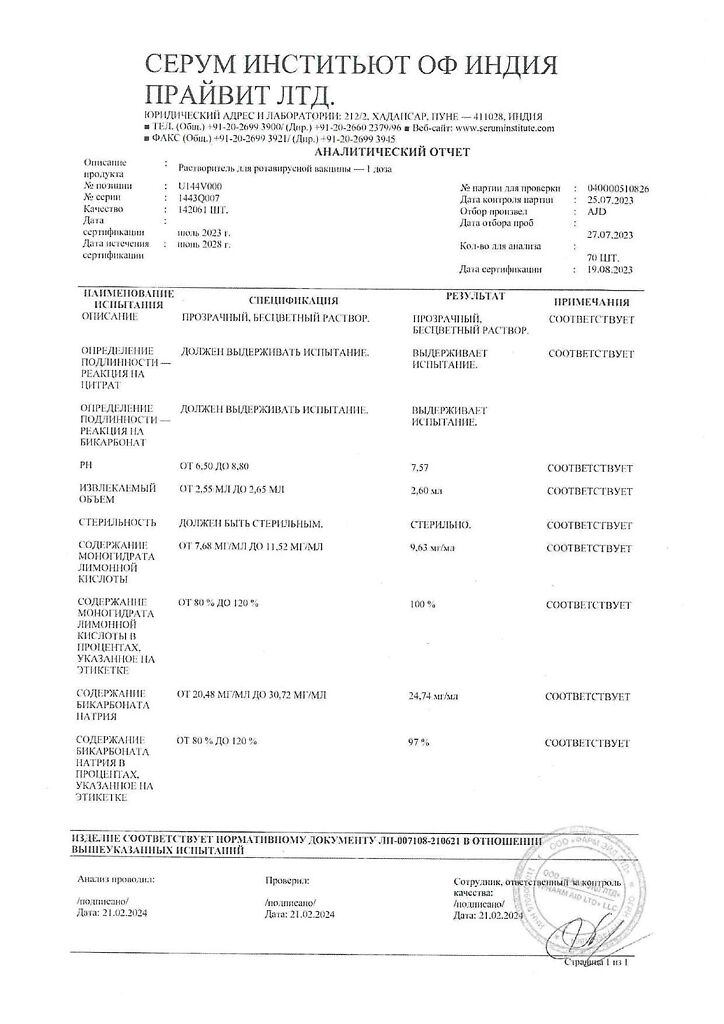 Производитель: Серум Инститьют оф Индия Пвт. Лтд, Индия