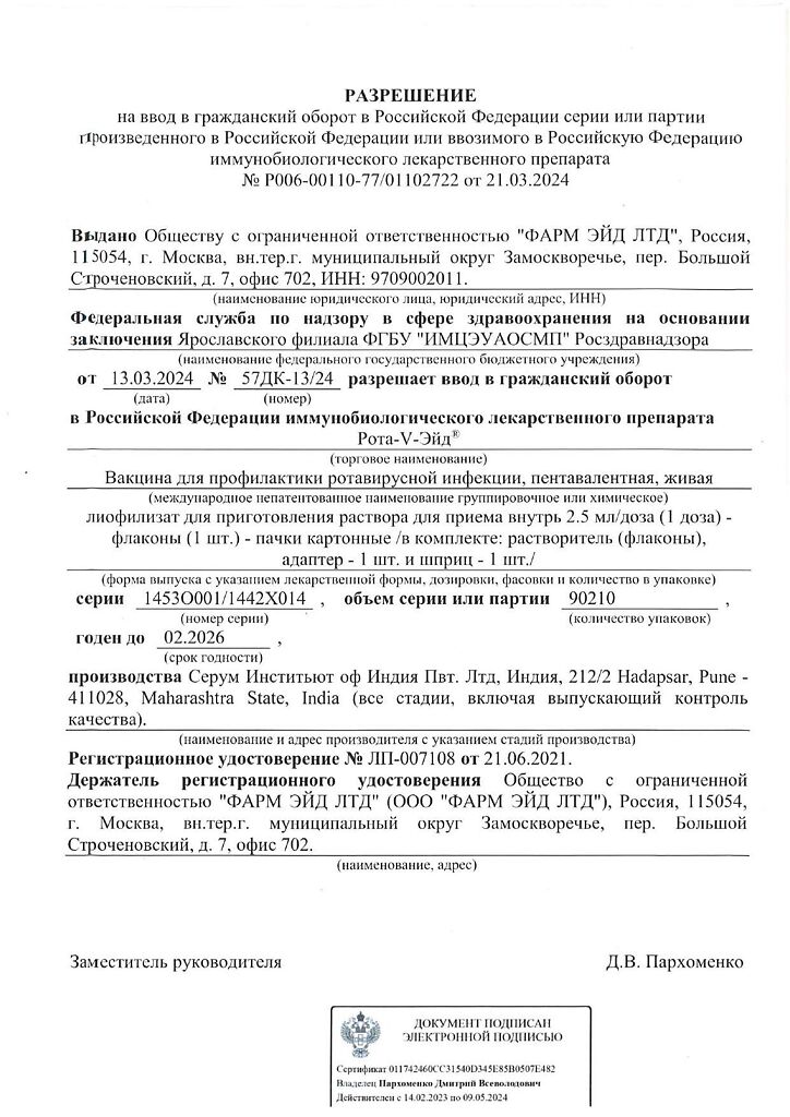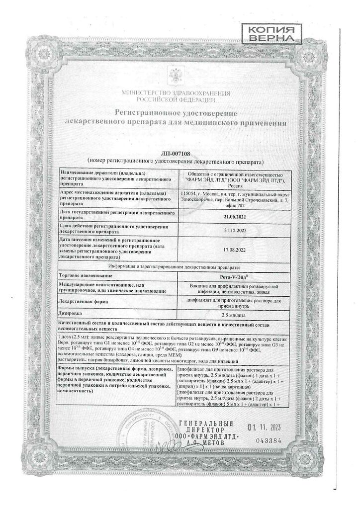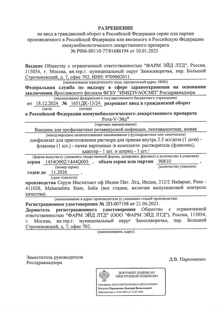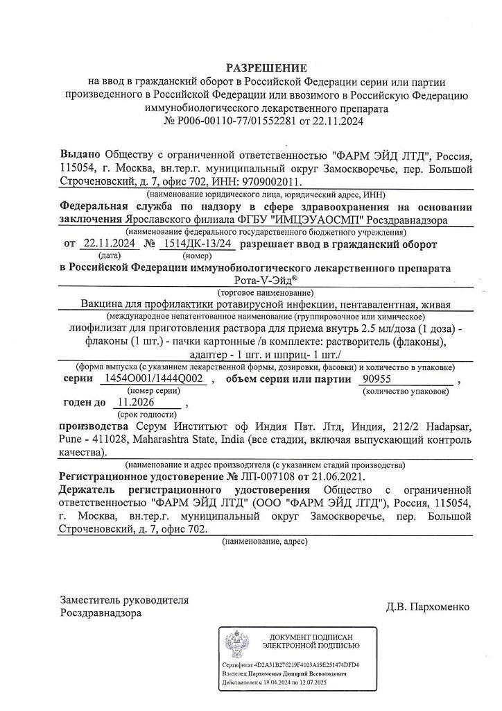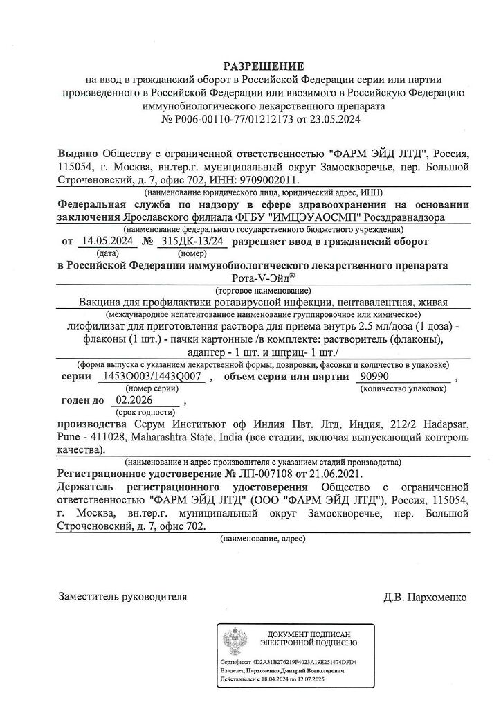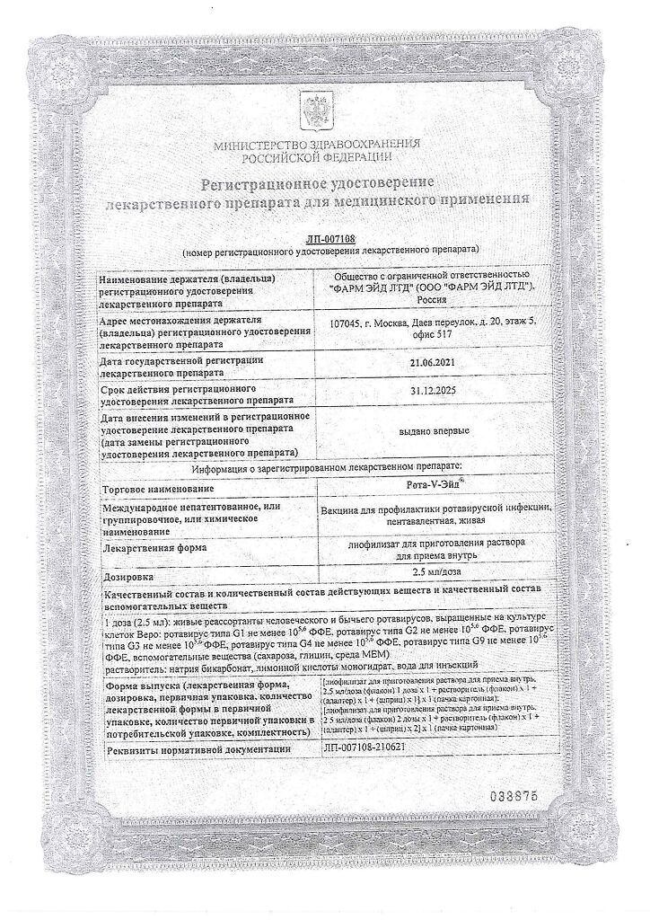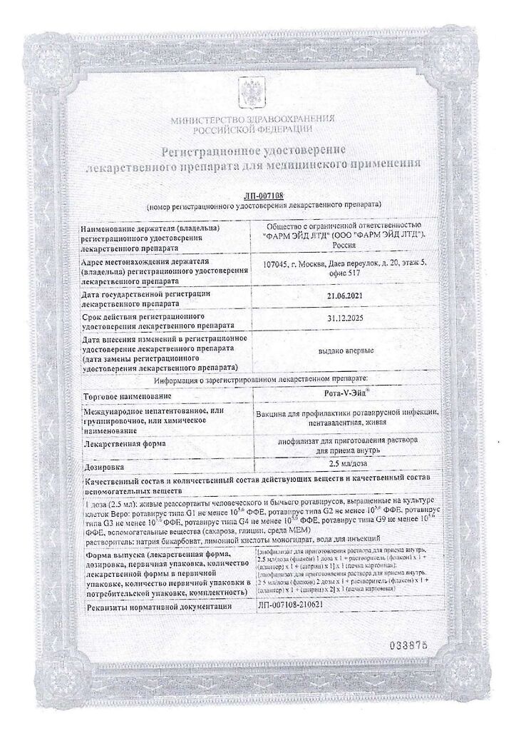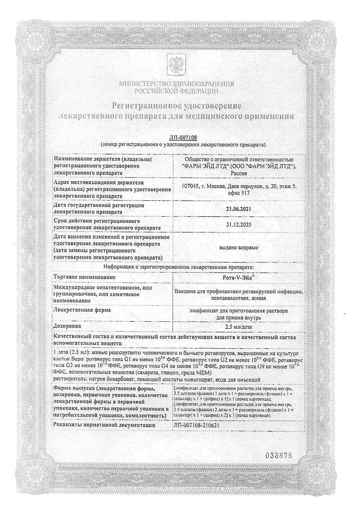 Рота-V-Эйд лиофилизат д/приг раствора для приема внутрь 2,5 мг/доза 1 доза фл с растворителем 1 шт