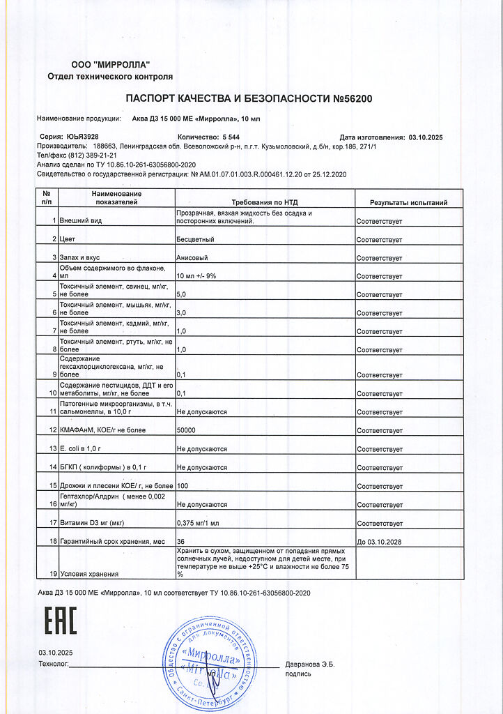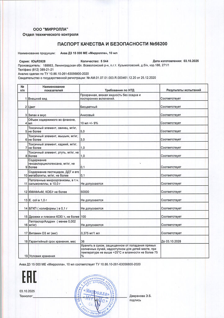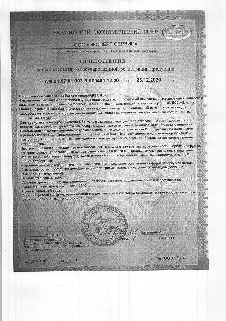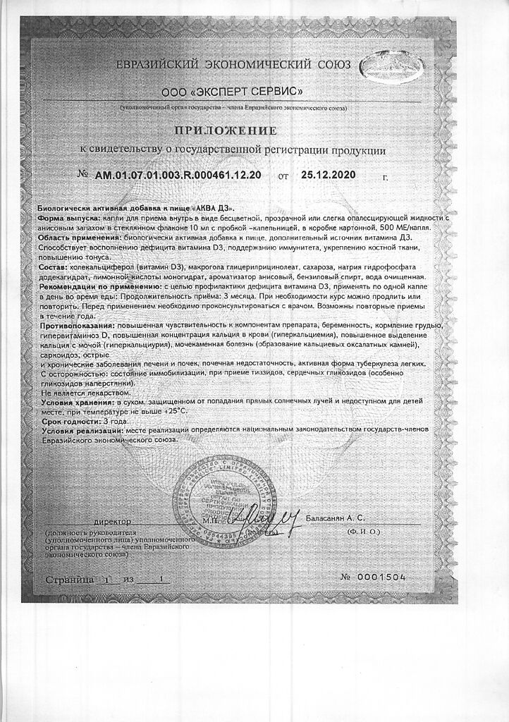 Аква Д3 капли для приема внутрь водный 15000 МЕ, 10 мл
