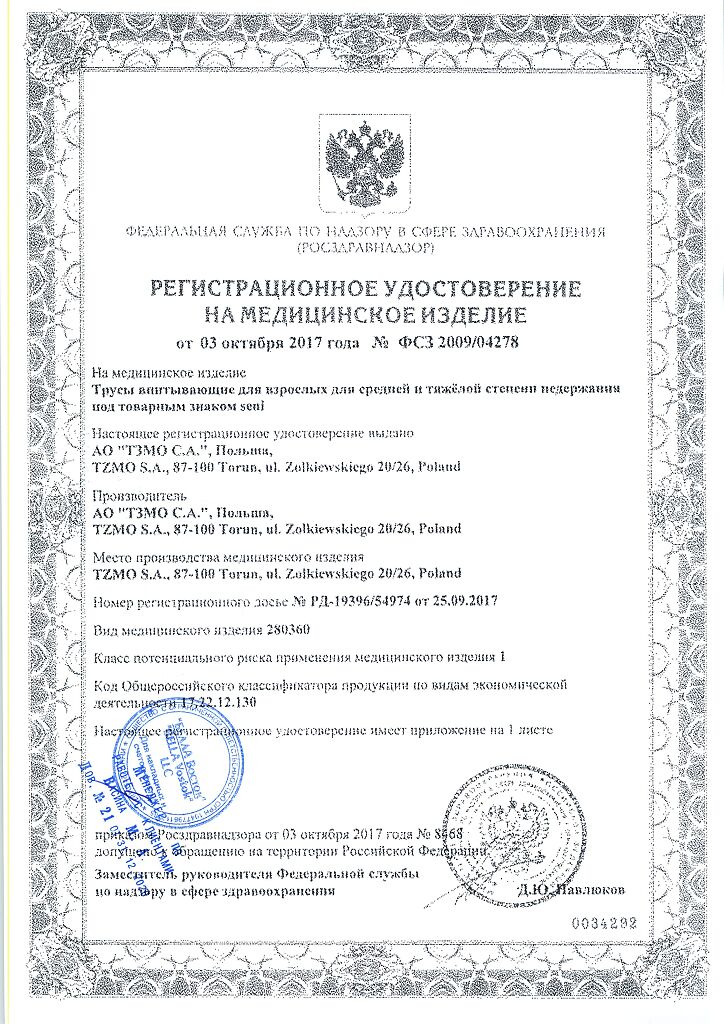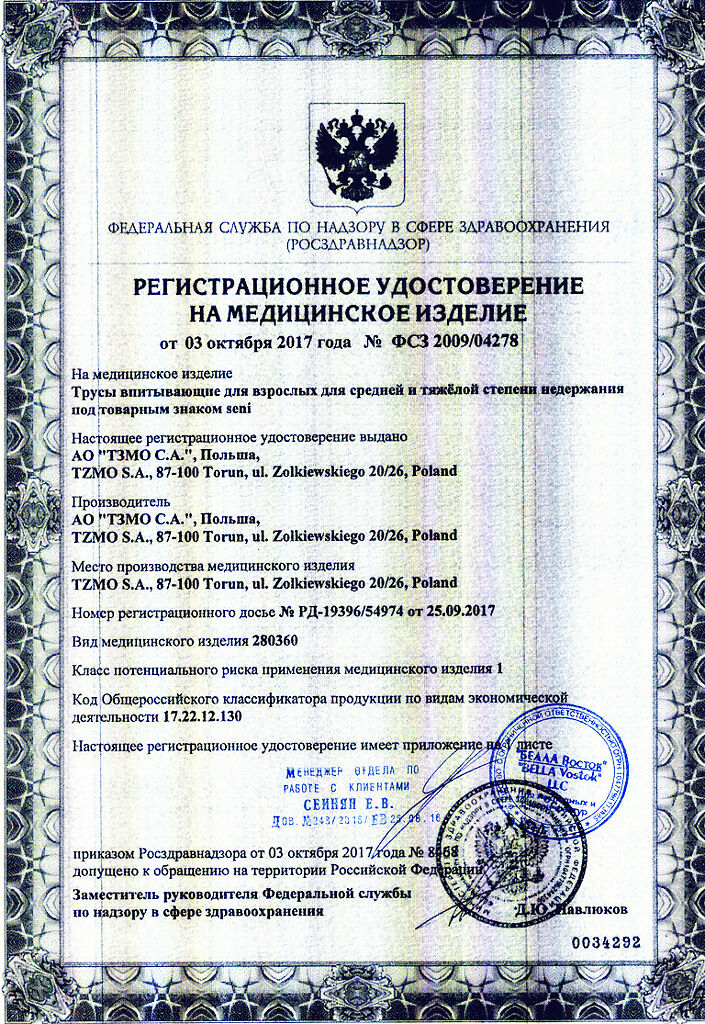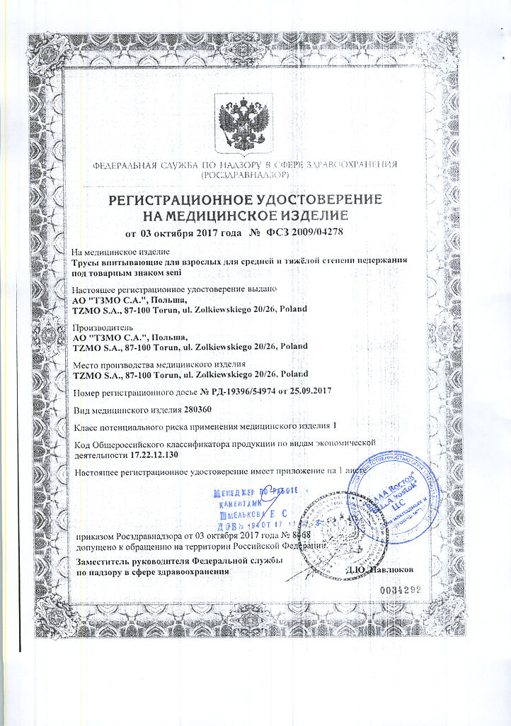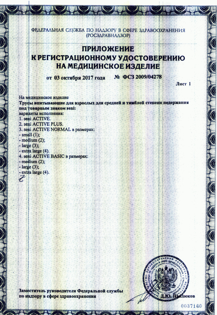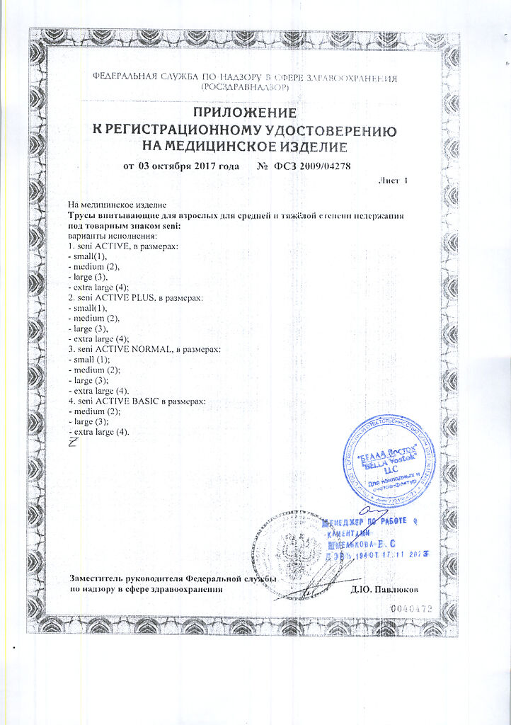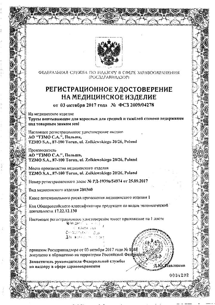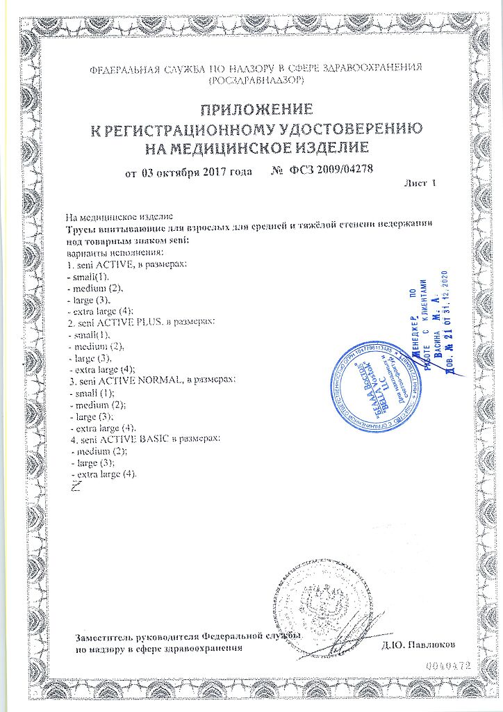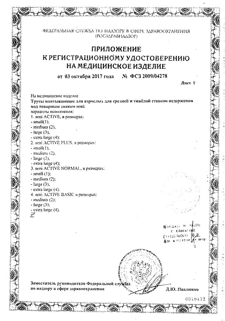Документы Seni Active Plus Трусы впитывающие для взрослых Large 10 шт