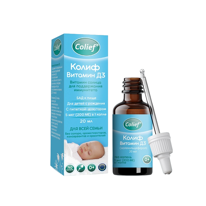 • 📒 Подробная инструкция по применению Колиф Витамин Д3 / Colief Vitamin D3 Drops капли 0+ фл с пипеткой 20 мл 1 шт