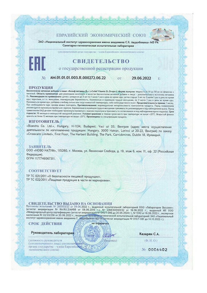 Документы Колиф Витамин Д3 / Colief Vitamin D3 Drops капли 0+ фл с пипеткой 20 мл 1 шт