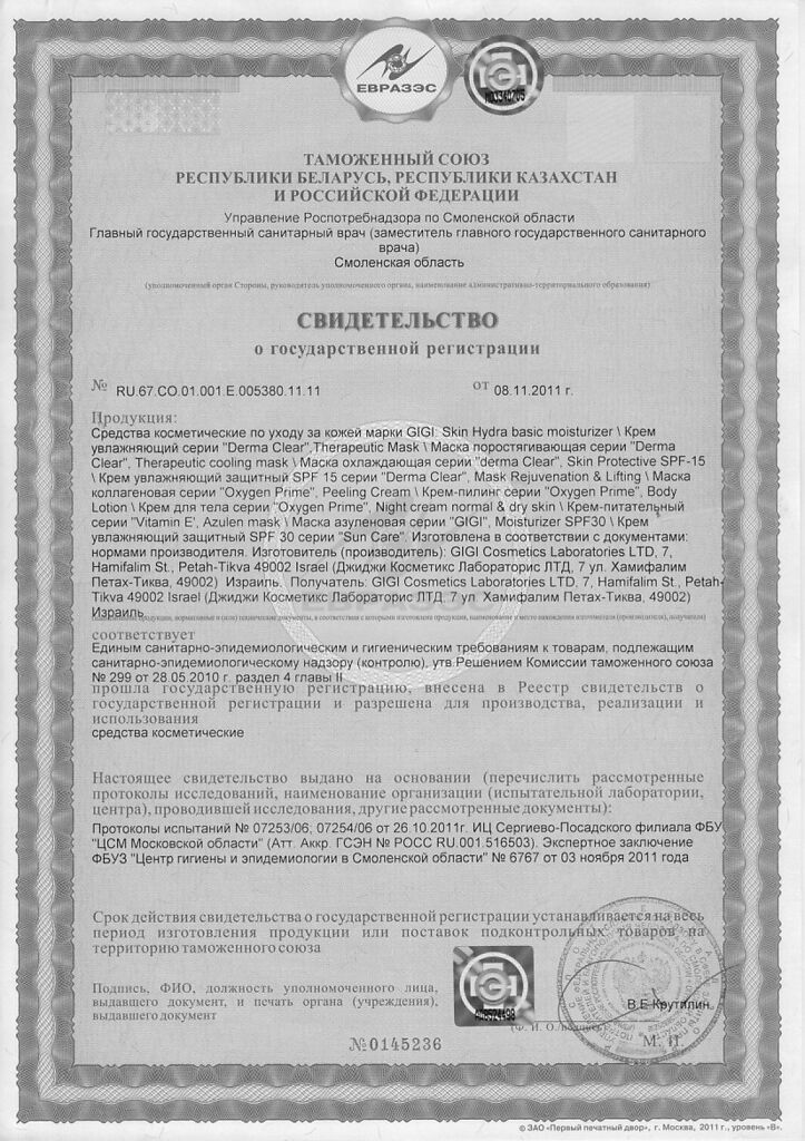 Производитель: GIGI Cosmetics Laboratories, Израиль