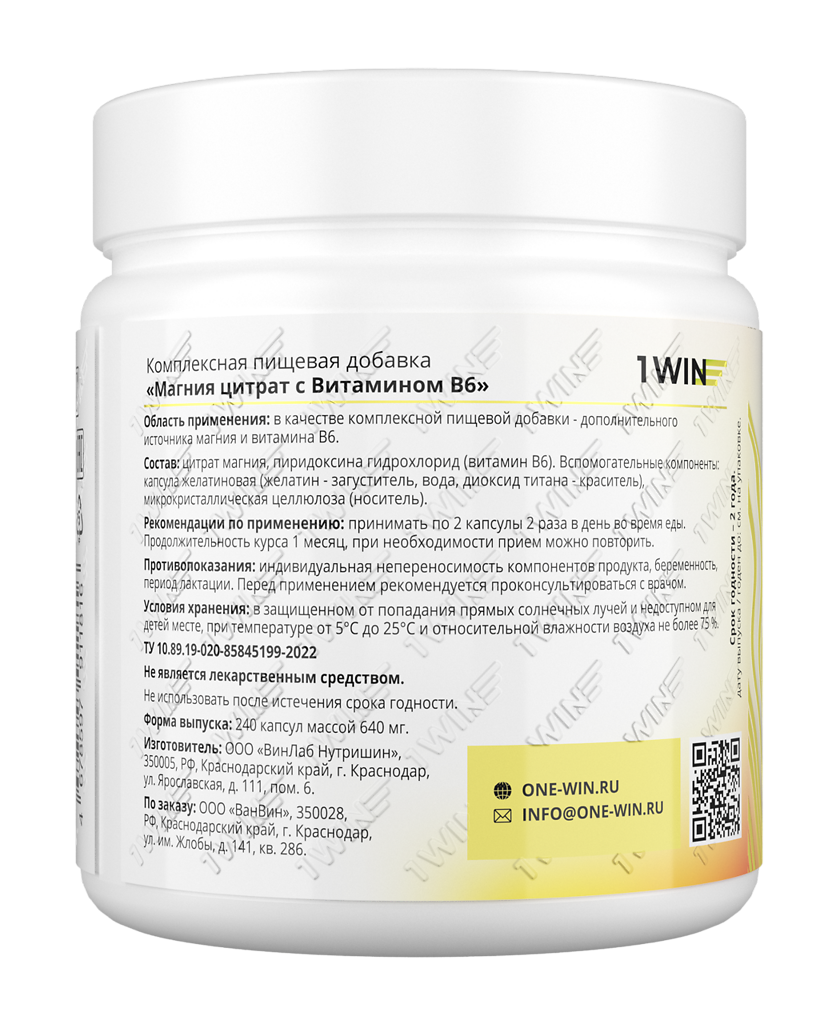 1WIN Магний+B6 / Magnesium+B6 капсулы массой 640 мг 240 шт