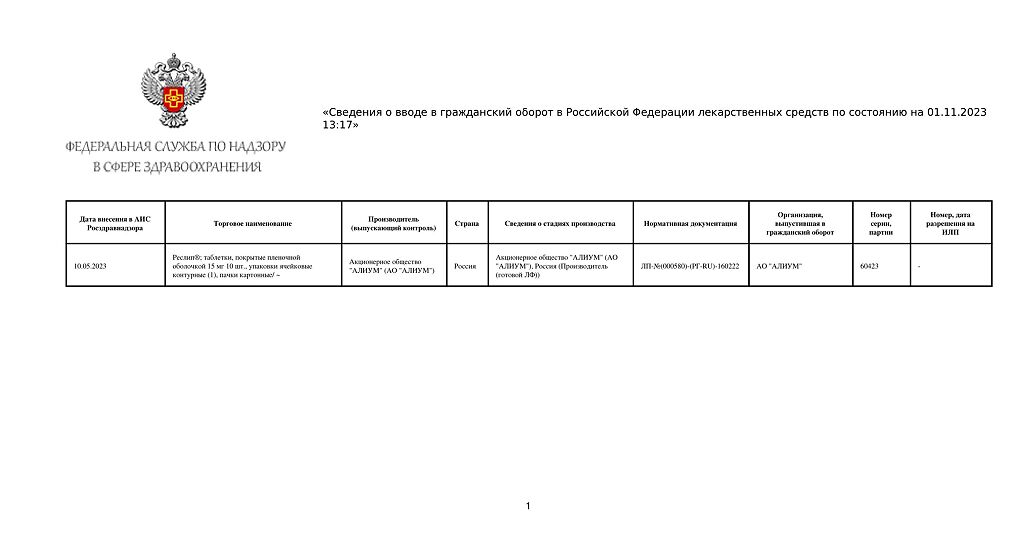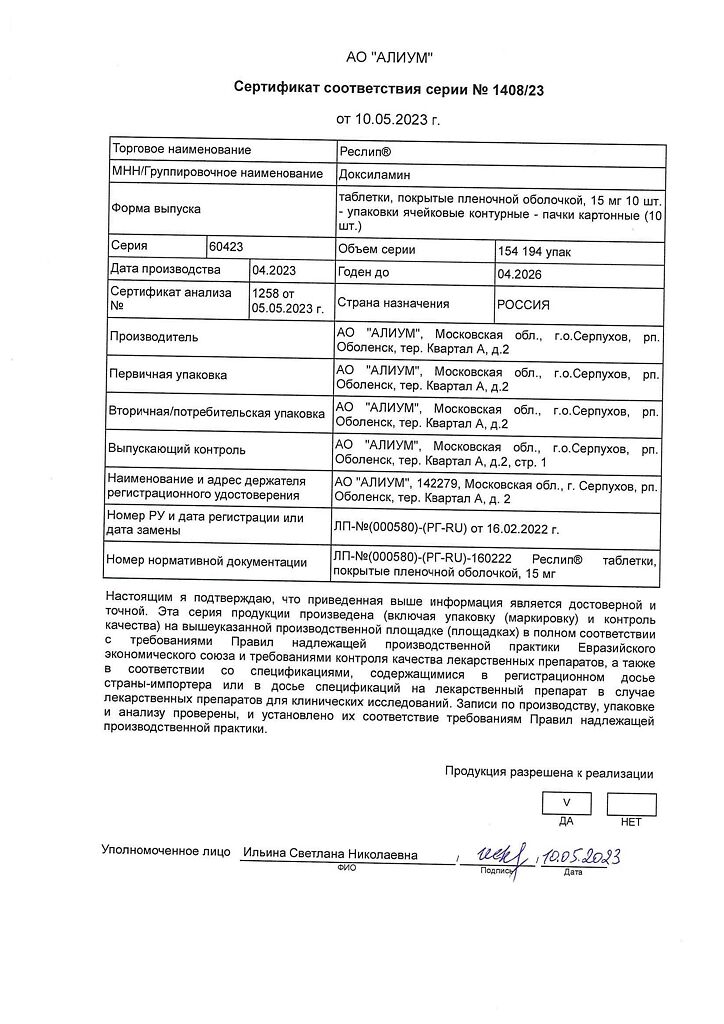 • Цена на Реслип в аптеках Магадана от 189 руб.