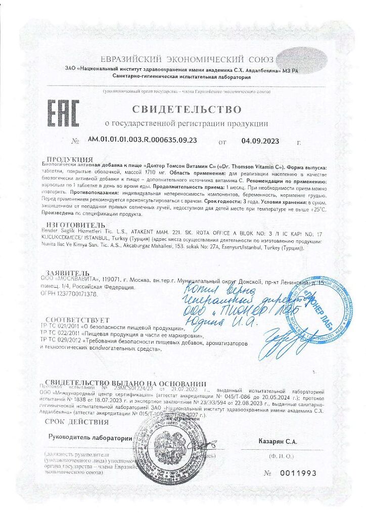 Документы Dr. Thomson Vitamin C / Доктор Томсон Витамин С 1000 мг таблетки покрыт.об. массой 1710 мг 30 шт