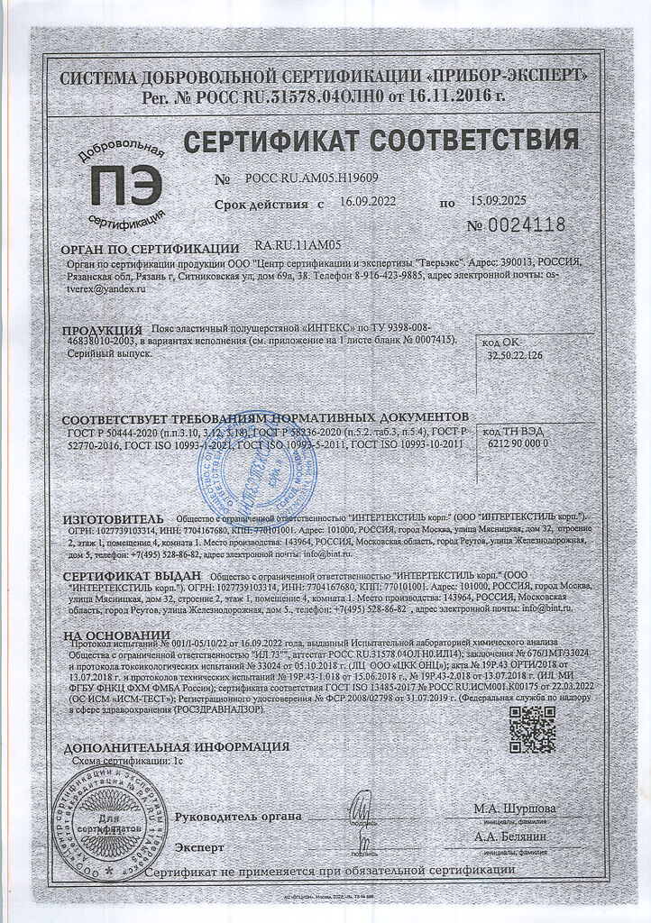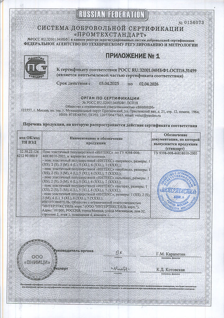 Производитель: ИНТЕРТЕКСТИЛЬ корп., Россия