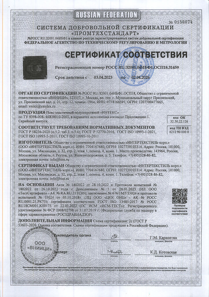 Документы Пояс эластичный полушерстяной Интекс р.2 S 1 шт