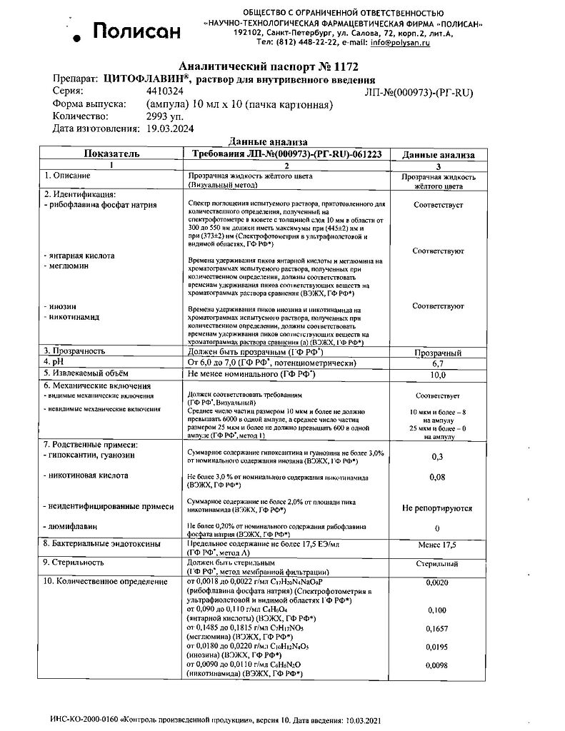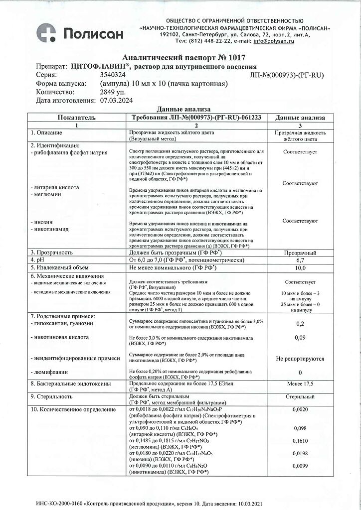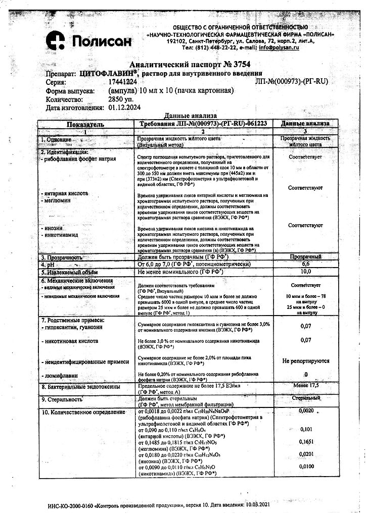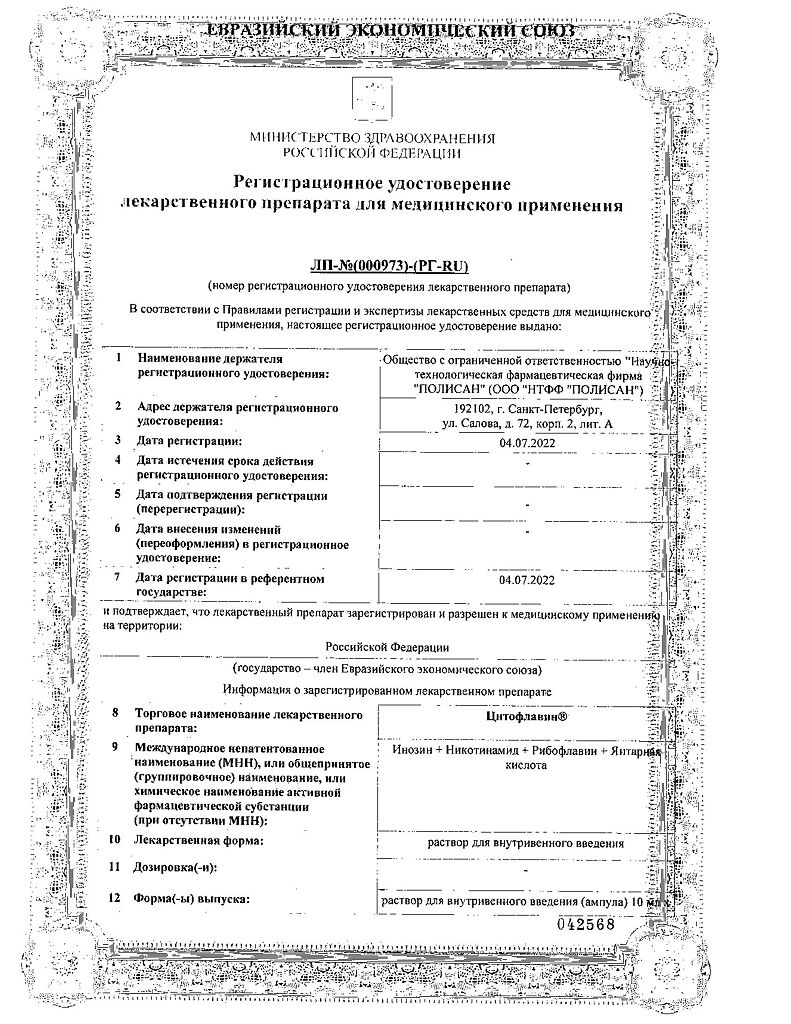 Документы Цитофлавин раствор для в/в введ 10 мл амп 10 шт