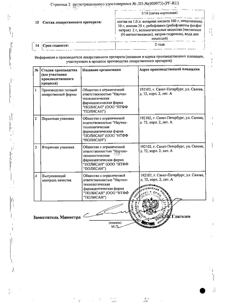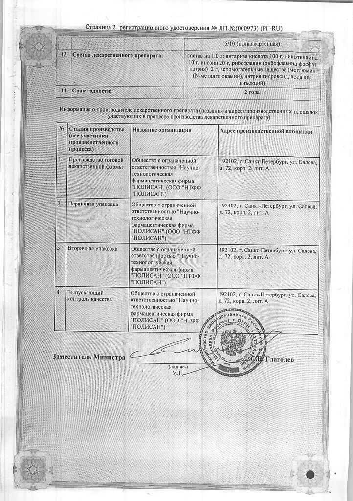 Действующее вещество: Инозин, Никотинамид, Рибофлавин, Янтарная кислота