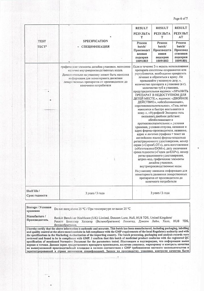 Документы Нурофен Экспресс гель для наружного применения 5 % 100 г 1 шт