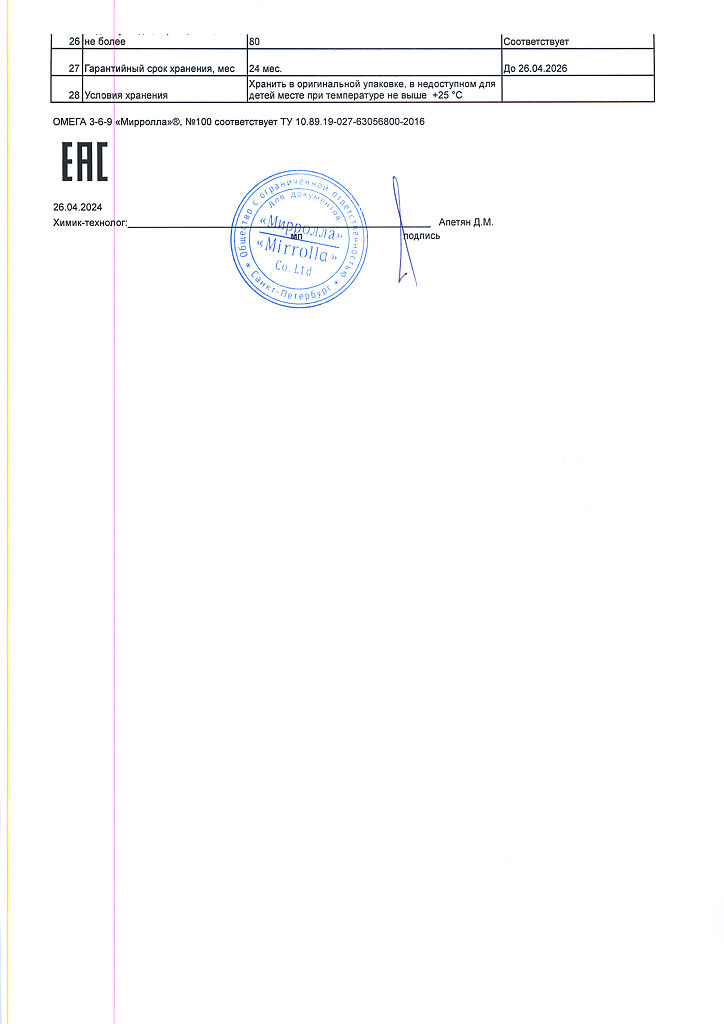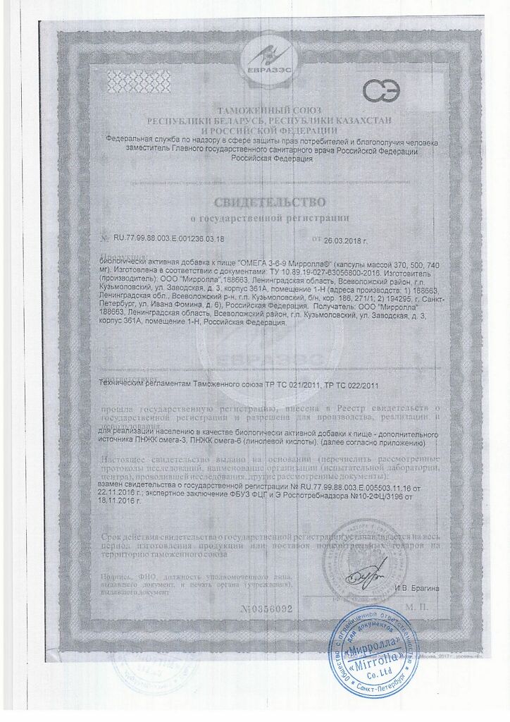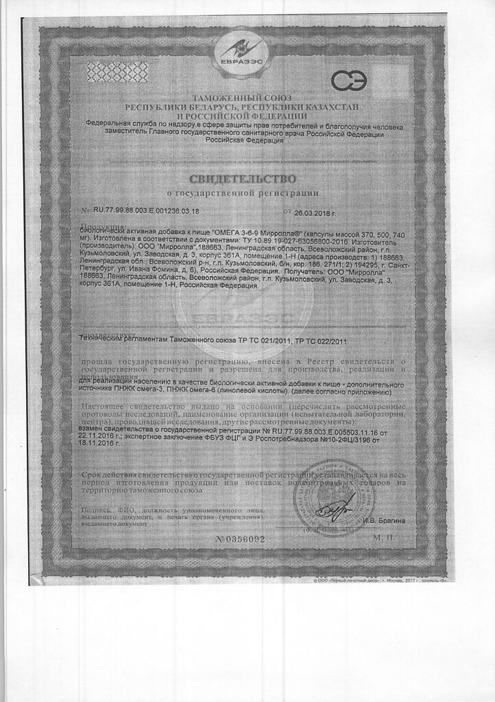 Документы Mirrolla Омега 3-6-9 капсулы массой 370 мг 100 шт