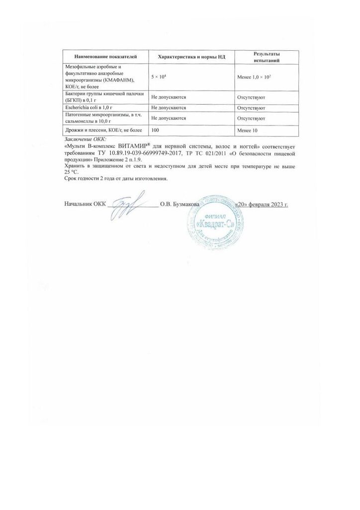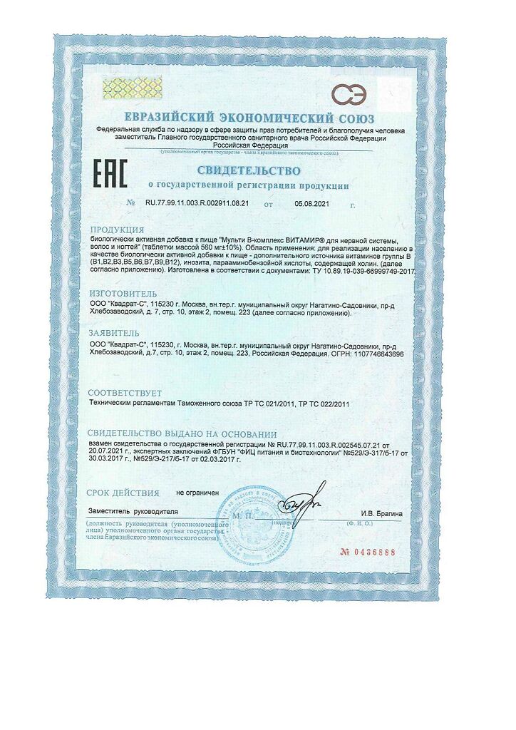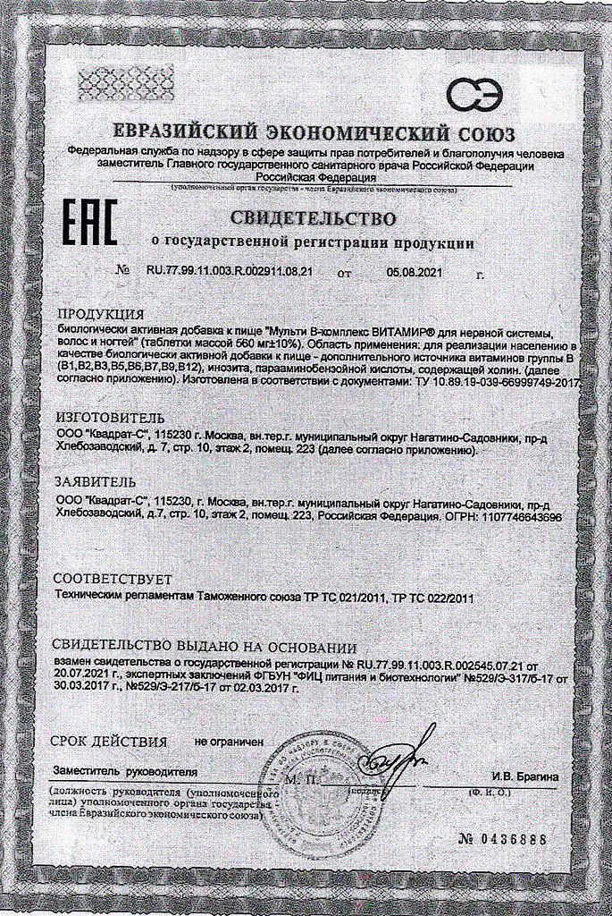Витамир Мульти В-комплекс для нервной системы, волос и ногтей таблетки массой 560 мг 30 шт