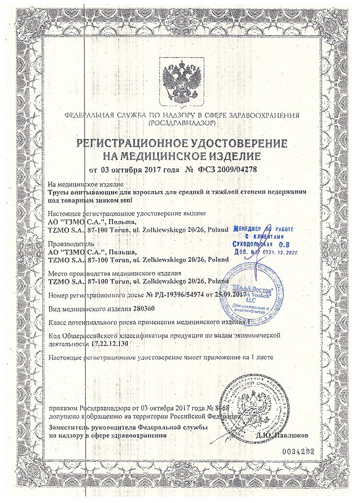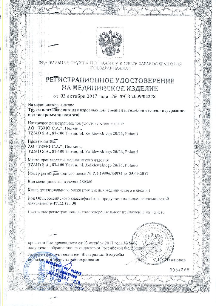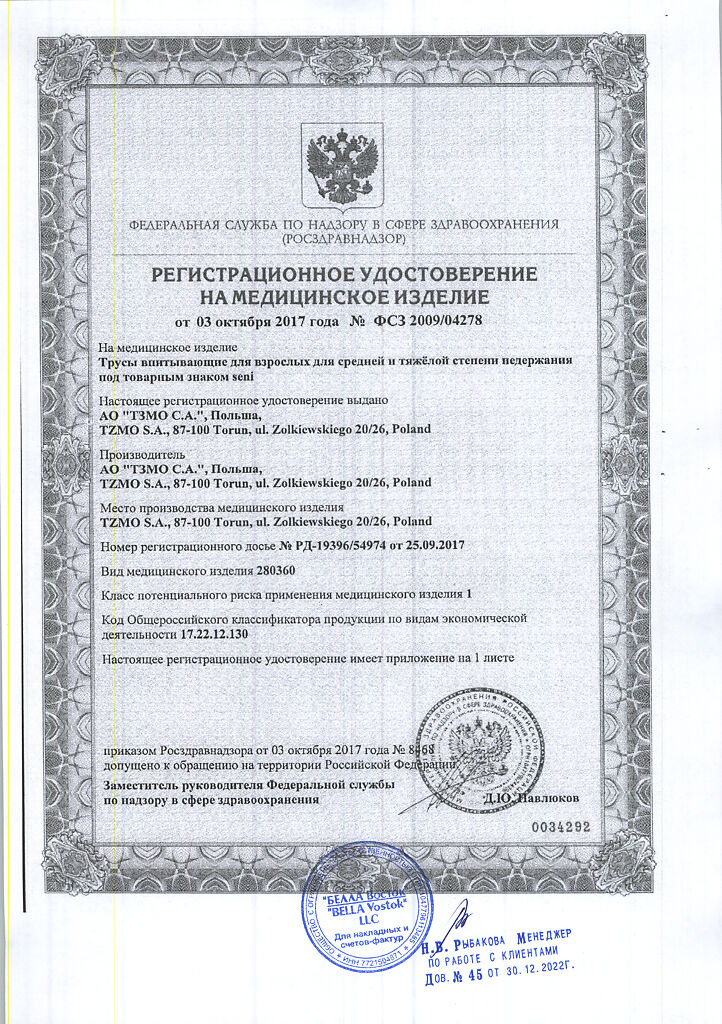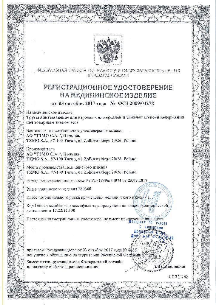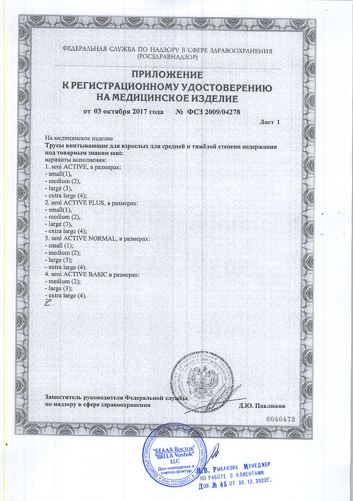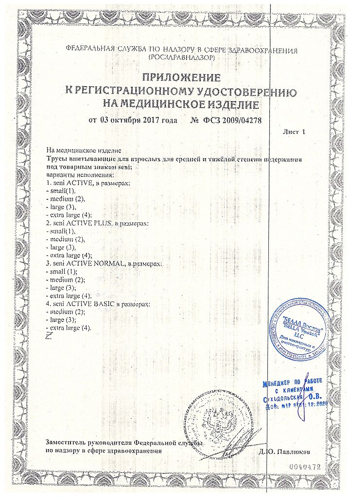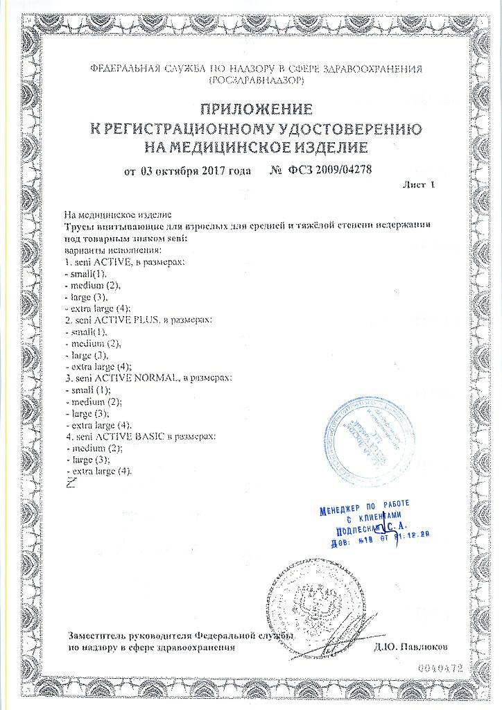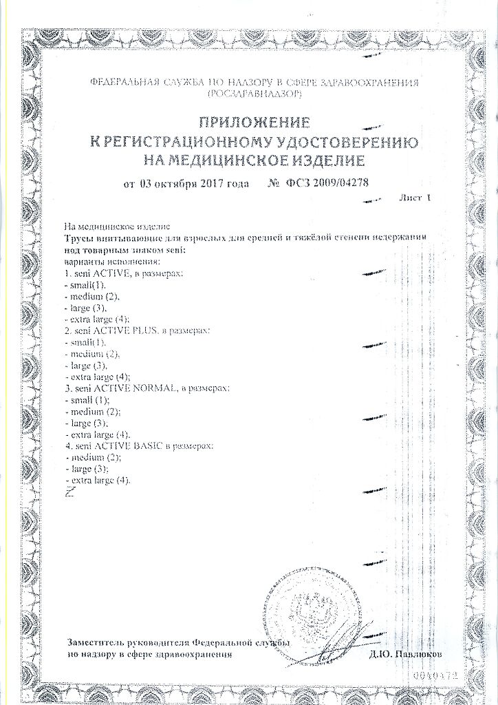 Документы Seni Active Подгузники-трусы для взрослых Medium (2) обхват талии 80-110 см 10 шт