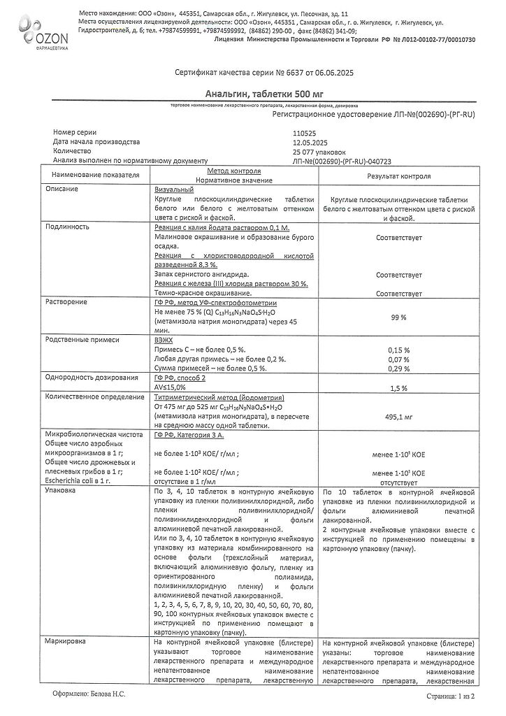• 📒 Подробная инструкция по применению Анальгин таблетки 500 мг 20 шт
