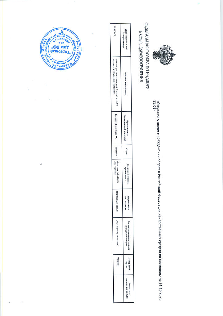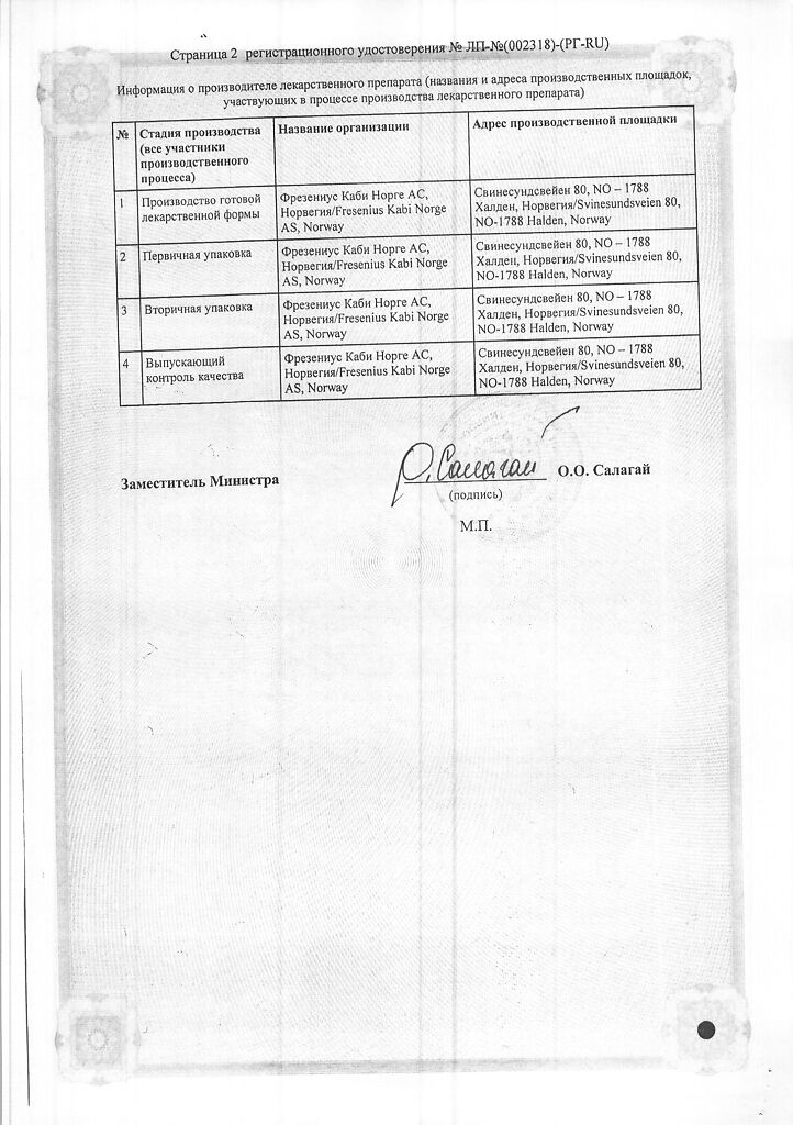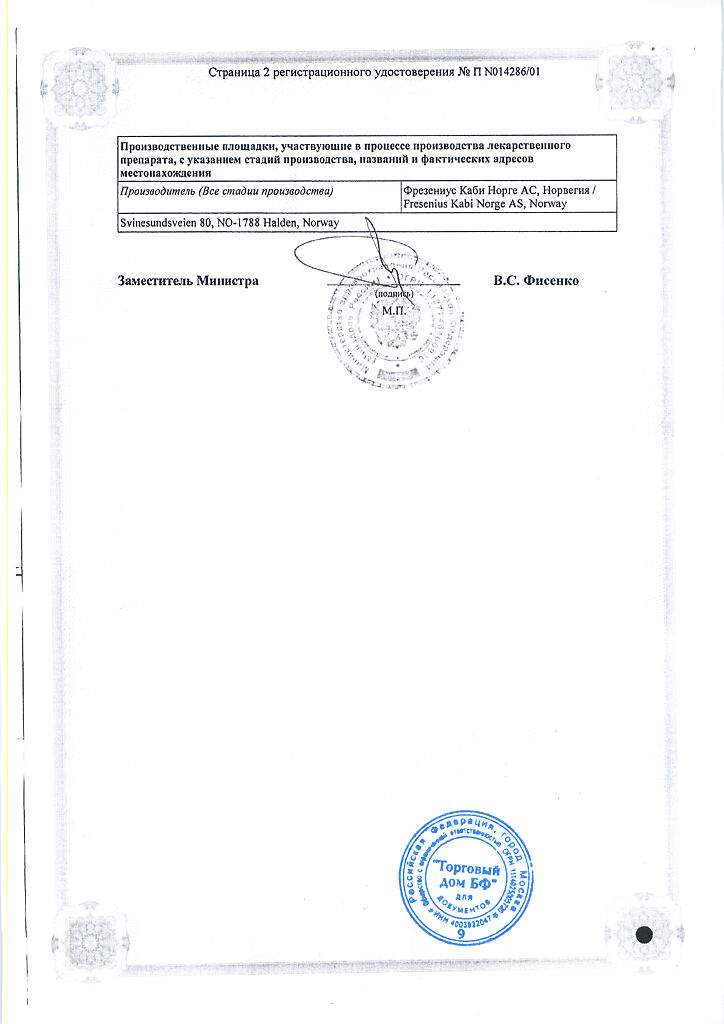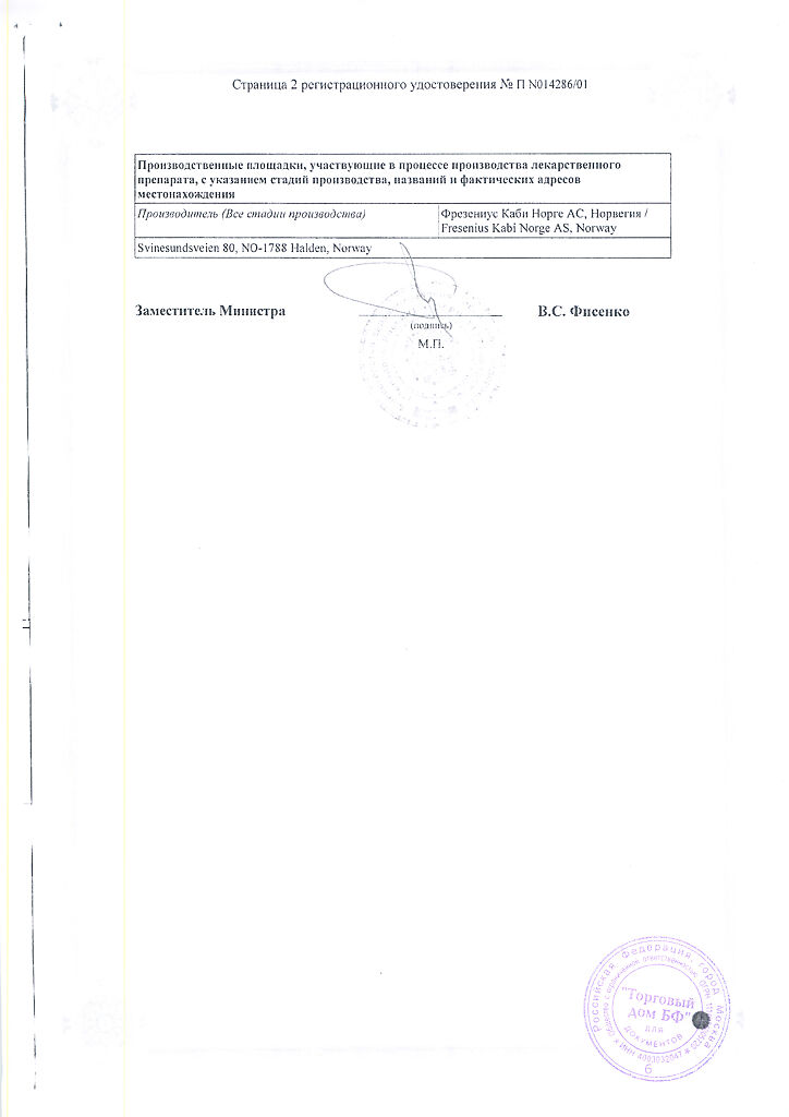 Производитель: Фрезениус Каби Норге АС, Норвегия