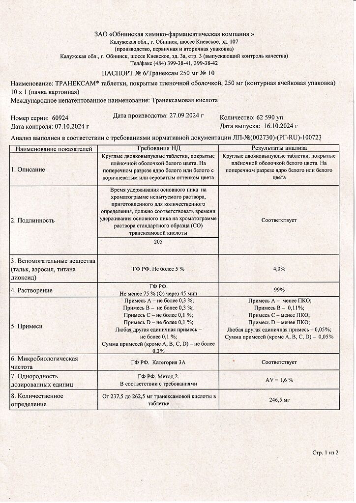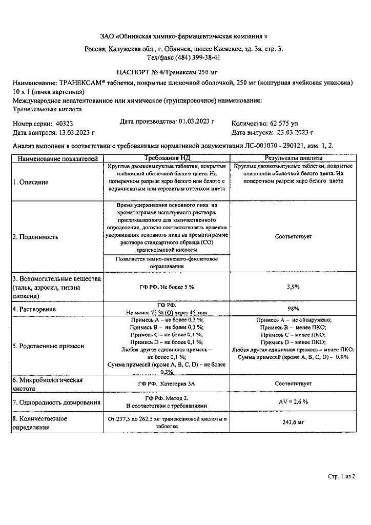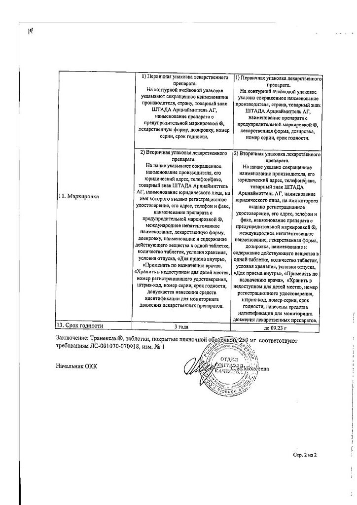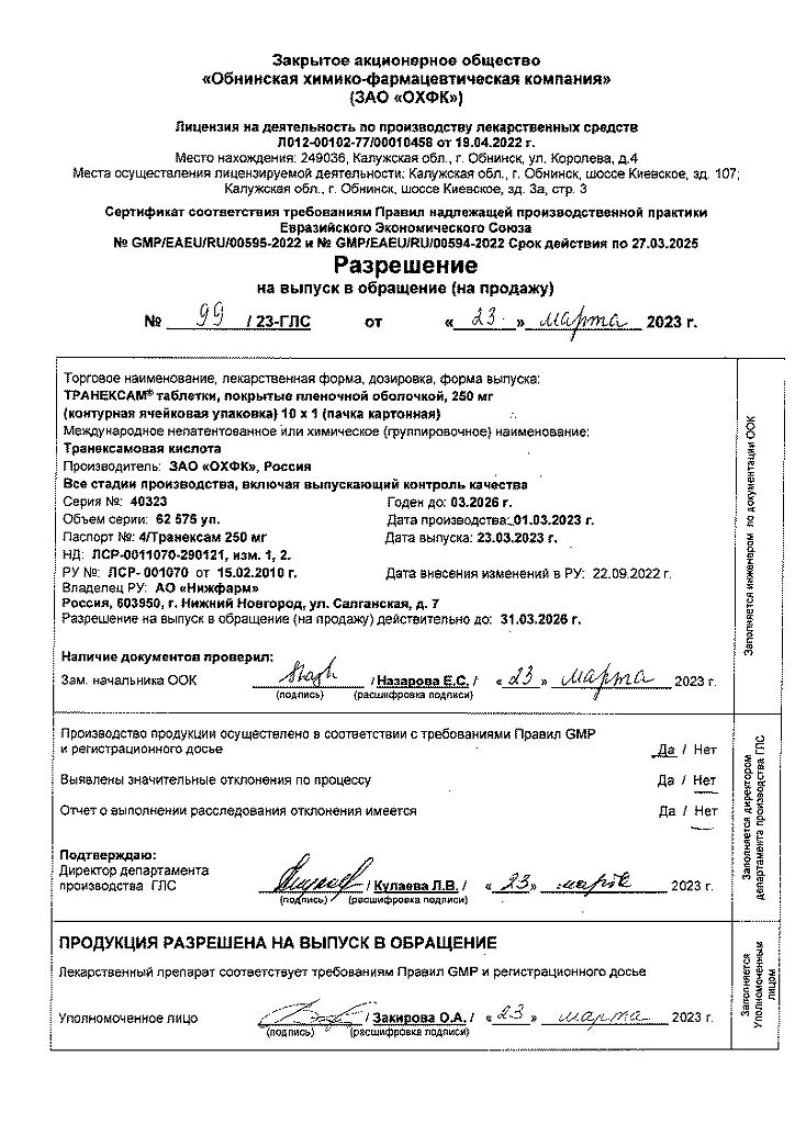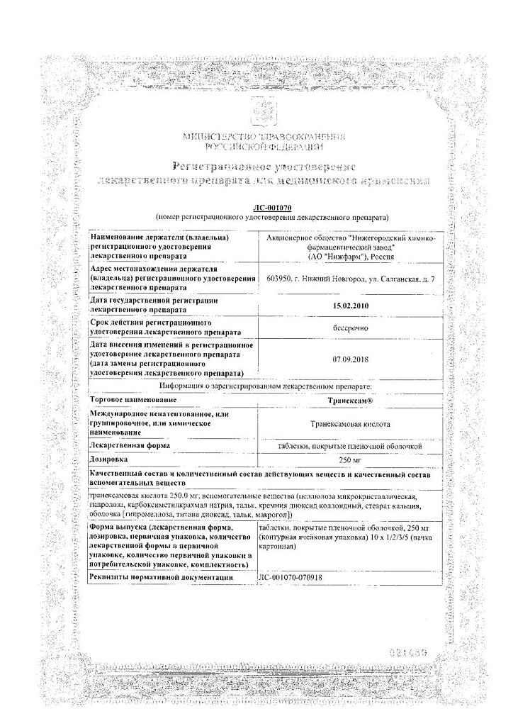 Транексам таблетки покрыт.плен.об. 250 мг 10 шт