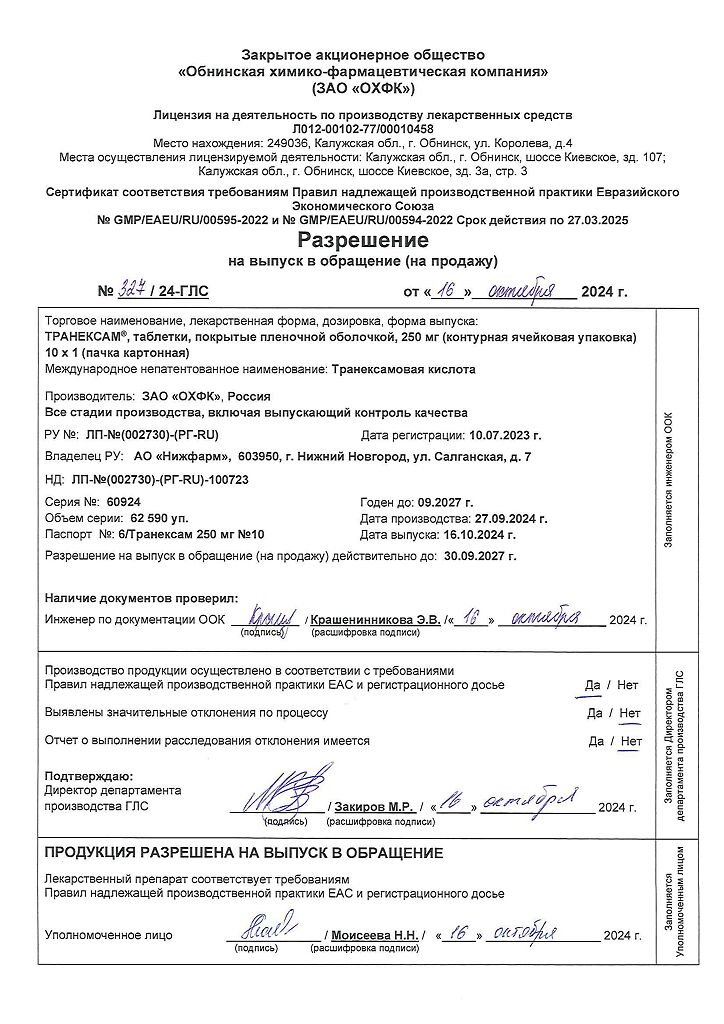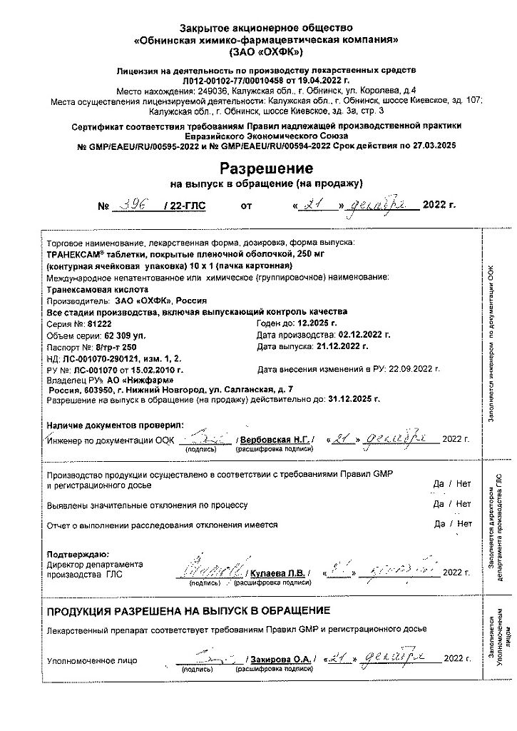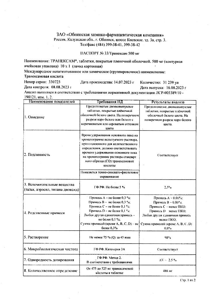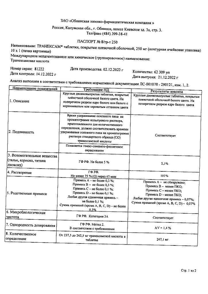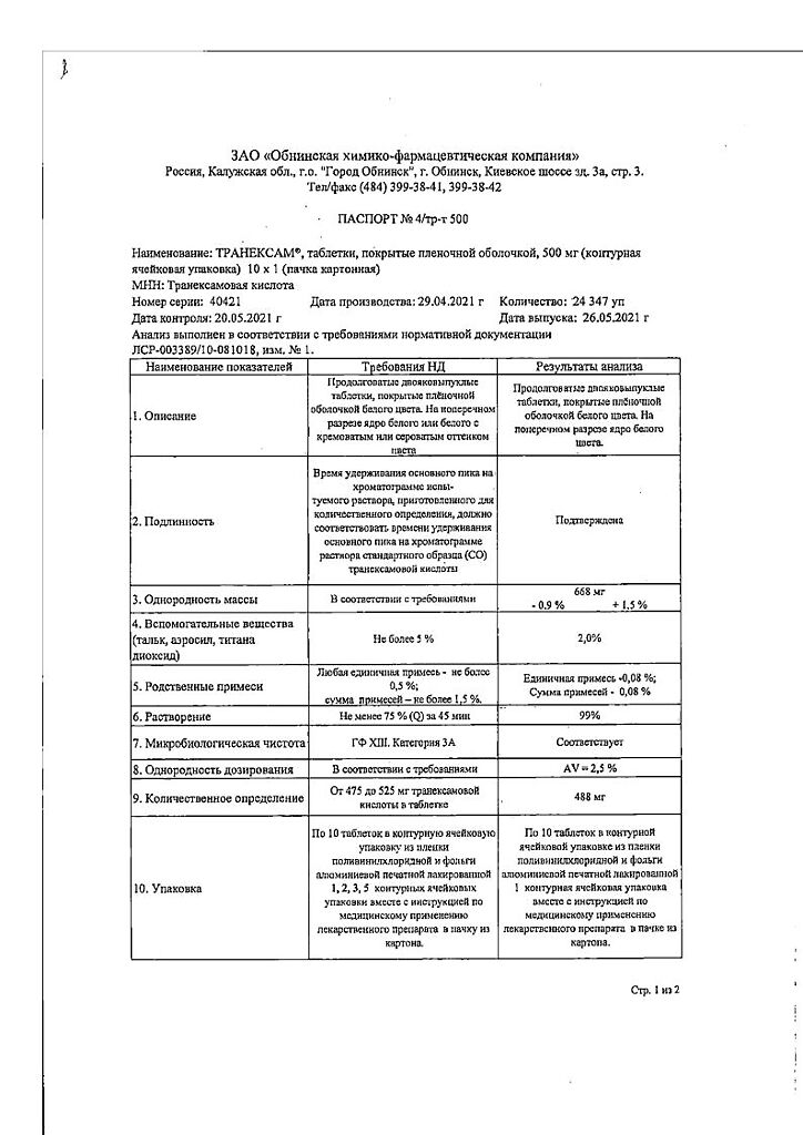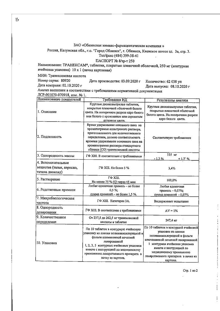 Транексам таблетки покрыт.плен.об. 250 мг 10 шт