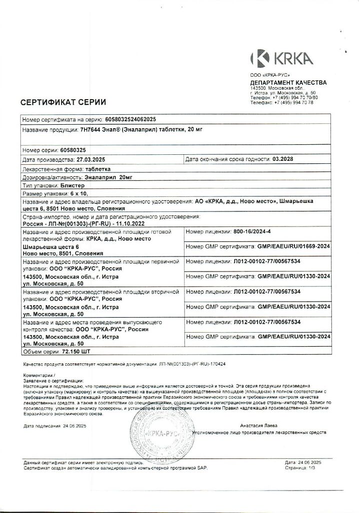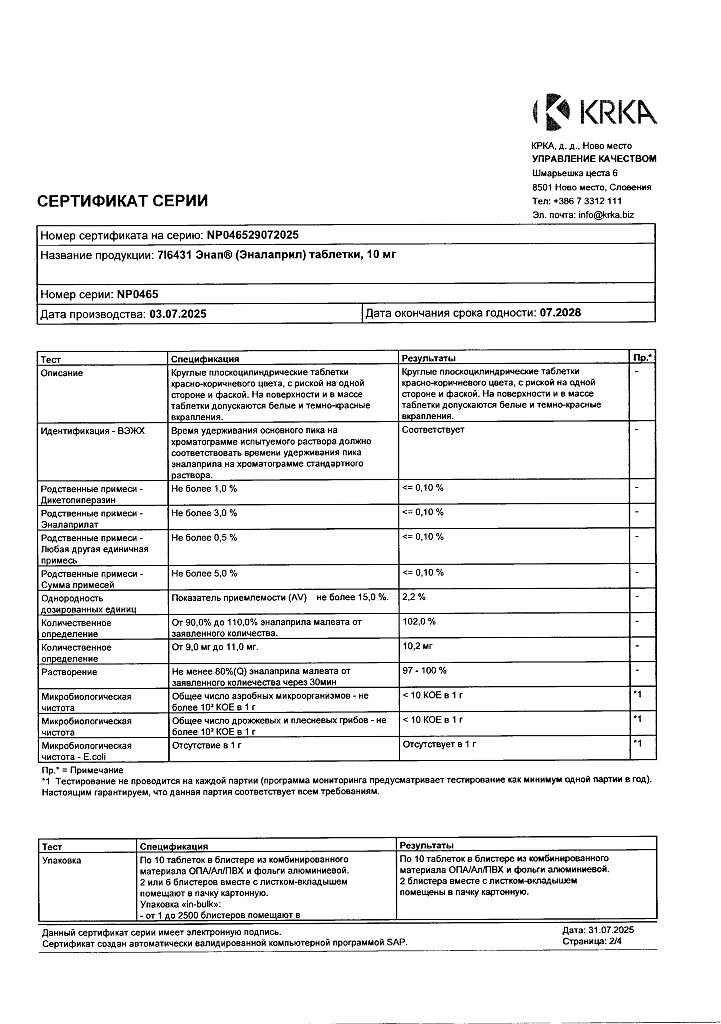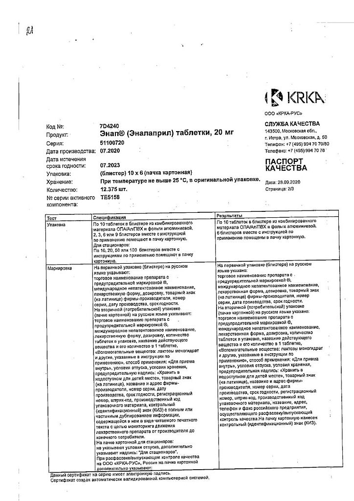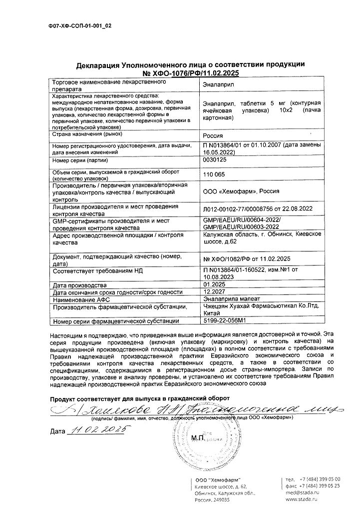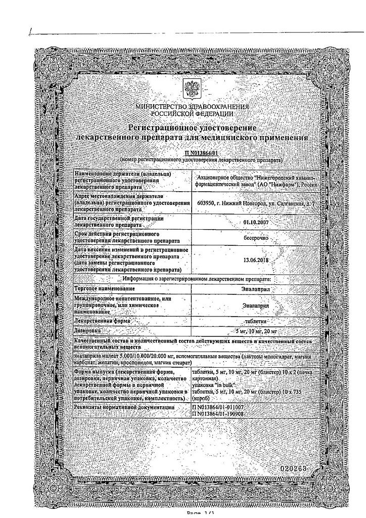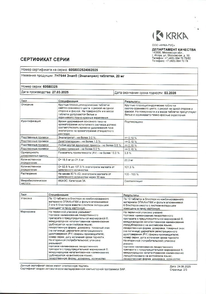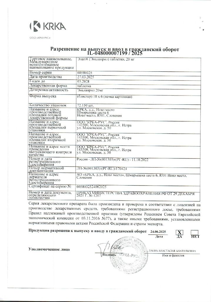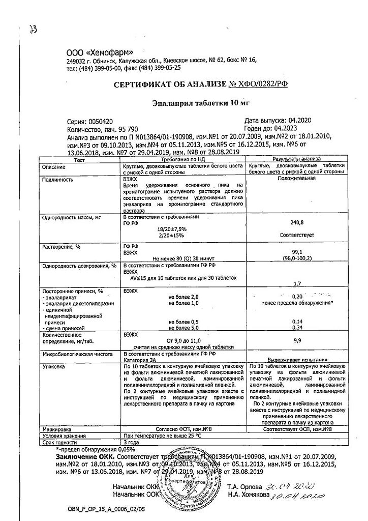 • Информацию об акциях и скидках на Эналаприл уточняйте на нашем сайте.