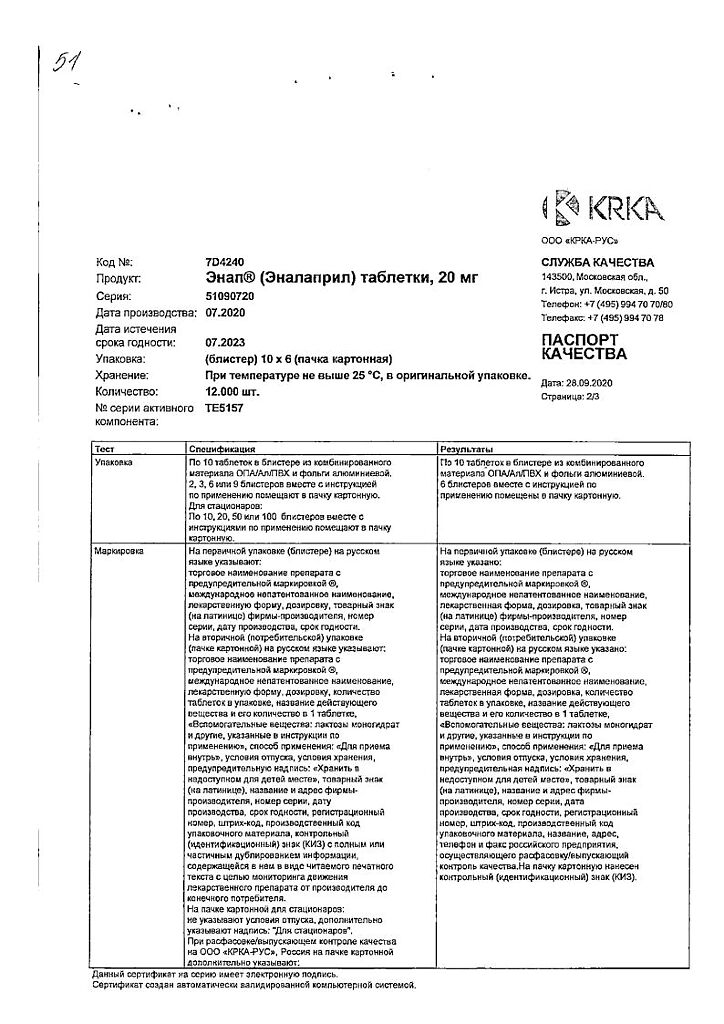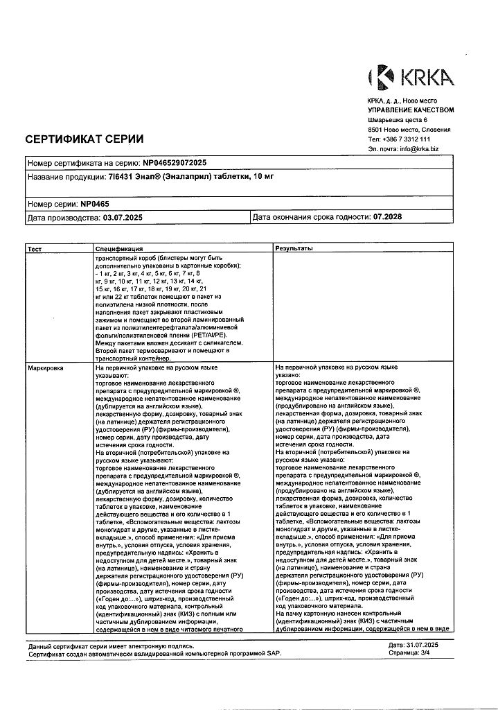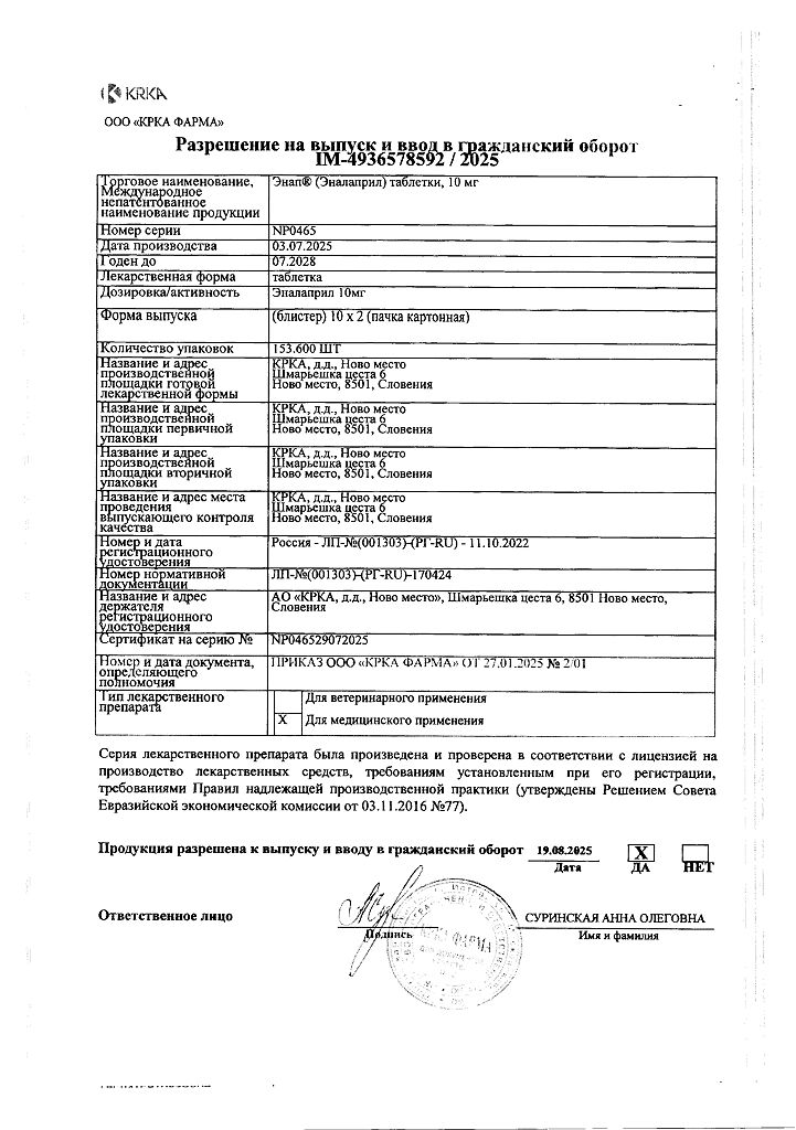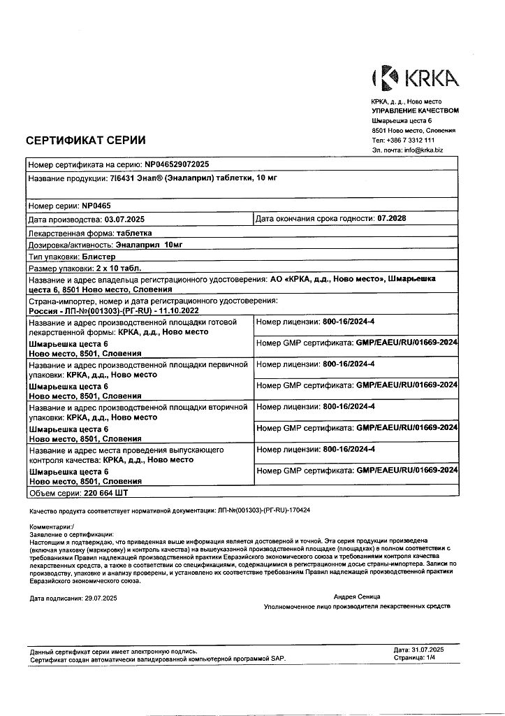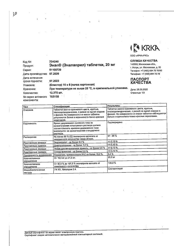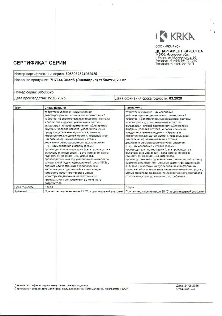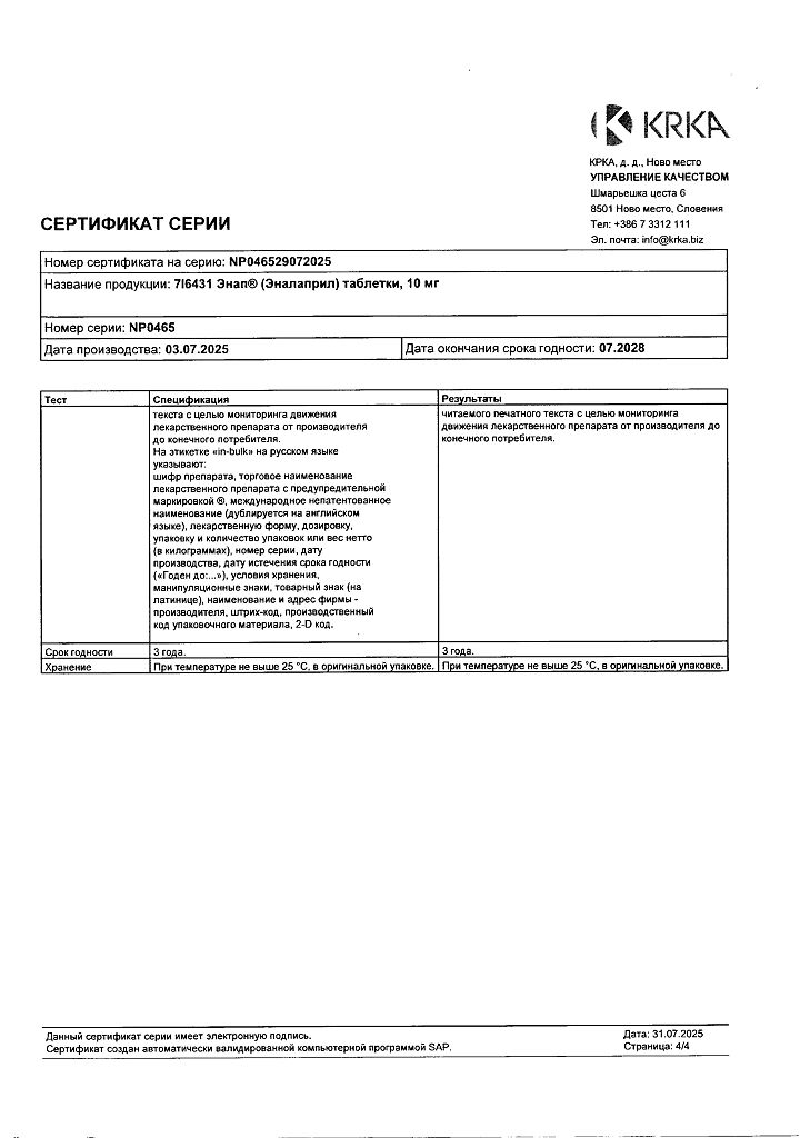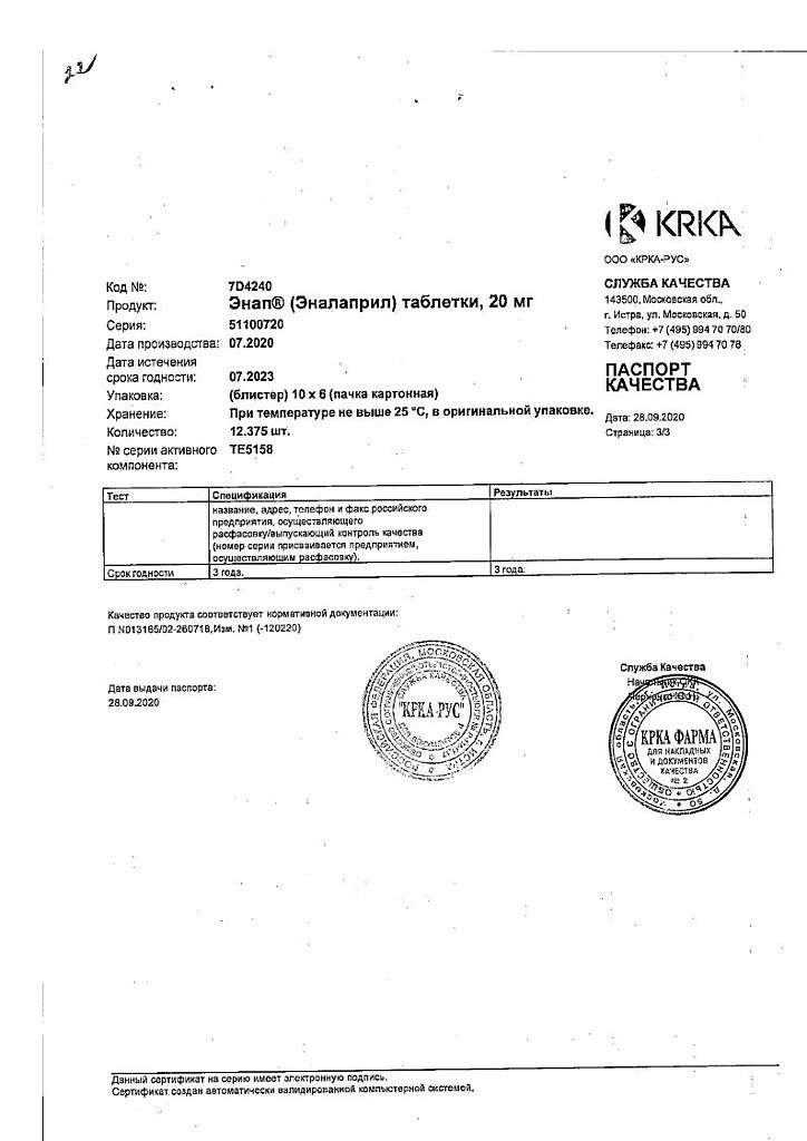 • Информацию об акциях и скидках на Эналаприл уточняйте на нашем сайте.