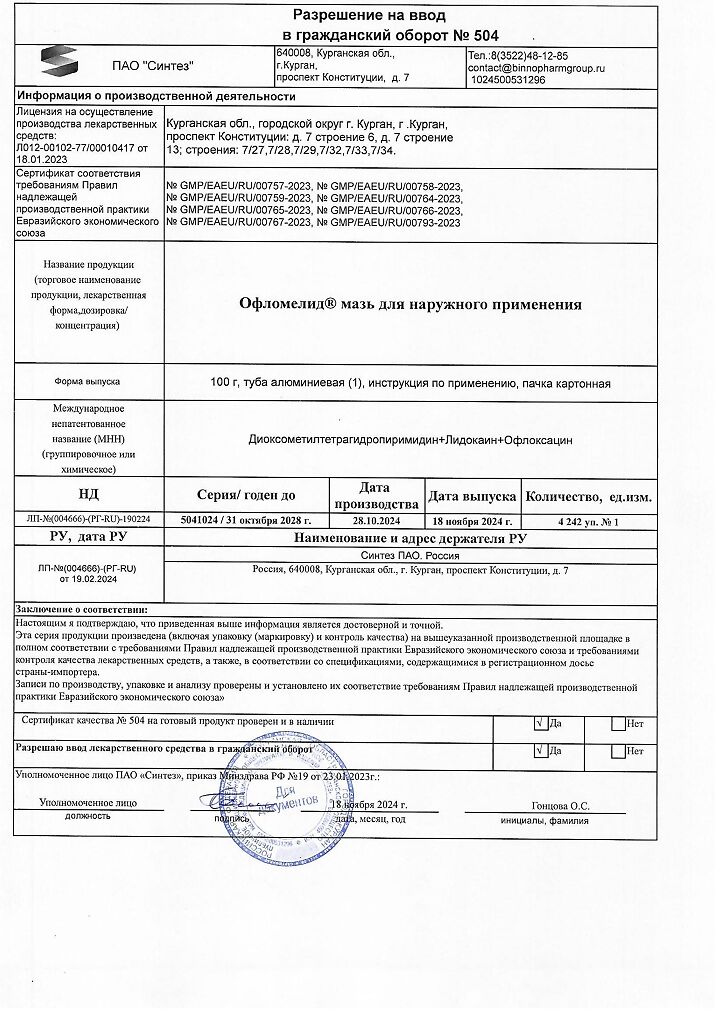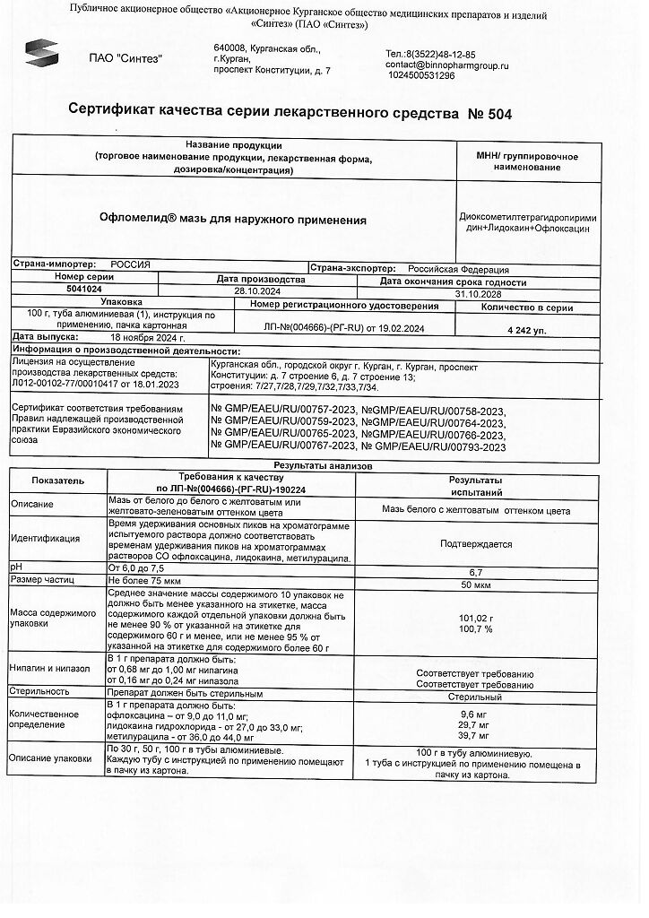 • Информацию об акциях и скидках на Офломелид уточняйте на нашем сайте.